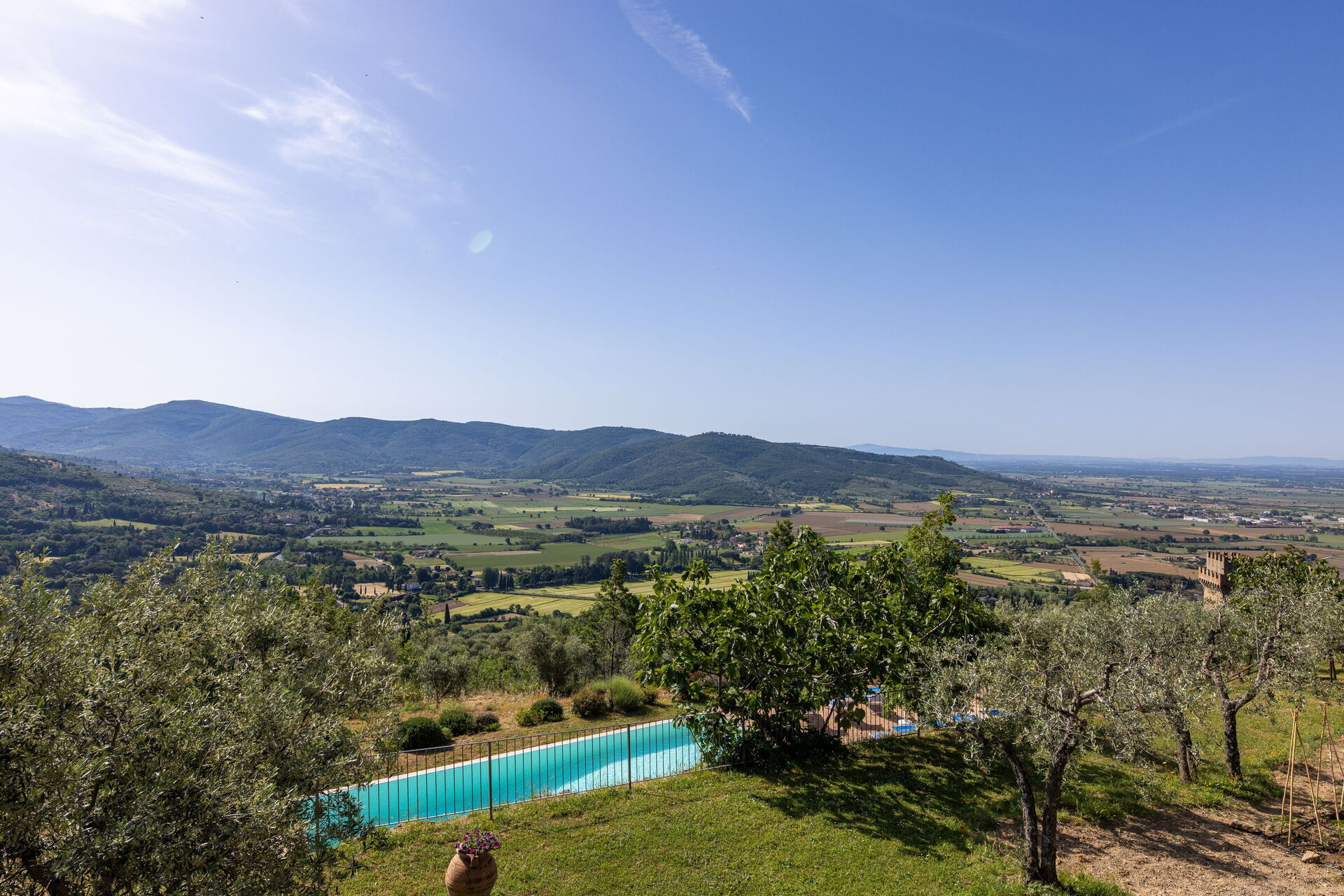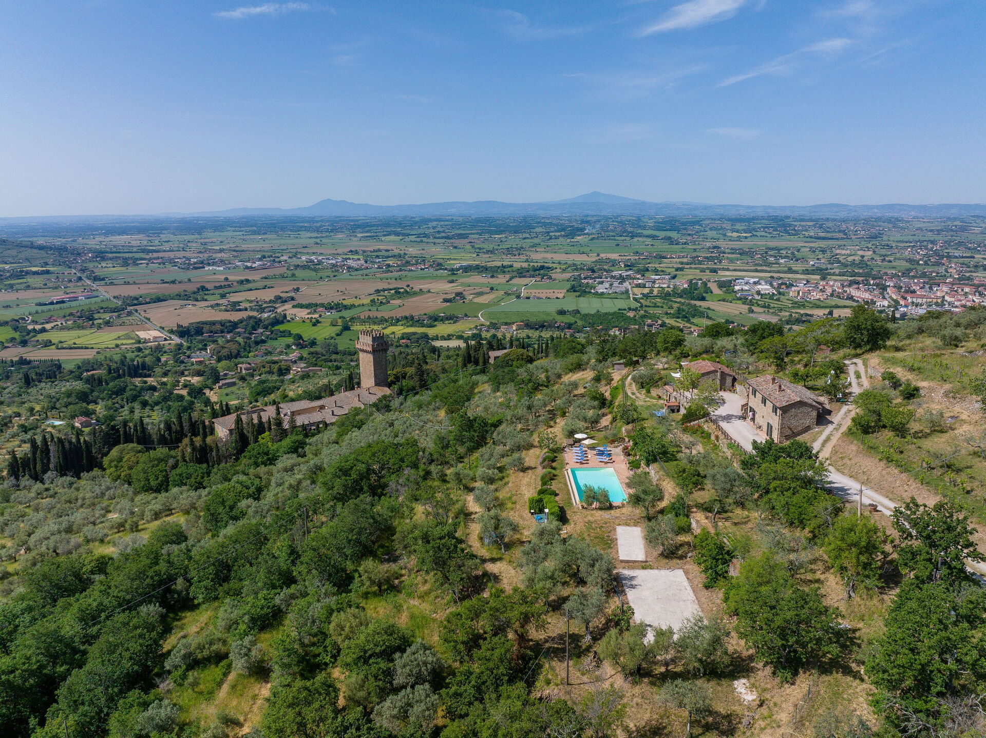 Distances: Cortona (shops of all kinds) just 1,5 km away, Lake Trasimeno 22 km, Arezzo 33 km, Perugia 50 km, Siena 78 km, Florence (airport) 131 km.