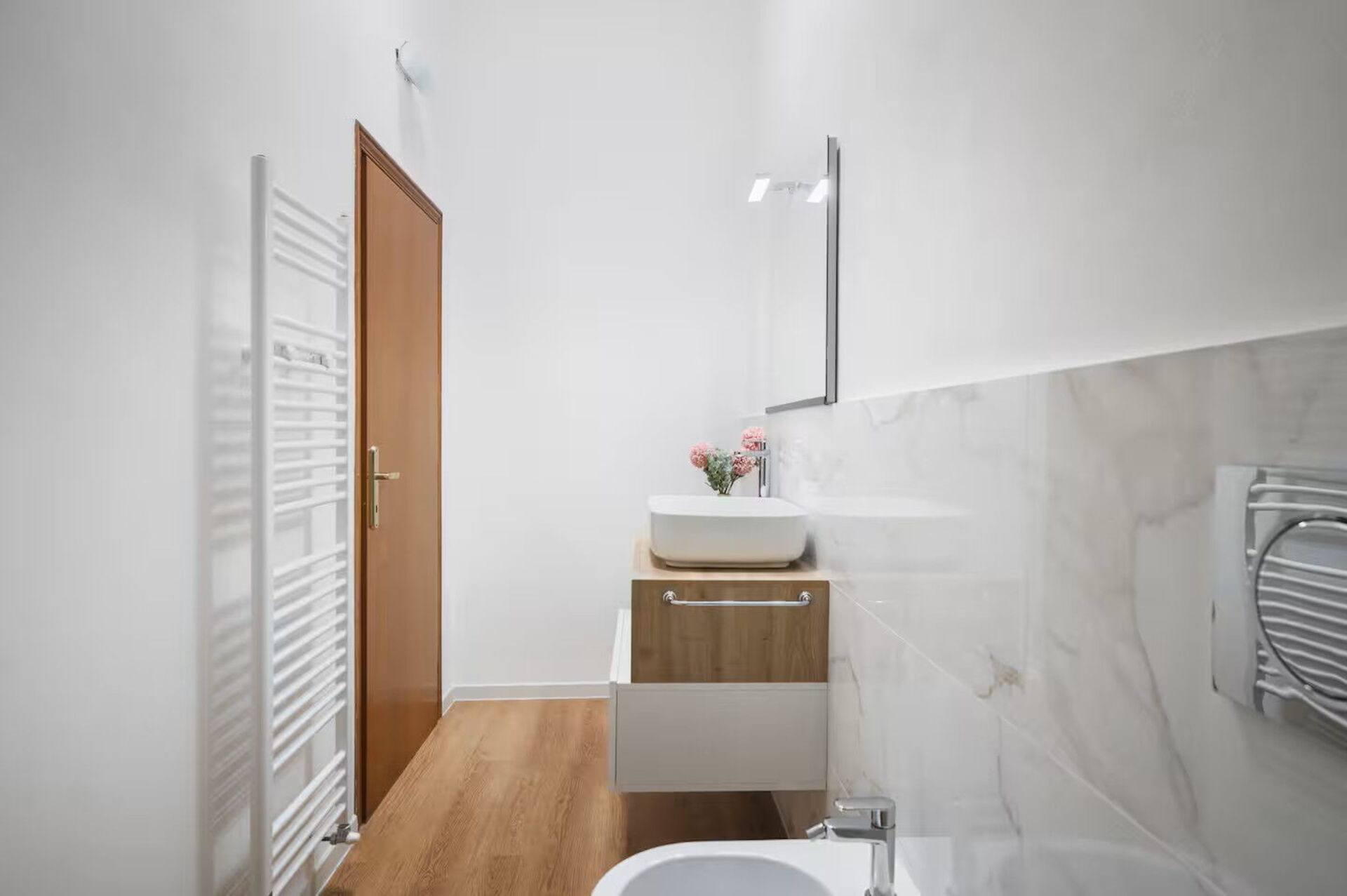 Ground floor: entrance, living room with kitchen corner, 2 double bedrooms (air conditioning), 2 bathrooms with shower.