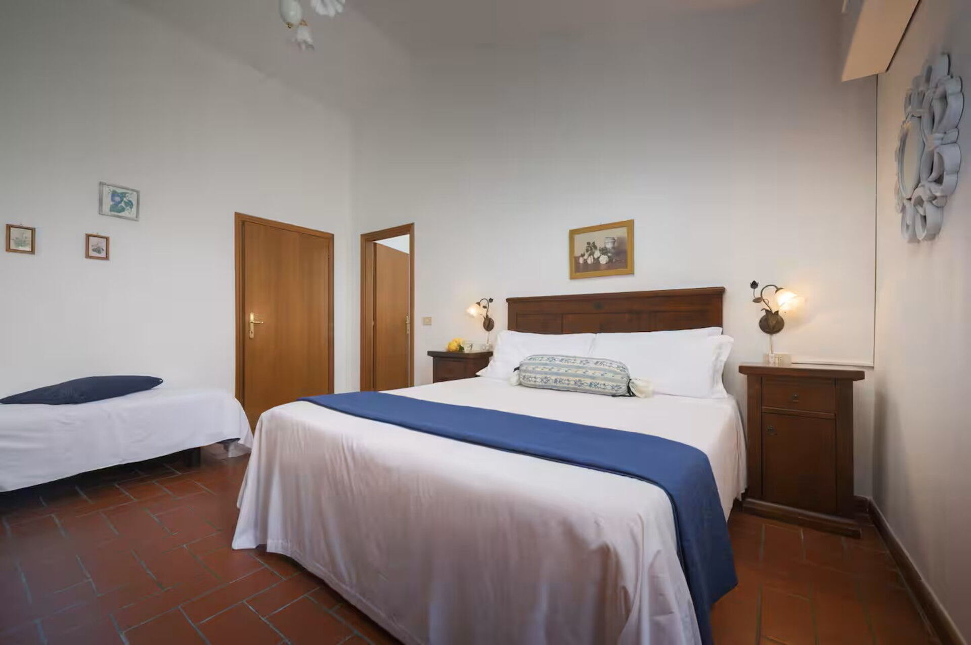 First floor: kitchen, large room with double bed and a single bed with air conditiong, bathroom with shower.
