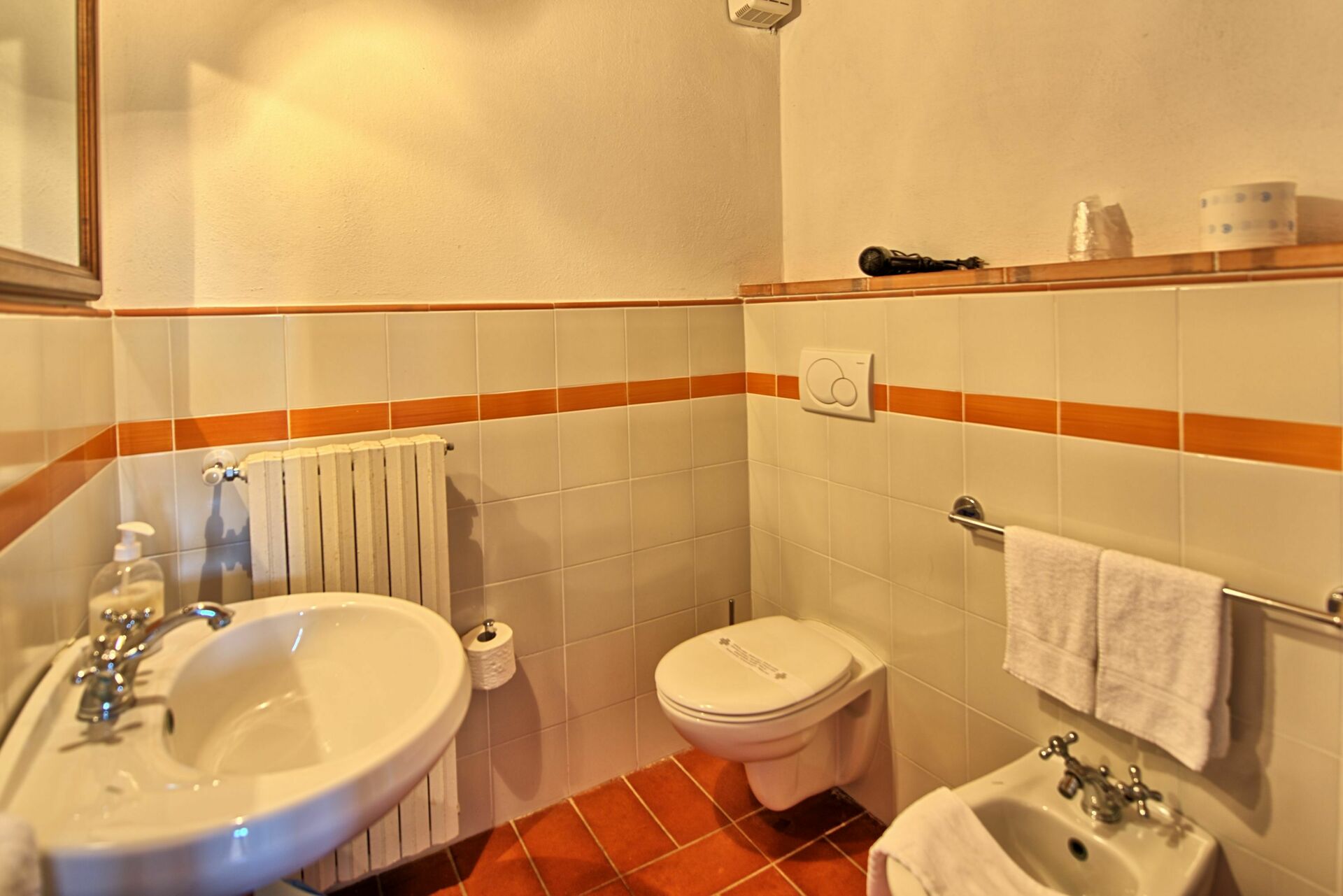 1st floor: living-room with dining area and kitchen corner (freezer, microwave), double bedroom ( air conditioning) with ensuite bathroom with shower and air-conditioning.