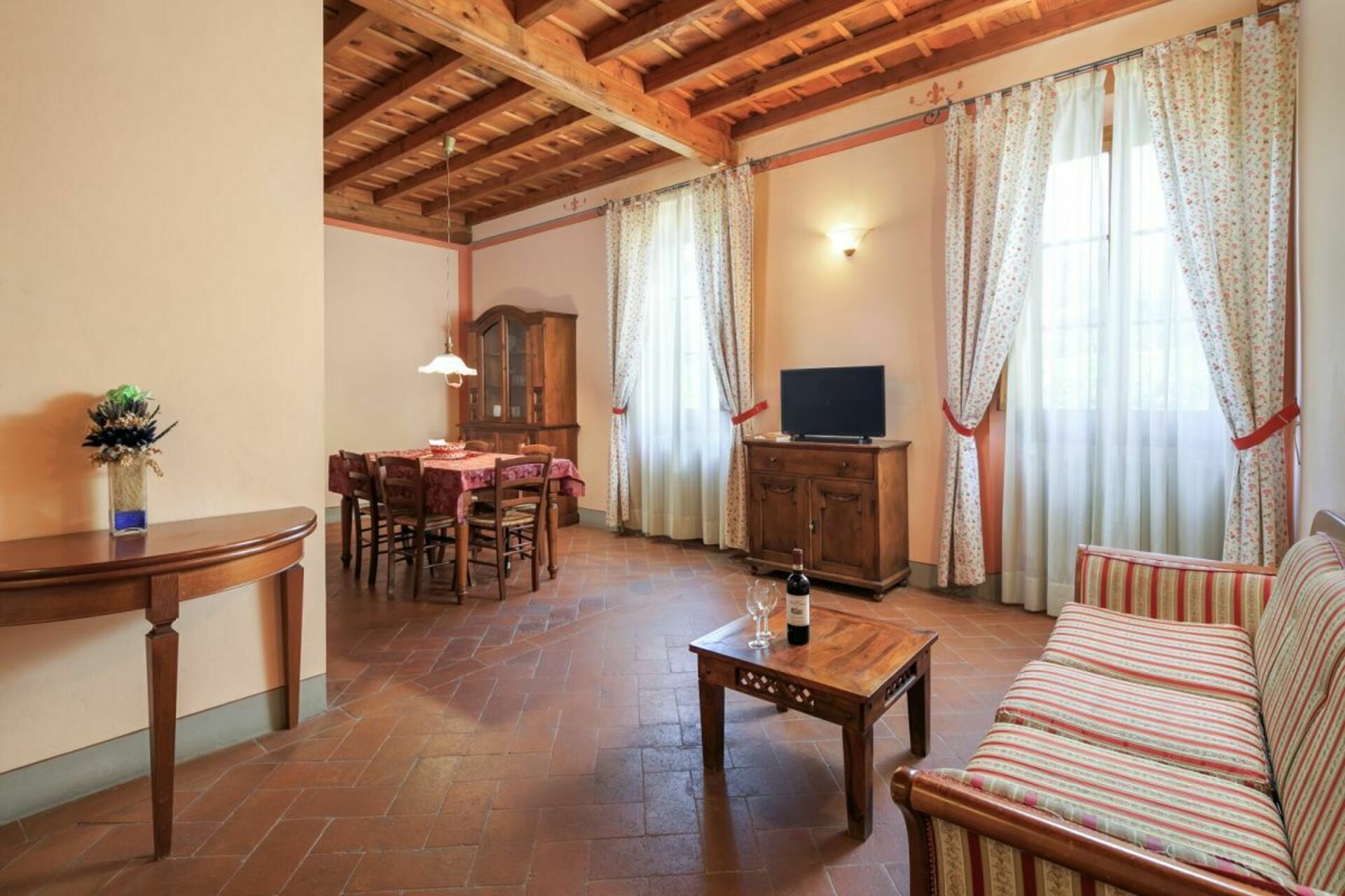 First floor : living room with dining area and kitchenette, 2 double bedrooms, bathroom with tub and shower.