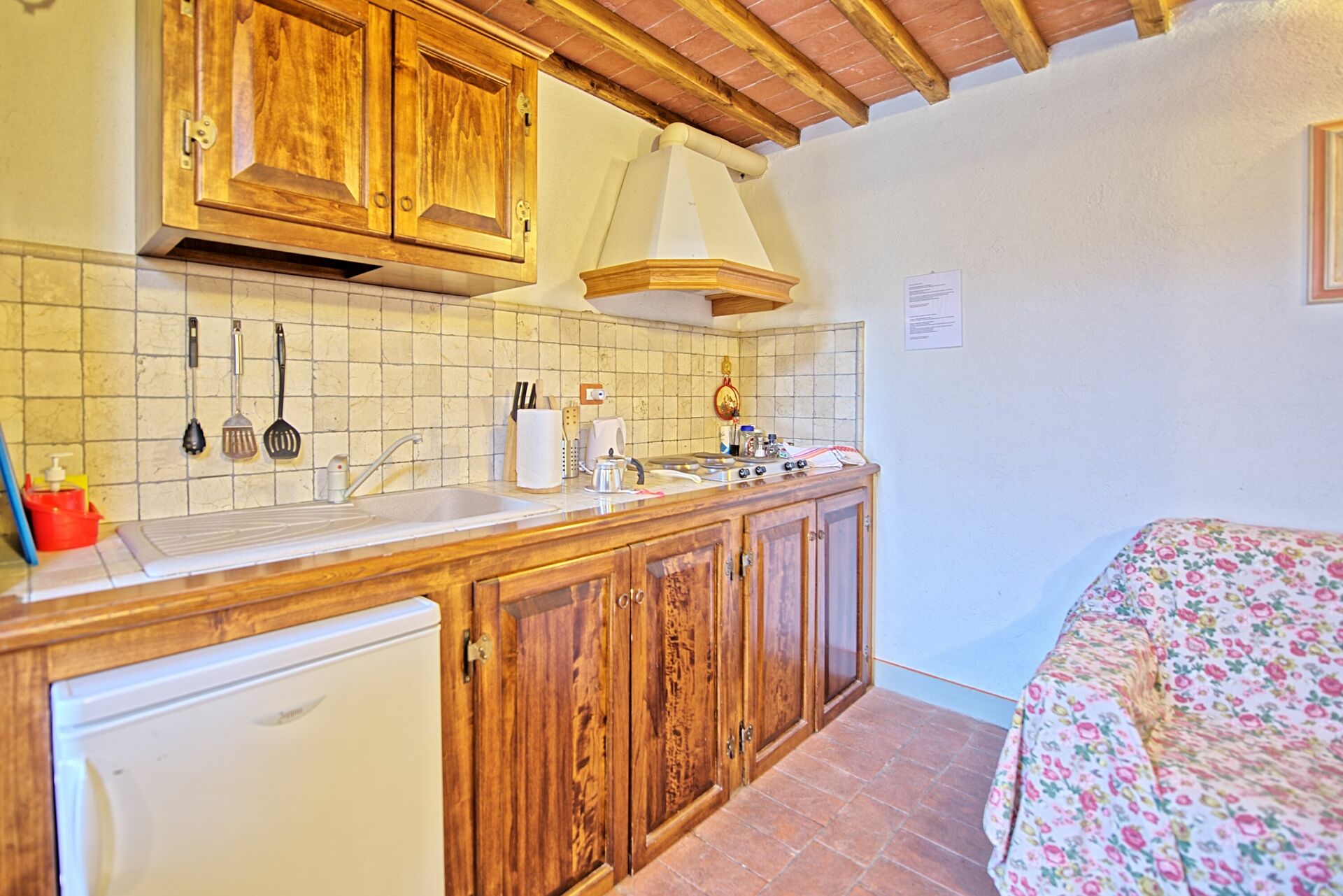 Ground floor : living room with dining area and kitchenette, bathroom with shower.