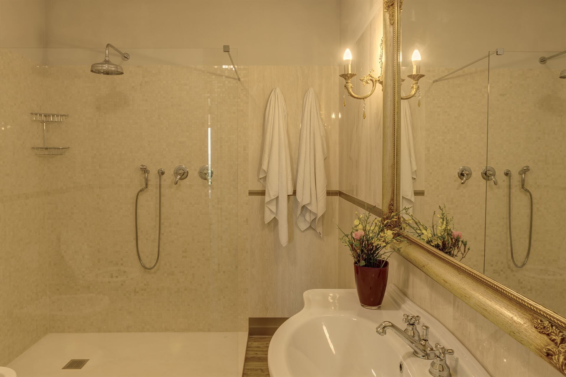 Lower floor : 2 double bedrooms each with a private bathroom with shower and terrace access.