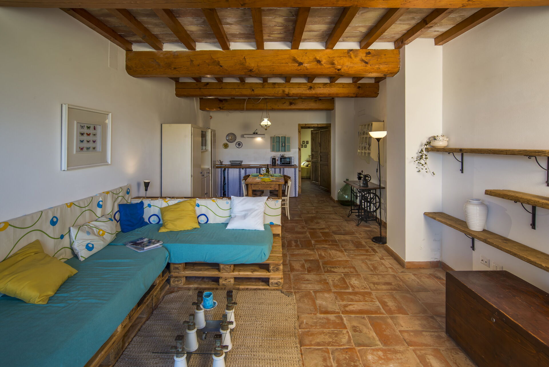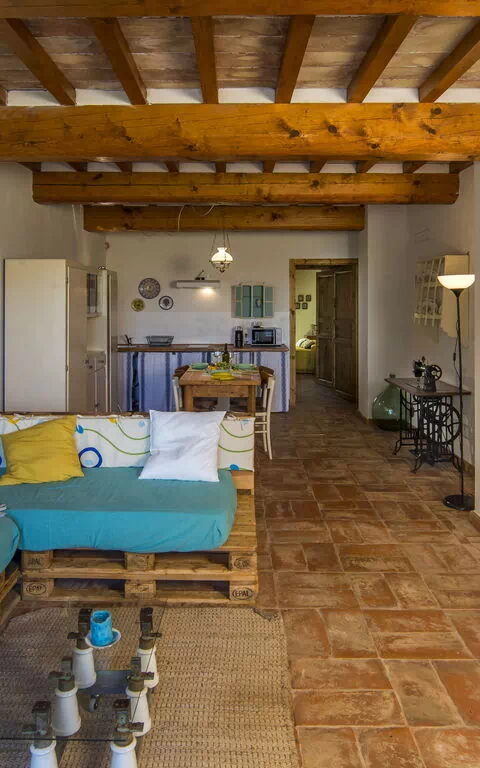 Ground floor: living area with a living room (with 2 extra single sofa beds available upon request) and dining area with kitchen (dishwasher, oven, refrigerator, induction cooktop, microwave, coffee maker, fan), double bedroom, bathroom with shower.