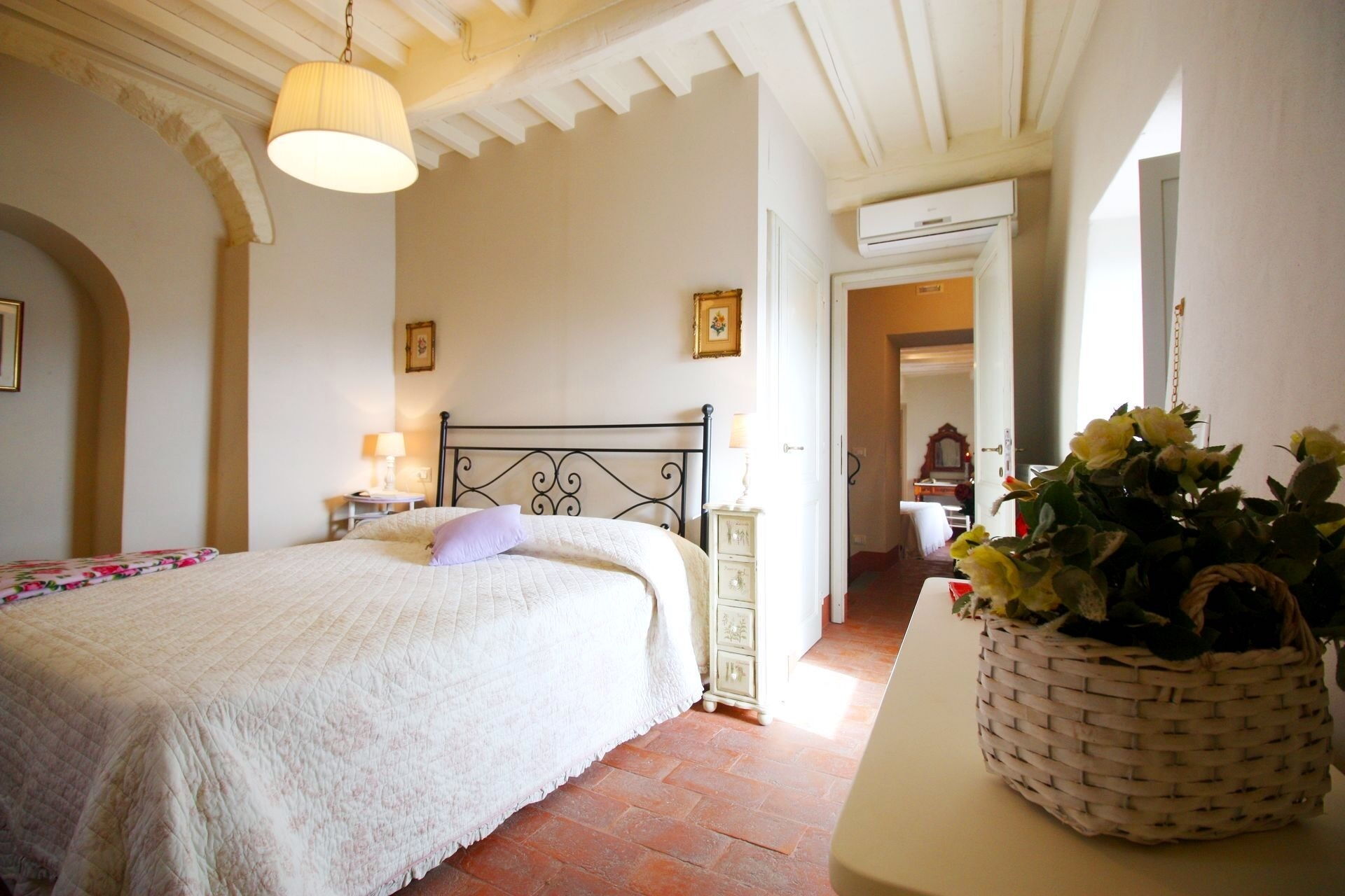 The magnificent town of Cortona, whose origins trace back to the Etruscan era, is just 5 km away. Villa Le Corchie enjoys a prime location, offering easy access to some of Tuscany’s most renowned destinations, including Arezzo, Pienza, Castiglion Fiorentino, Rapolano Terme, Montepulciano, and Montalcino. The villa is also within close reach of Lake Trasimeno and the picturesque landscapes of nearby Umbria.