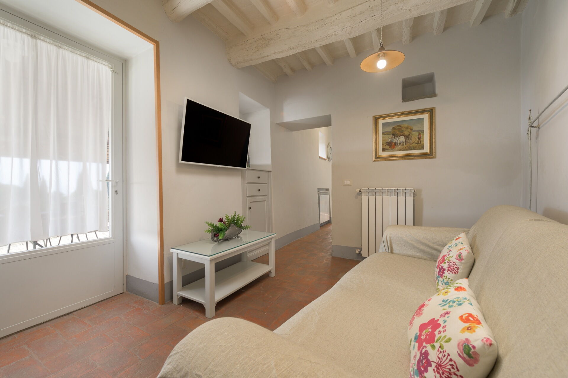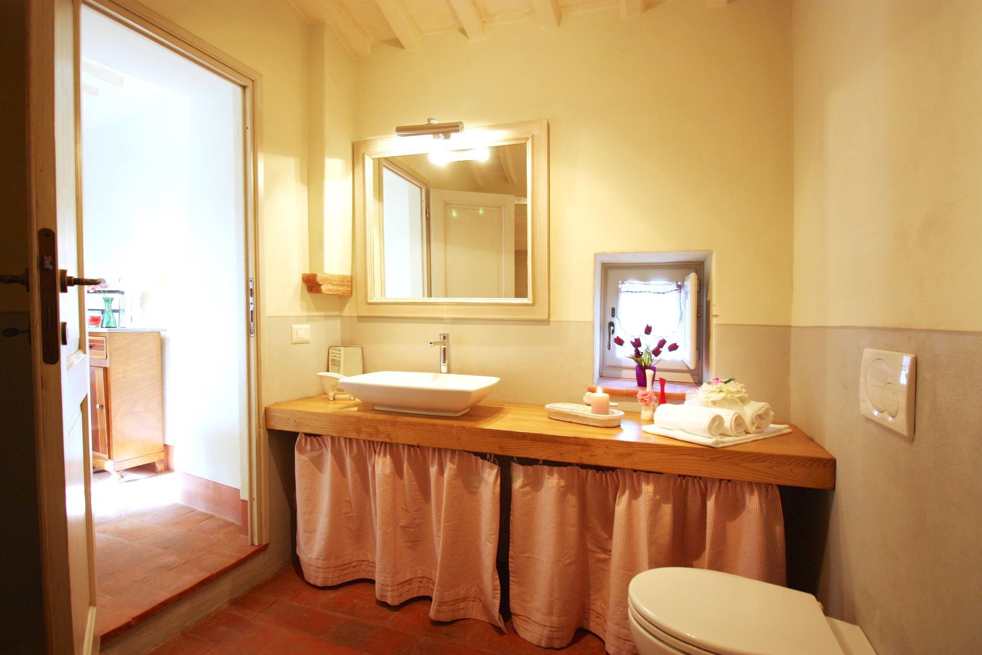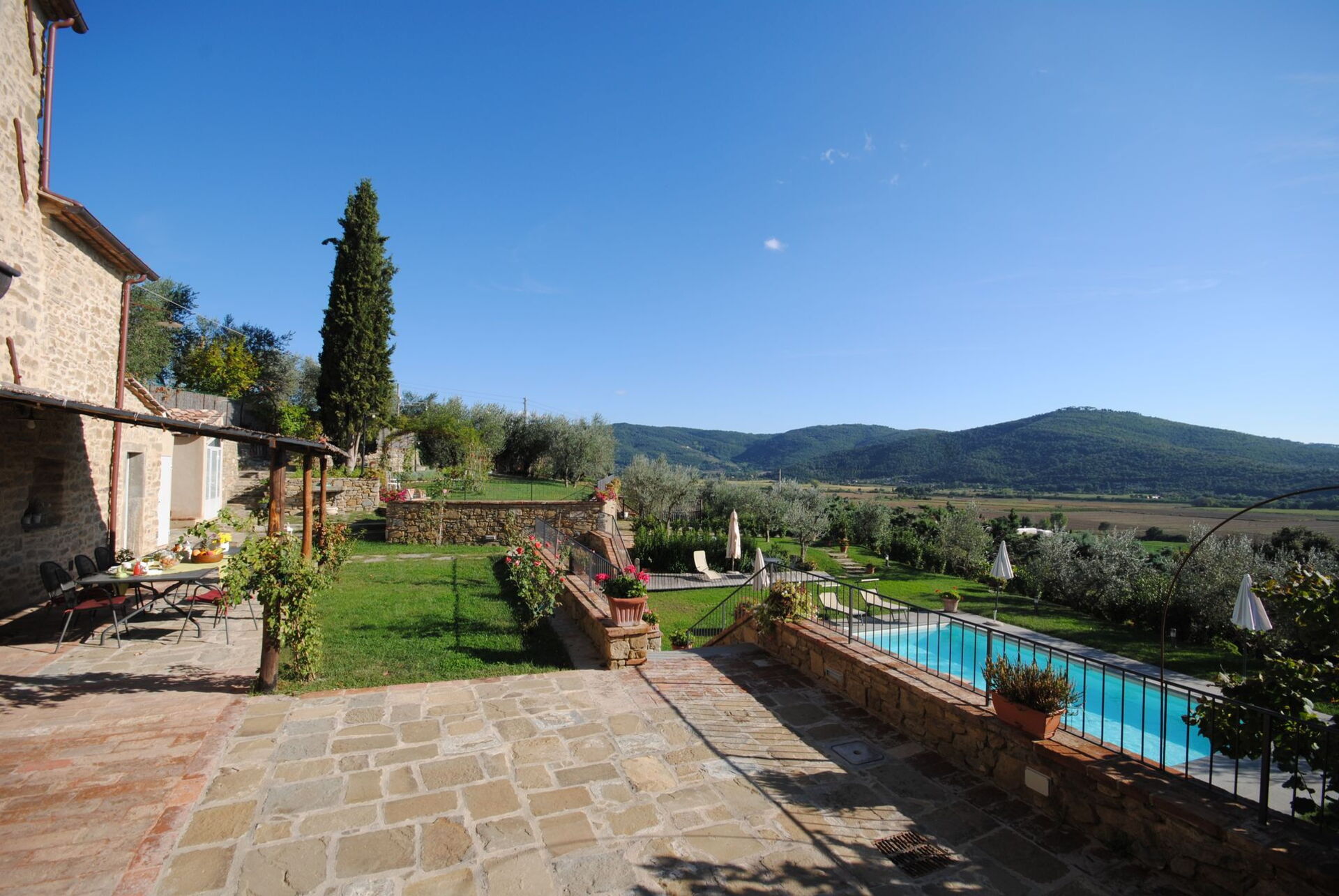 Distances: Camucia (shops of all kinds and train station) 5 km, Cortona 5 km, Lake Trasimeno 20 km, Arezzo 33 km, Montepulciano 33 km, Rapolano Terme (renowned thermal spas) 43 km, Pienza 47 km, Perugia 49 km, Gubbio 65 km, Siena 77 km, Florence 109 km, Florence (airport) 131 km.