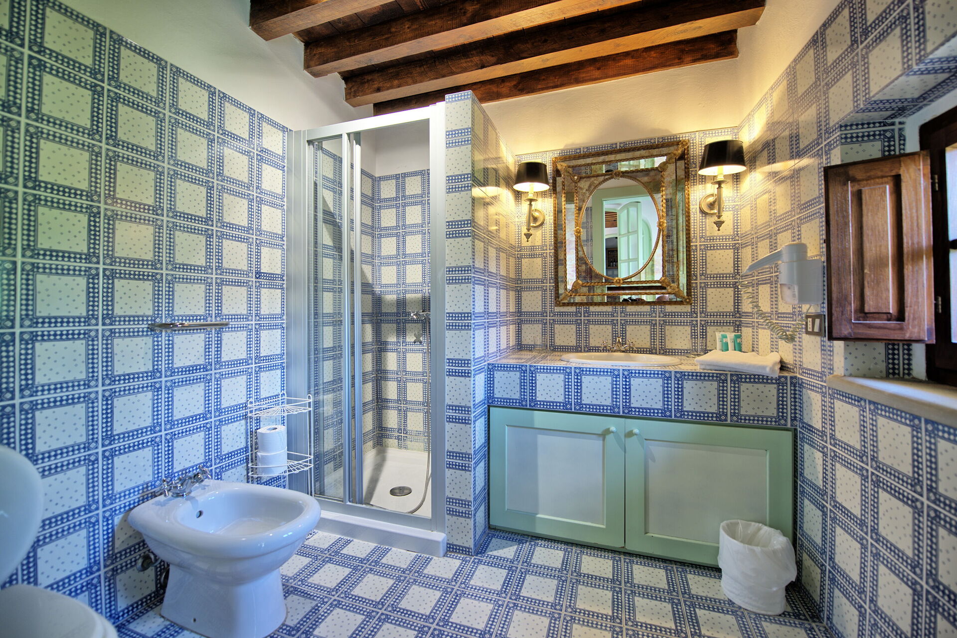 First floor: bedroom with single bed, double bedroom (air conditioning) with private bathroom with bathtub, double bedroom (air conditioning) with private bathroom with bathtub