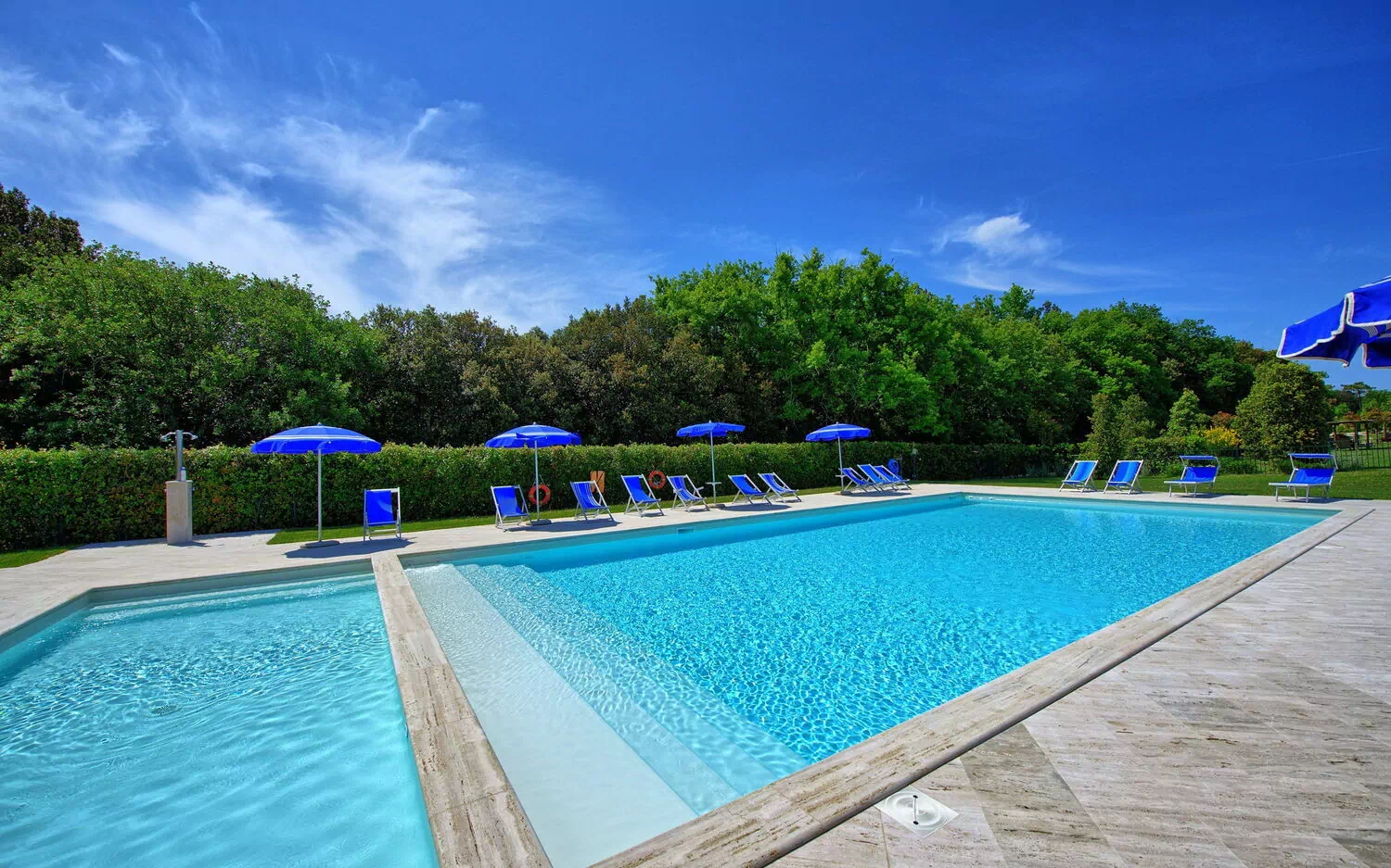 A beautiful private swimming pool with a large solarium is available for the guests.