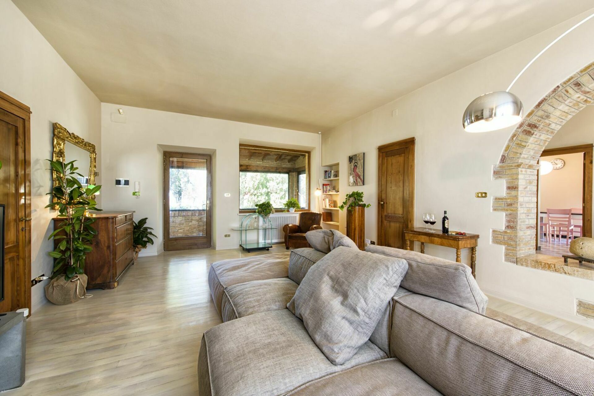 This holiday villa rental in Montalcino has been carefully restored and furnished, perfectly mixing traditional details with modern elements of contemporary art. Additionally the villa, despite being located within a village, is provided with a garden, a private outdoor Jacuzzi (4 persons; 2,1 x 2,1 meters) and a large furnished terrace ideal for al-fresco dining while enjoying the panoramic views.