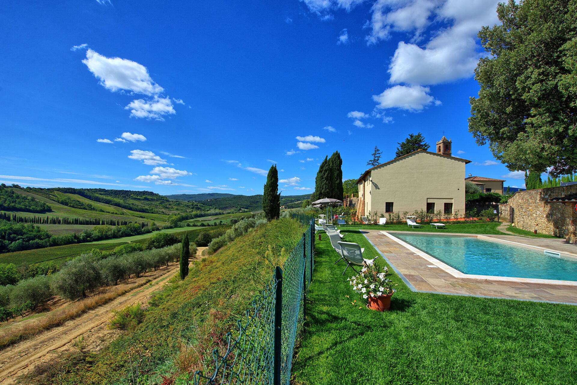 Montauto sits on a hill overlooking the enchanting countryside with vineyards and olive groves. It offers a majestic villa for 10 people, and 5 recently-renovated apartments with all amenities and a one studio apartment ( 650 m away) . On the property there is also the church of San Lorenzo a Montauto (a history and art treasure) and the owner’s house, which is completely independent.