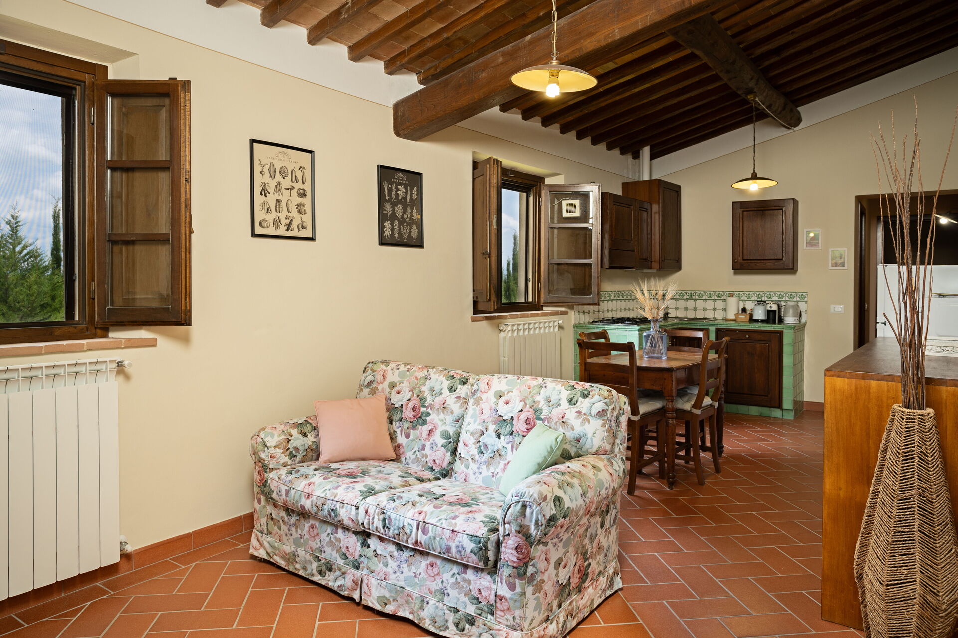 Outdoor area equipped with table, chairs and barbecue shared with the apartments Camino and Cipressi