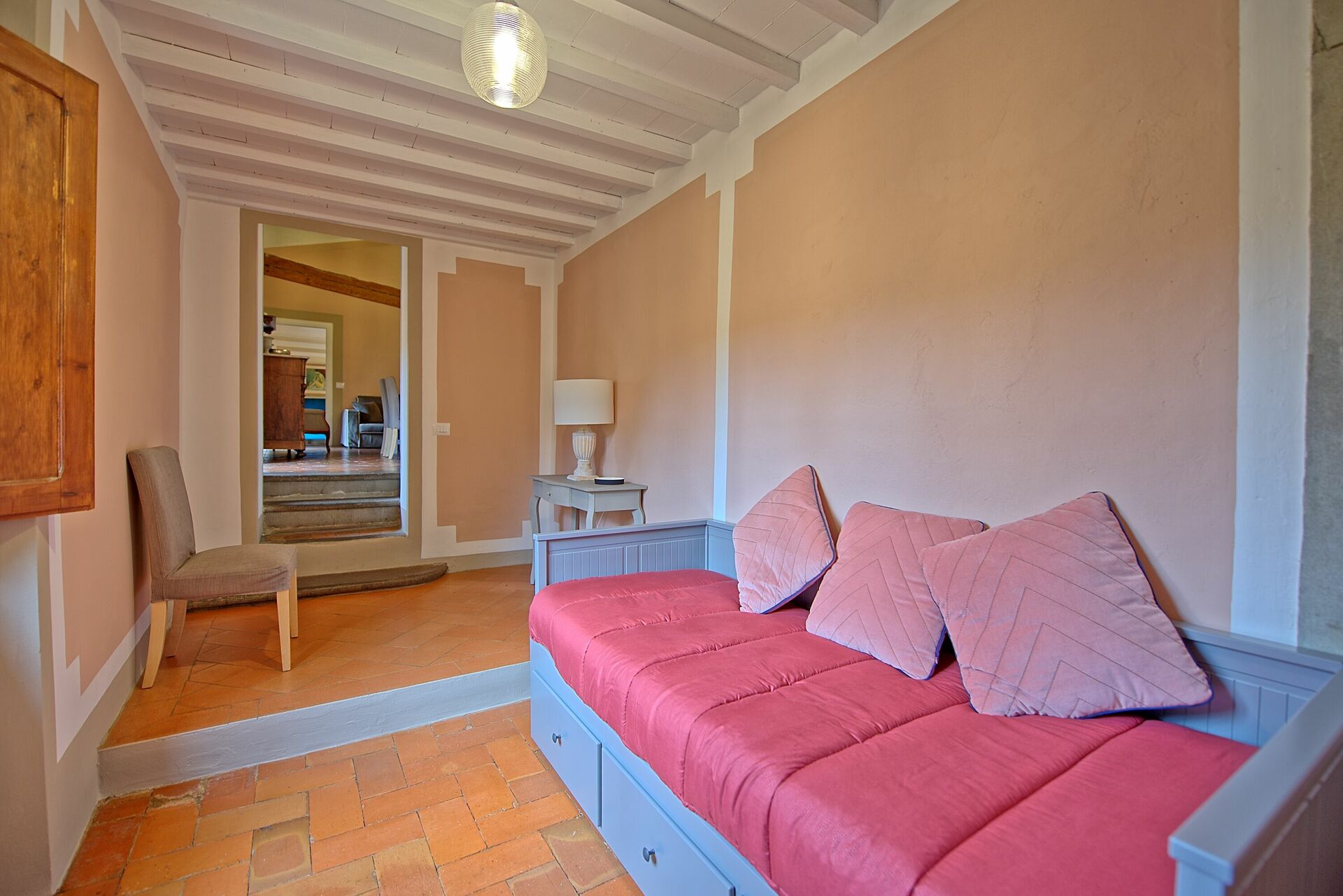 Très bel endroit, calme, hormis le bruit des gens lors du passage dans la cour. 20 minutes de voiture de Florence et 1h de Pise.