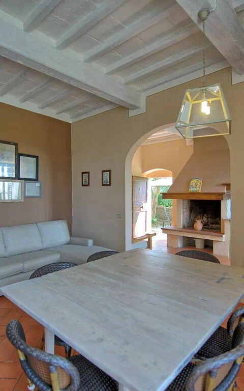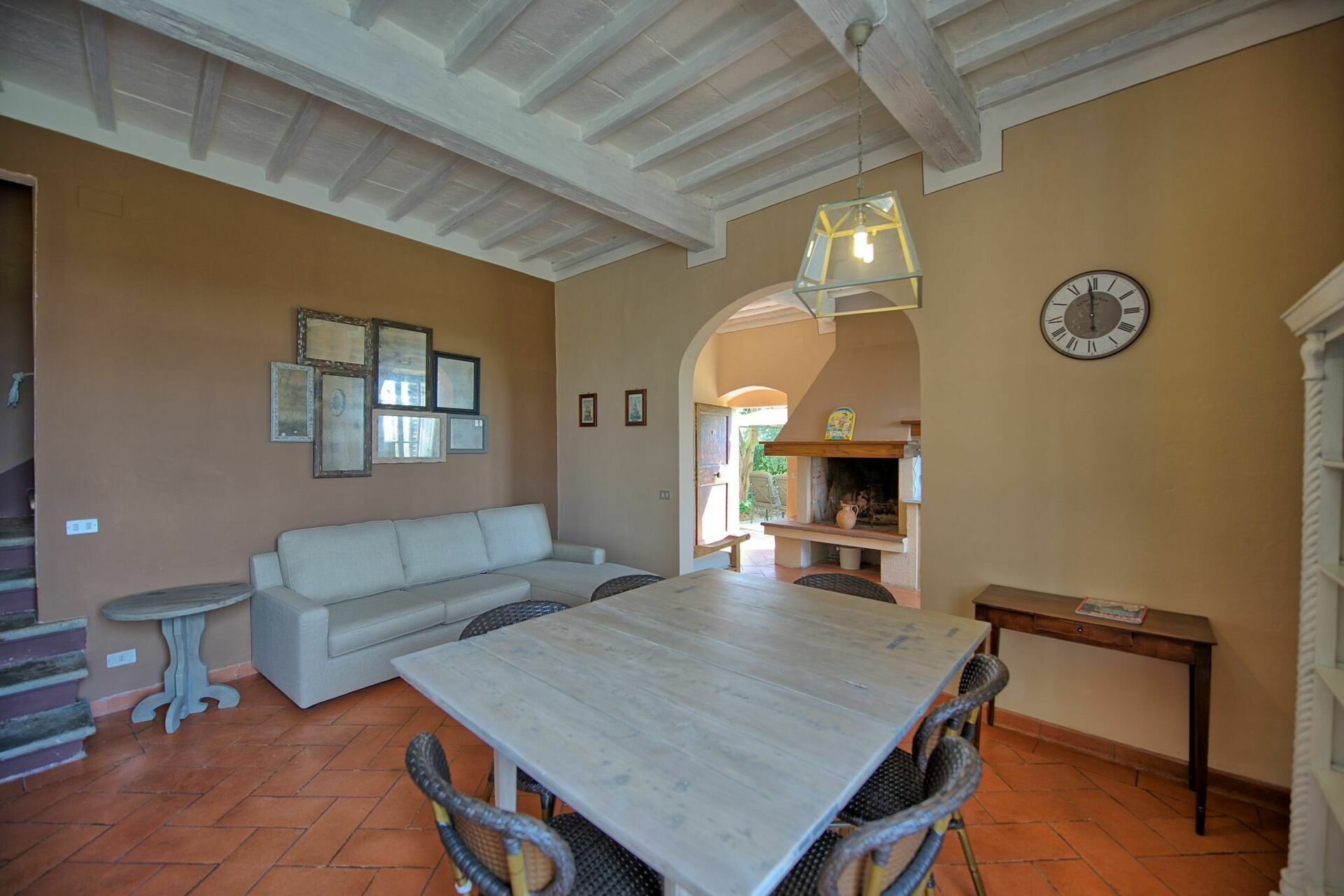 Ground floor: large living-room with dining area, fireplace and access to the kitchen.