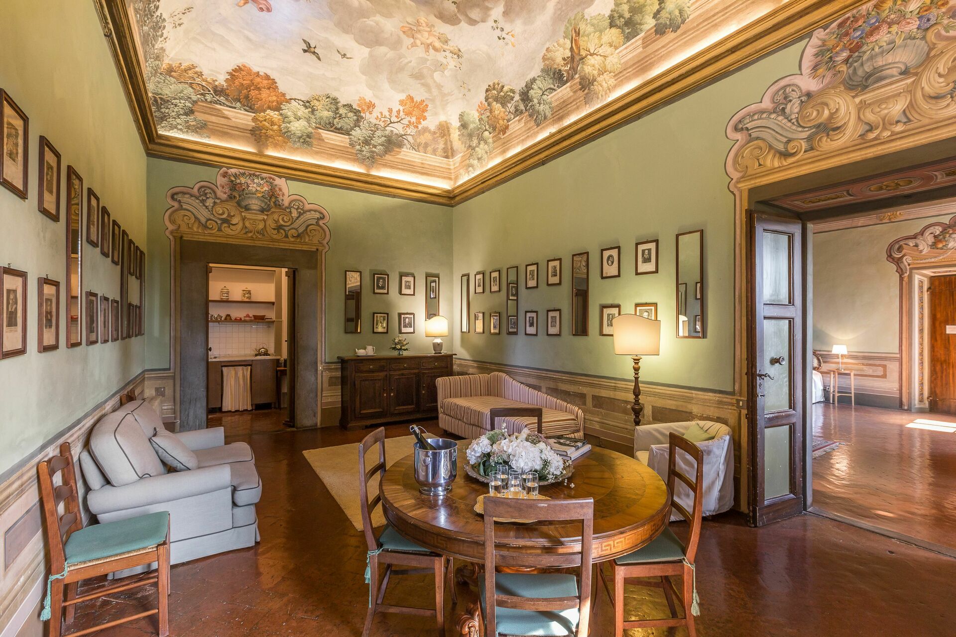 This apartment is charmingly decorated with frescoes dating back to the 17th century and enjoys nice views over the garden and the surrounding landscape.