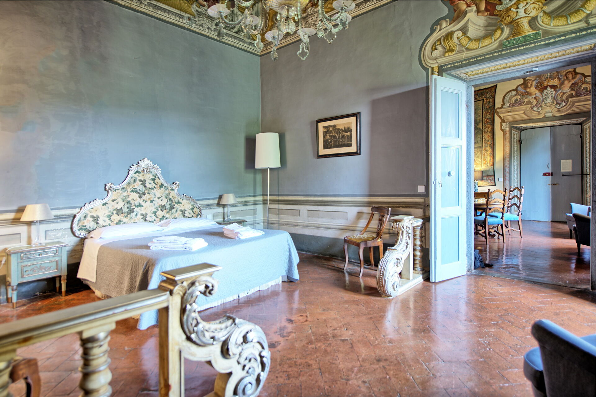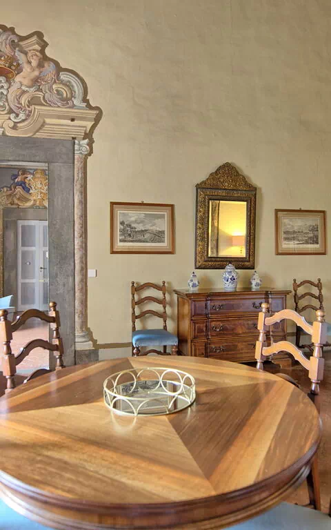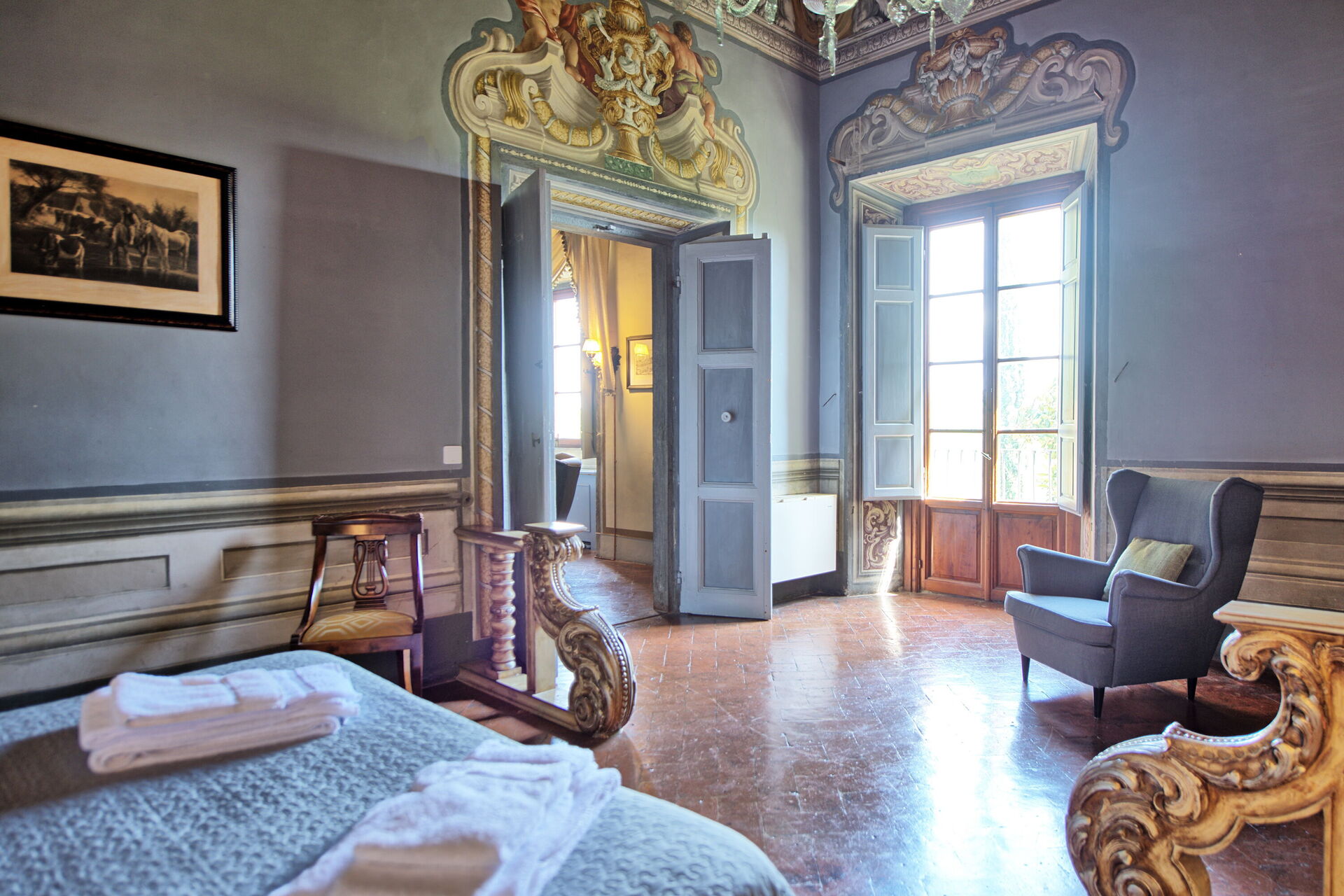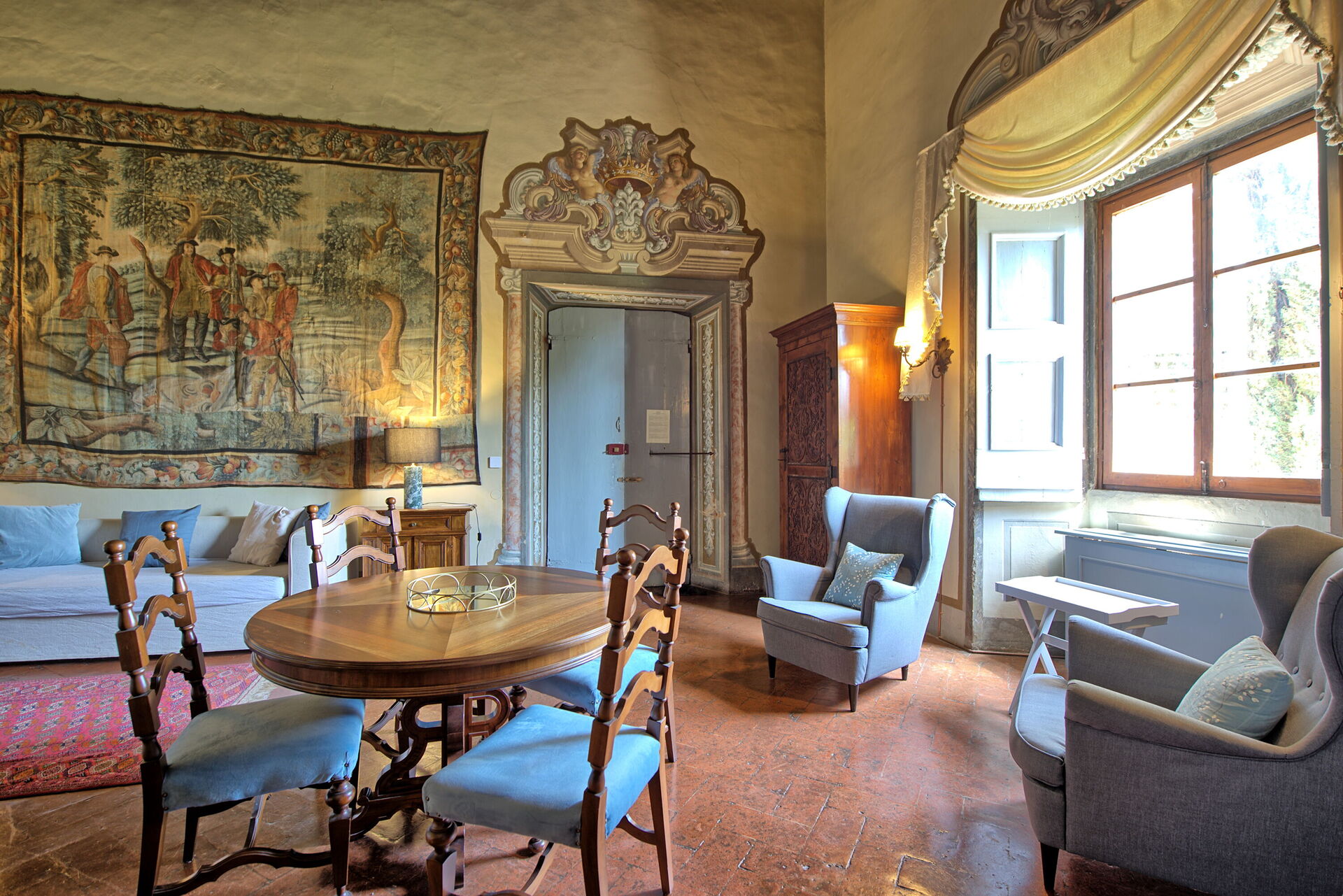 Apartment set in the noble part of the castle with large windows looking over the garden.