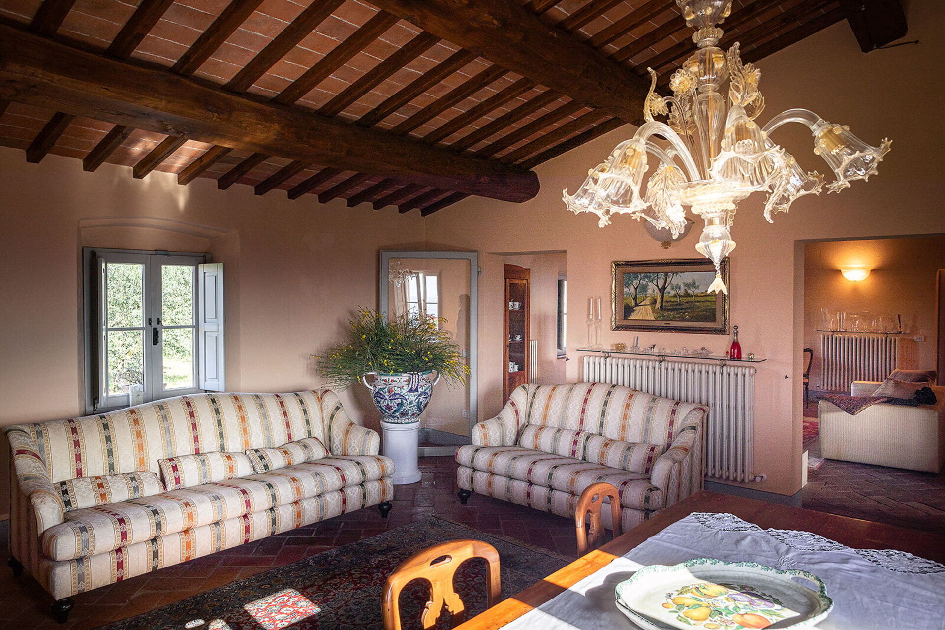 The two-floor property is made up of 2 units that are connected inside: on the ground floor there are 3 bedrooms (for 5 people), while the upper floor has 3 bedrooms (for 6 people). In total Villa Colle di Sotto can accommodate up to 11 people thanks to 6 bedrooms and large indoor and outdoor spaces.