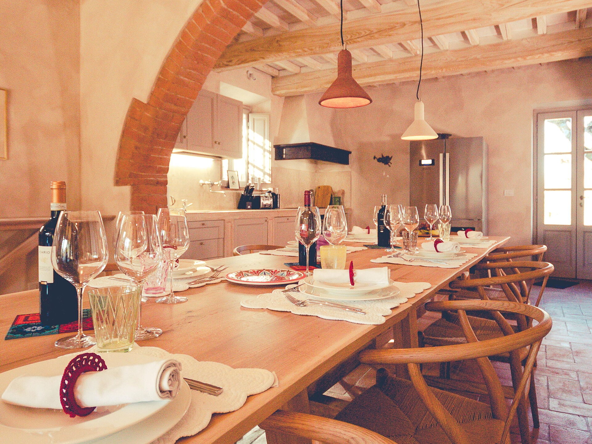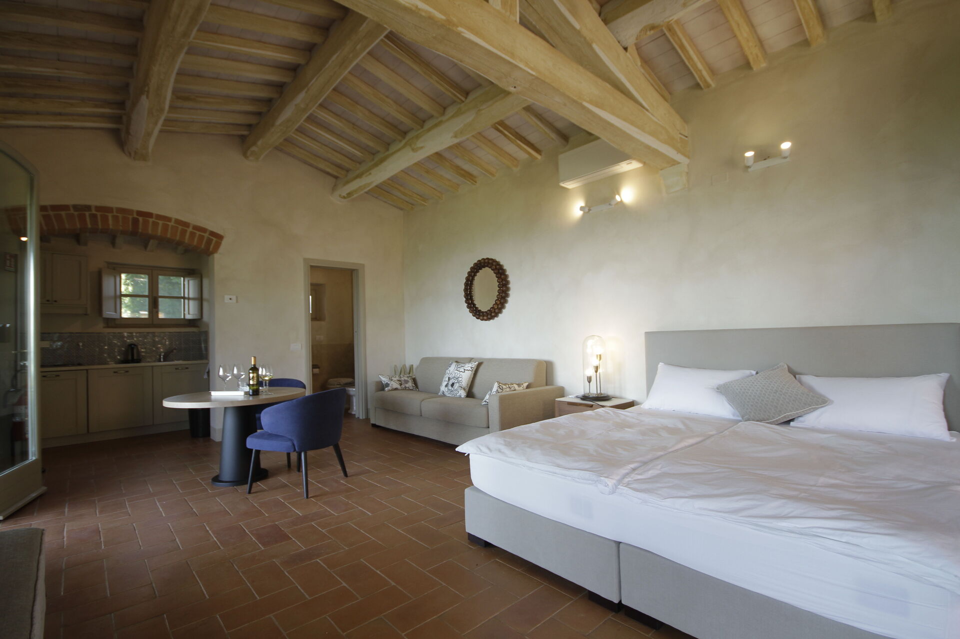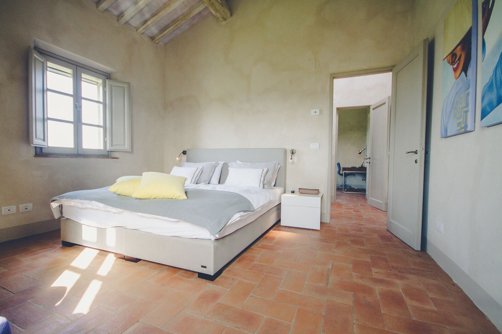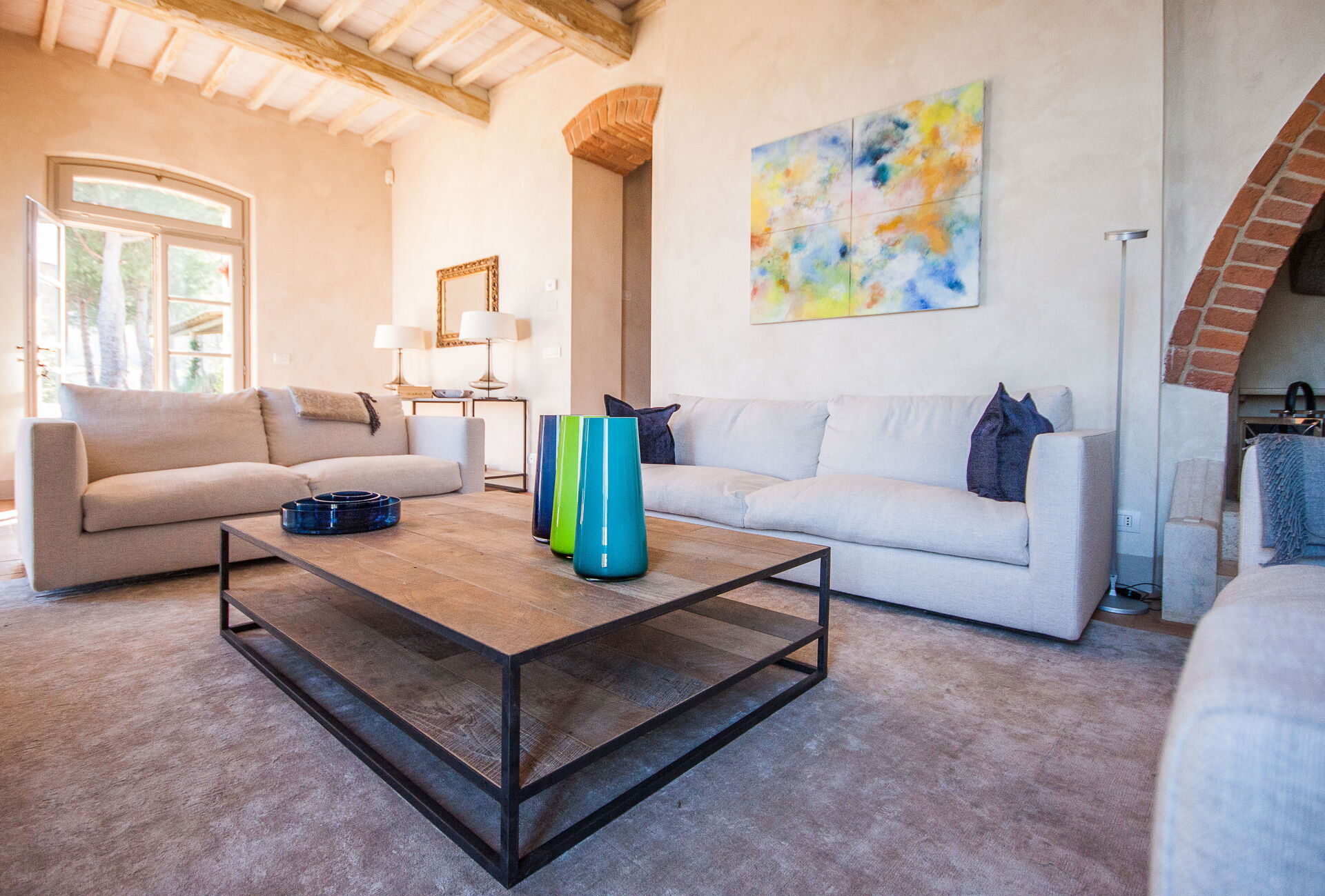 The bright interiors are welcoming, comfortable, and perfect for a lovely vacation in Tuscany.