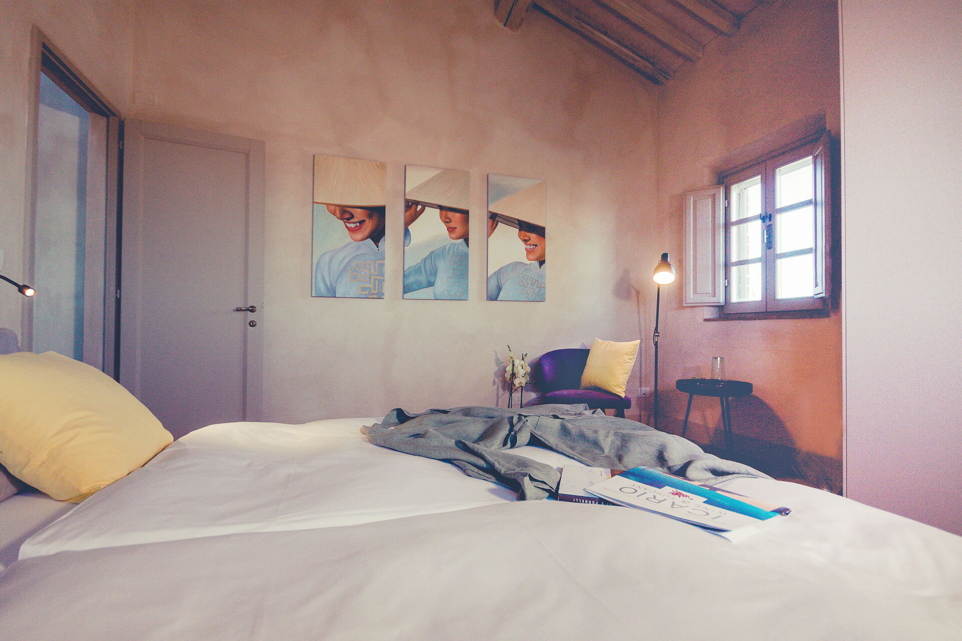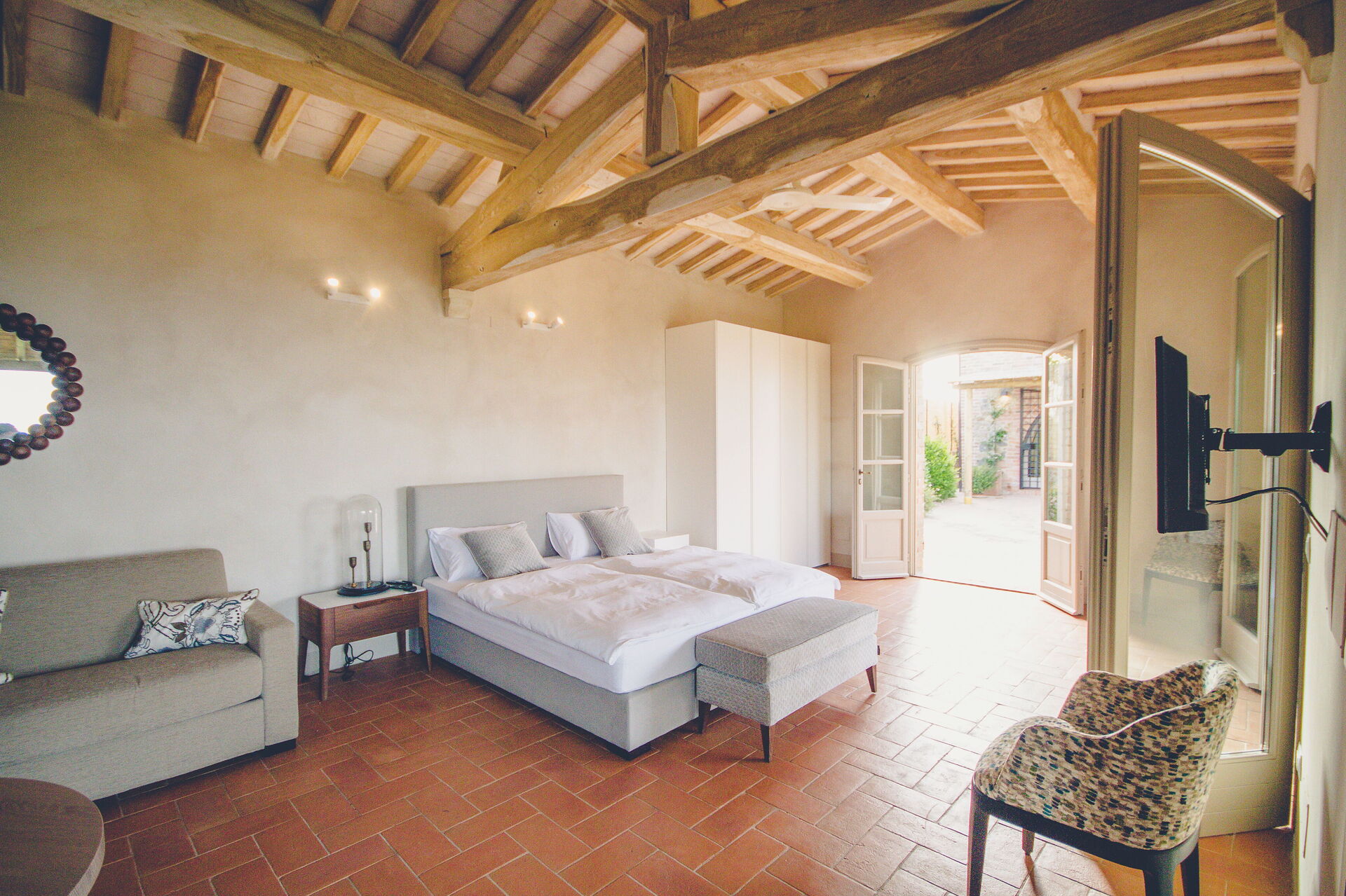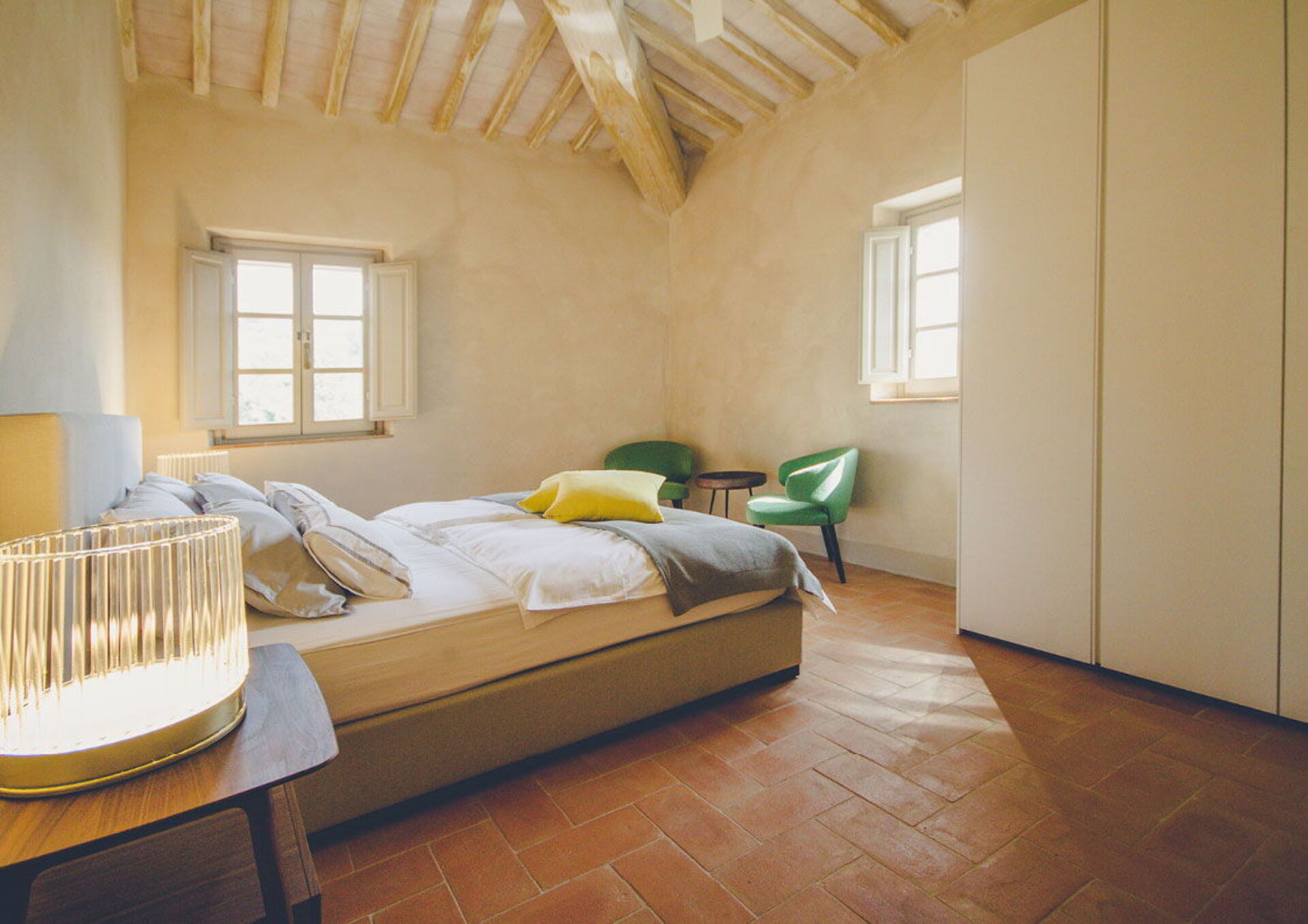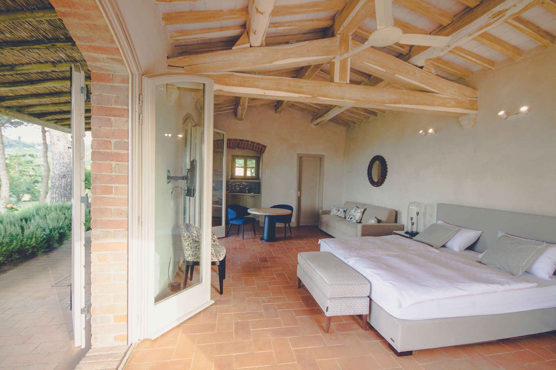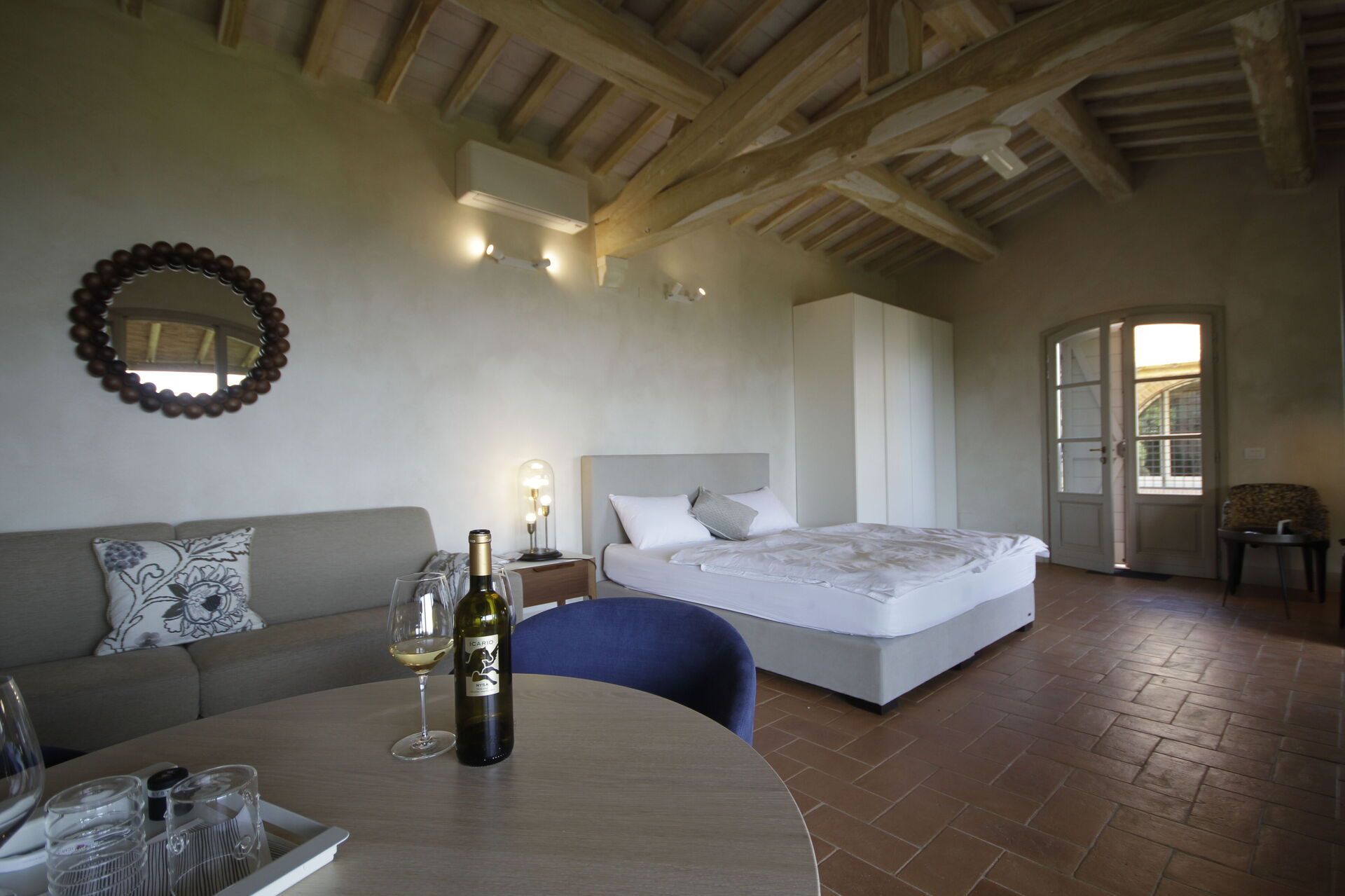 The bright interiors are welcoming, comfortable, and perfect for a lovely vacation in Tuscany.