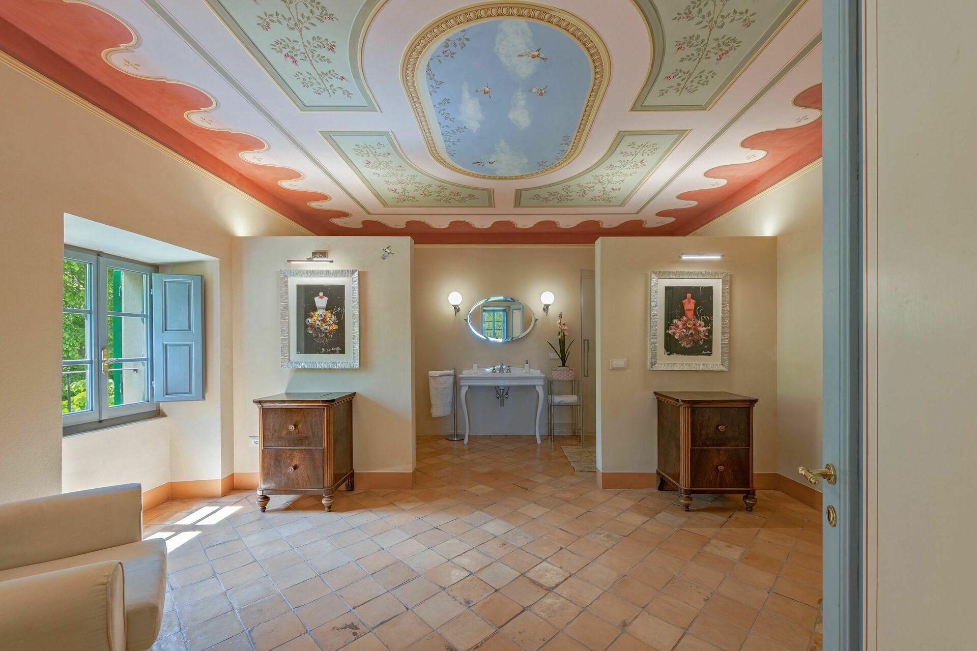 Palazzo Rosadi offers its guests a wonderful pool to spend full of fun moments with family and friends, a large garden with barbecue that makes unique your stay in the warm seasons. It offers 6 bedrooms, 7 bathrooms, and a private pool. It is a luxurious country home in a wonderful location near the little village of Monterchi (near Arezzo), all surrounded by a wide, private park with a wonderful garden and a pool warmed by an all day sun exposure with an impressive panoramic view.