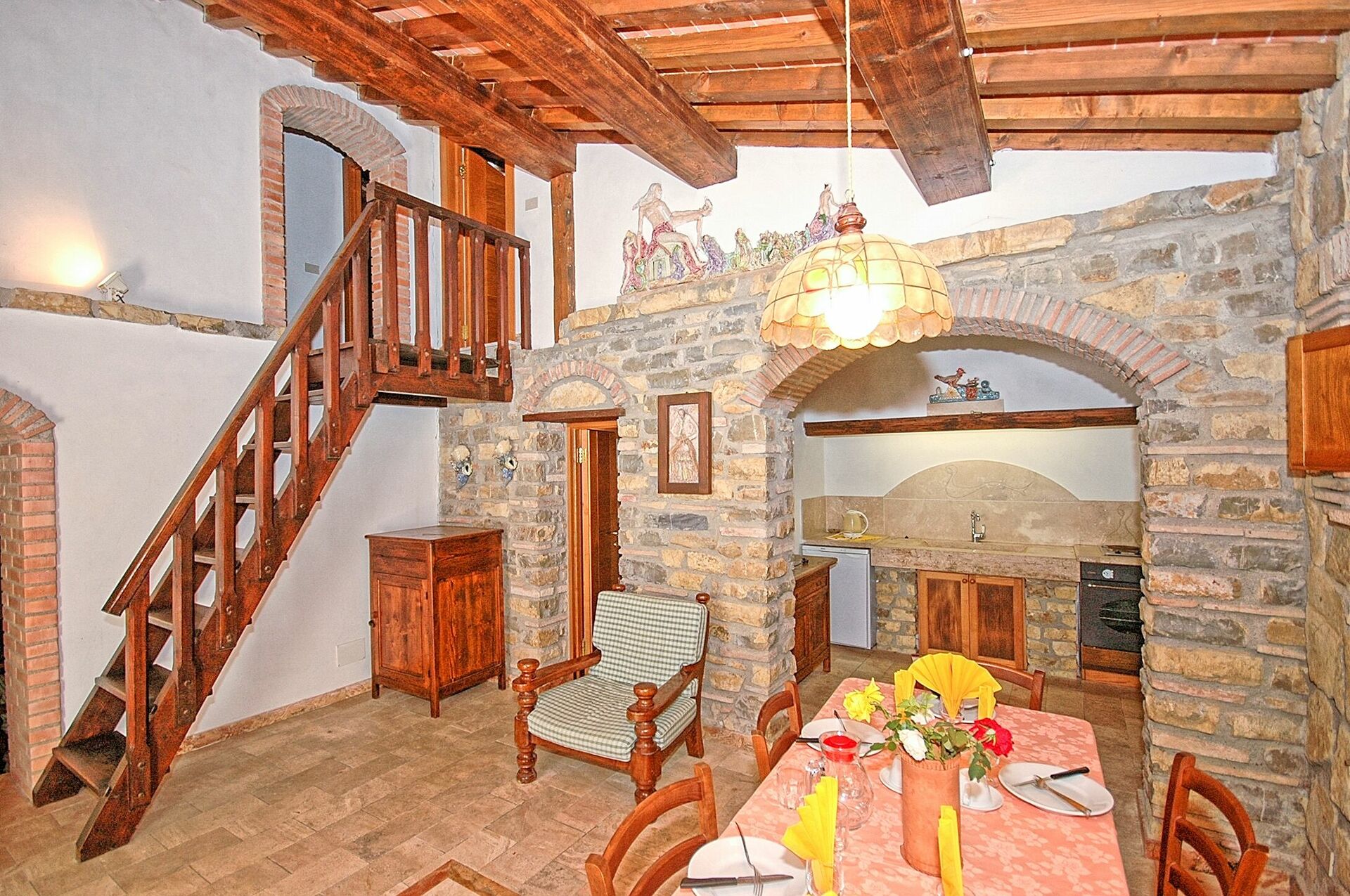 Ground floor: small and bright living-room with access onto a terrace, dining-room, open kitchenette (oven, fridge 120 liters), double bedroom, bathroom with shower.