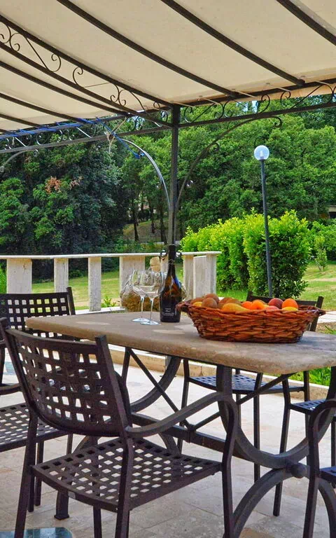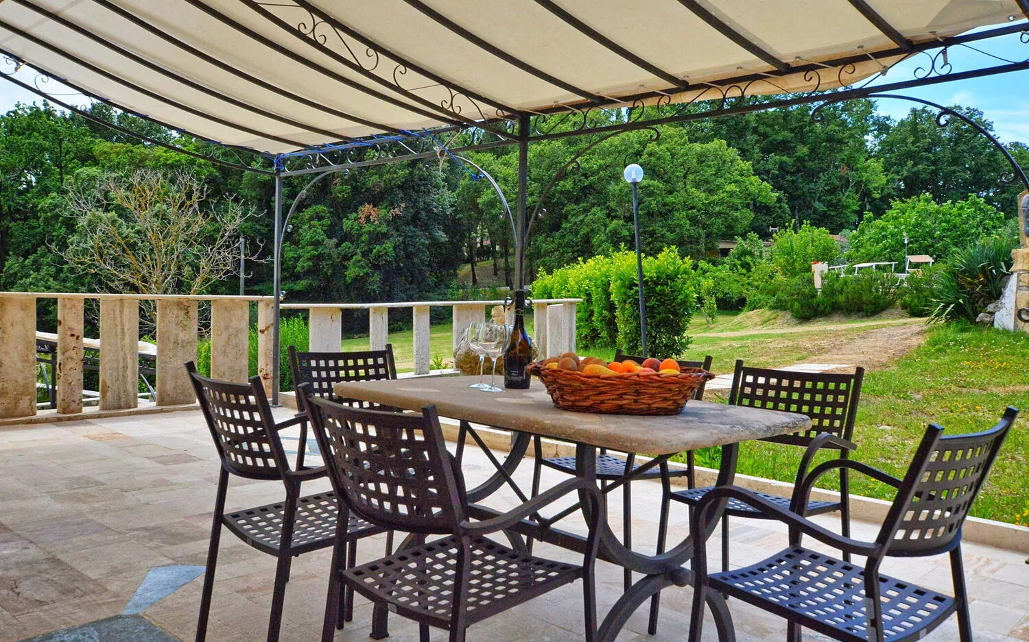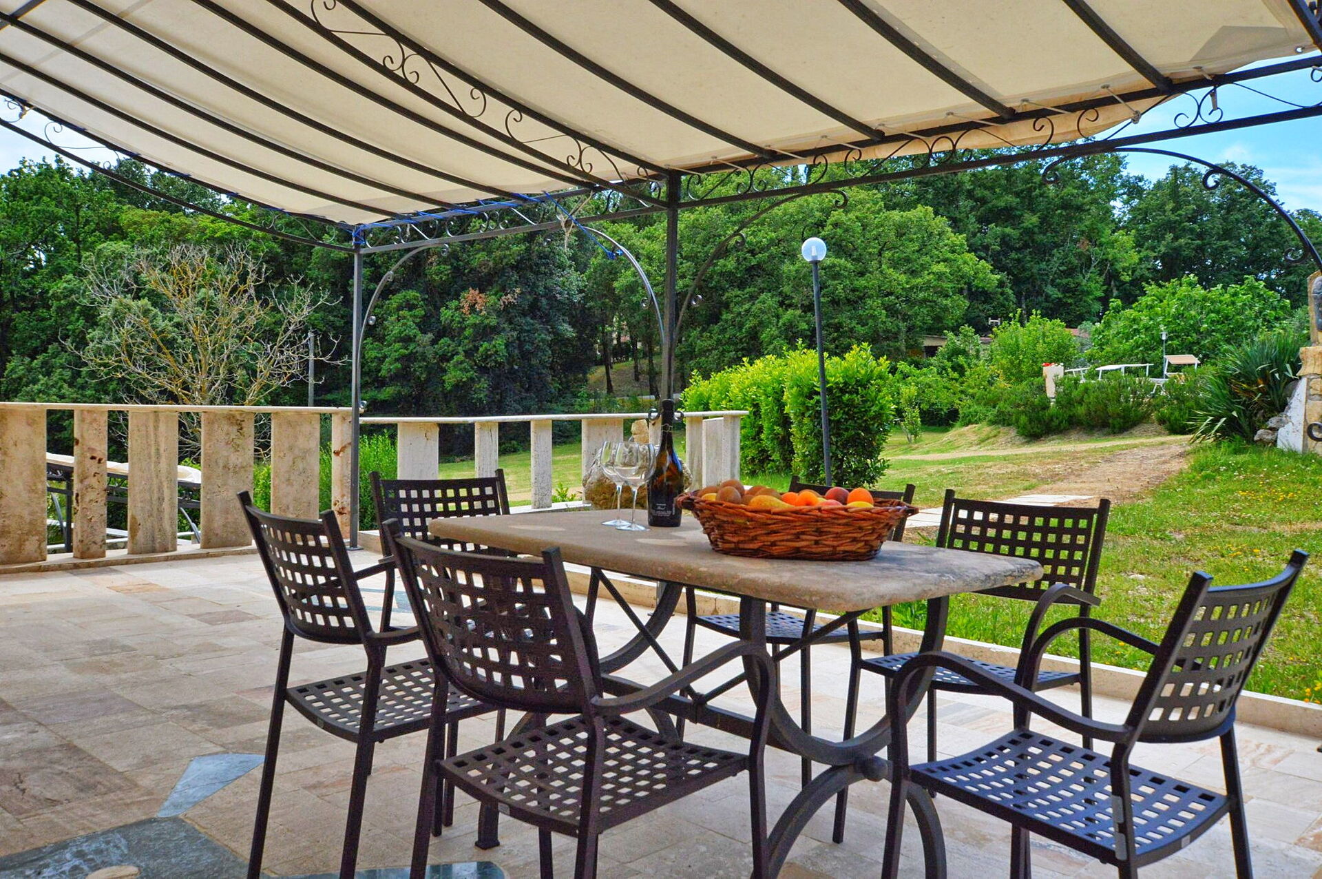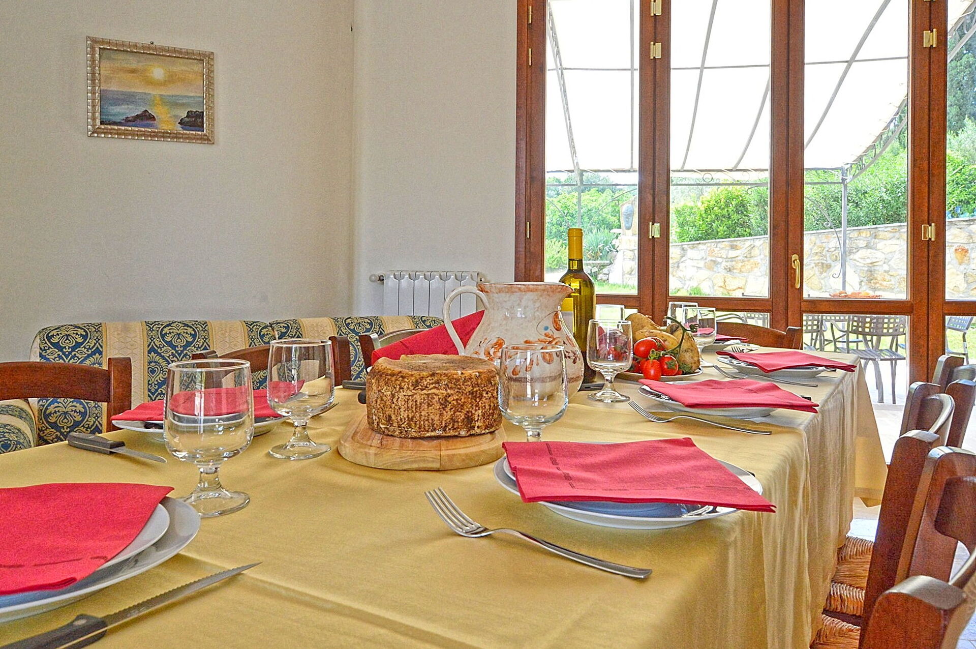 Ground floor: roomy living-room with double sofa-bed and dining area giving on to a large, partially shaded terrace, open kitchenette, bathroom with shower.