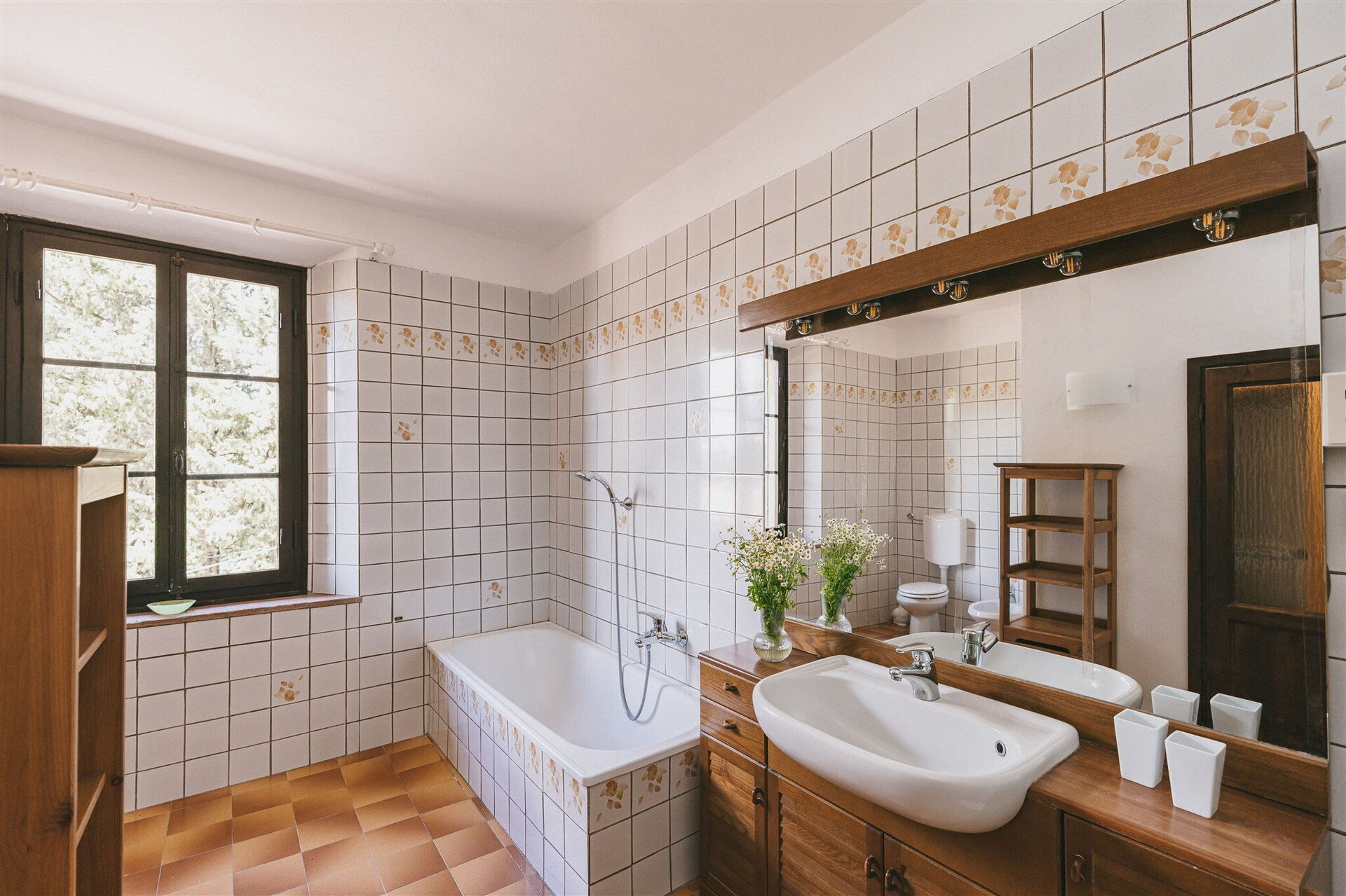 Ground floor: entrance and large living area made up of a living room with fireplace and dining area, kitchen (cooktop, oven, freezer, refrigerator, dishwasher, microwave, coffee maker), bathroom with shower, double bedroom, bedroom with 2 single beds, bathroom with bathtub.