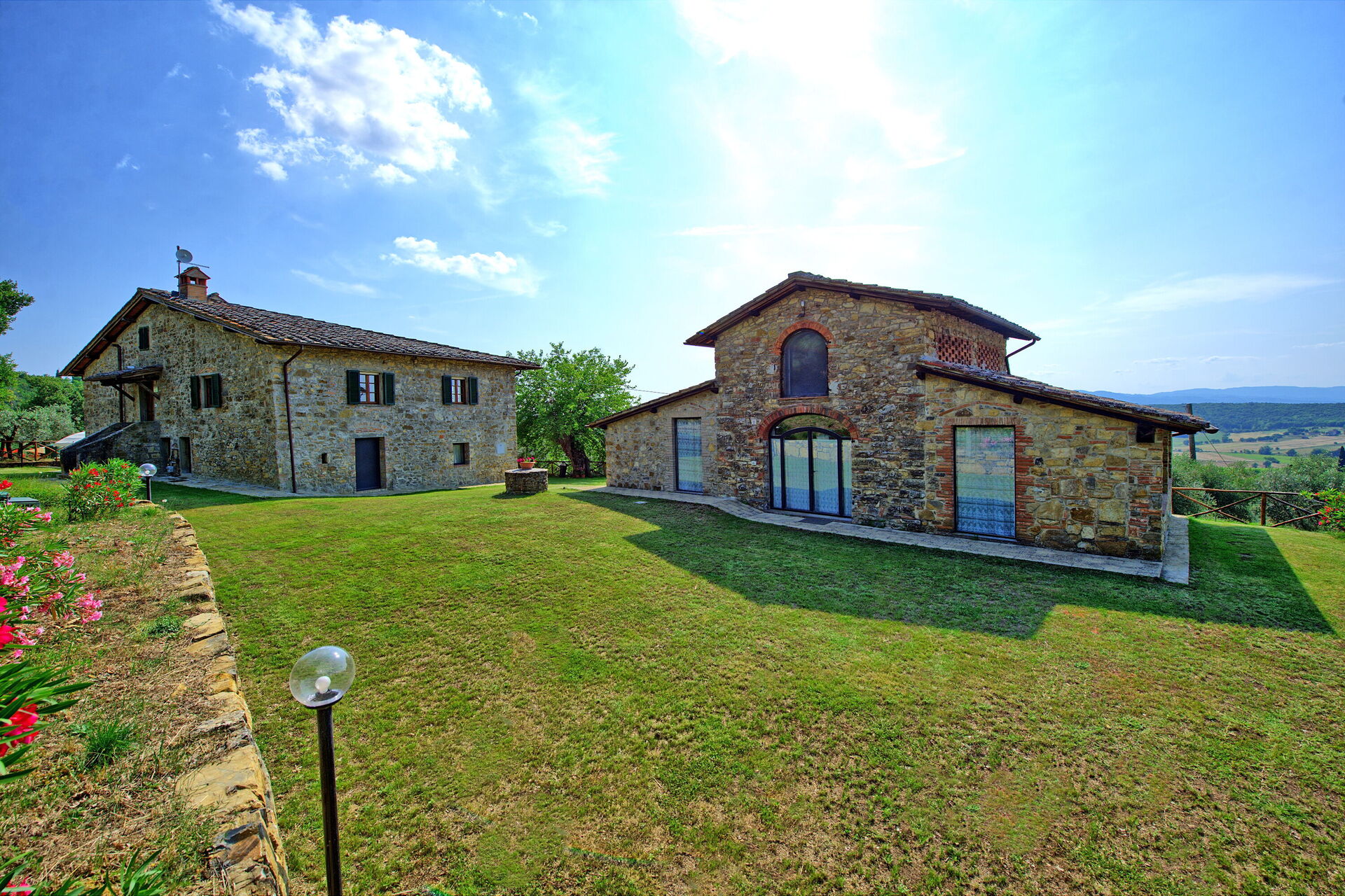 Set between the rolling hills of Chianti and Arezzo, Querciolaia boasts magnificent views of vineyards, woodlands, and open fields. The property features a main house with four bedrooms and two bathrooms, along with a separate barn just a few meters away, offering two additional bedrooms and bathrooms—ideal for families and groups looking for both space and privacy.