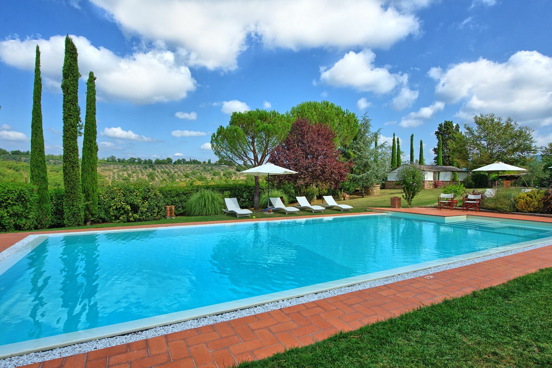 This Tuscan rental villa with a panoramic view and private swimming pool is a great base from which to explore the artistic beauty of the region: Arezzo, Siena, the Val d'Orcia, the Chianti wine area, Florence, San Gimignano, Volterra, etc.