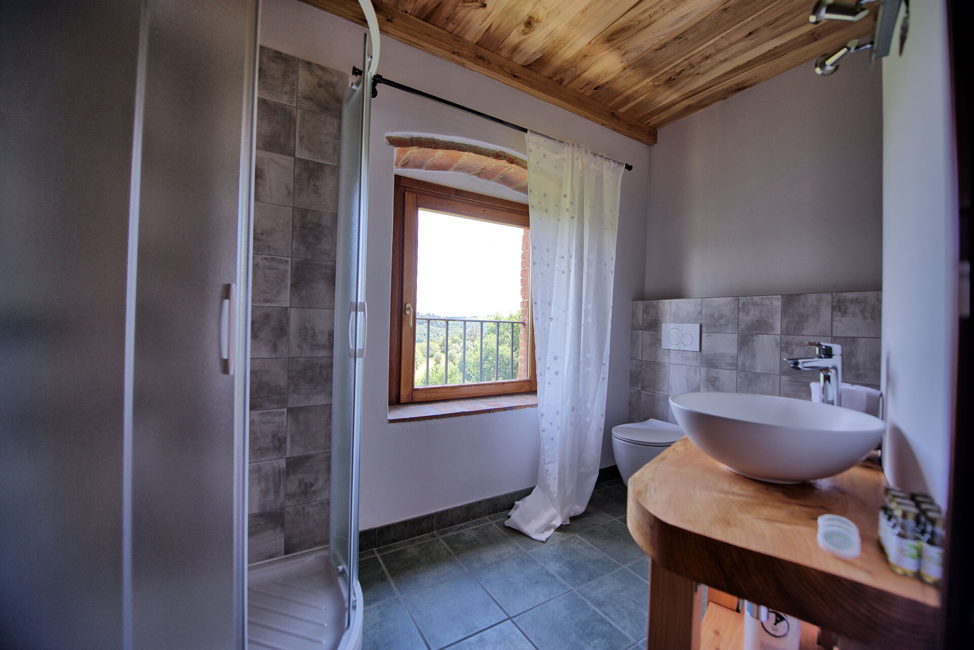 1 step up: bathroom with shower.