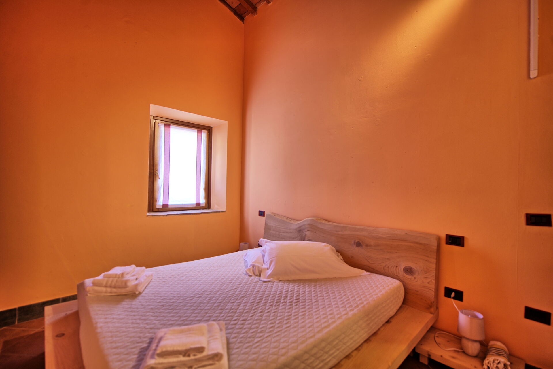 Ground floor: small living room with fireplace, double bedroom (air conditioning)