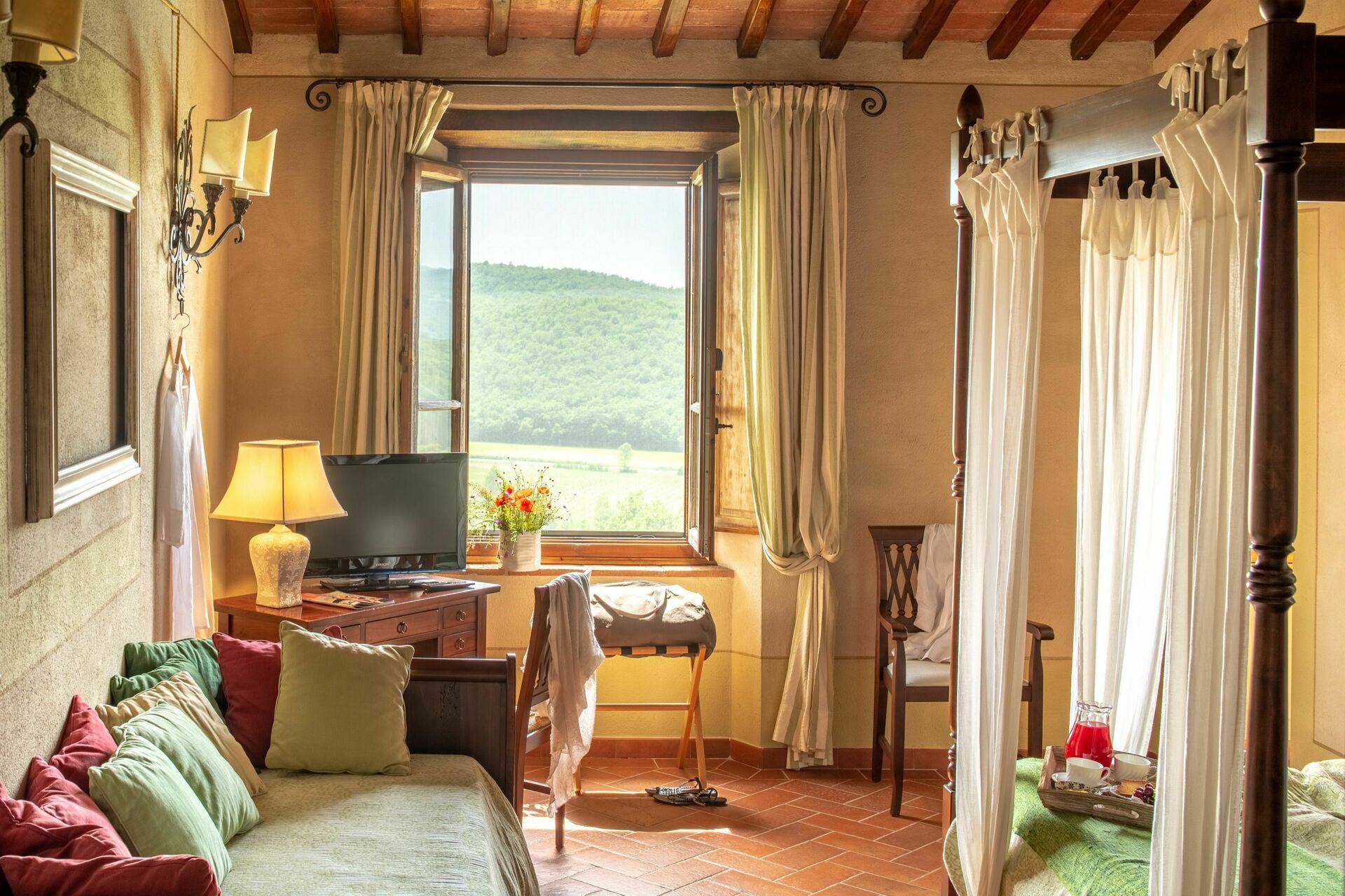 All rooms are comfortably appointed with modern terracotta tiled floors, beamed ceilings, satellite television and with ensuite shower rooms.