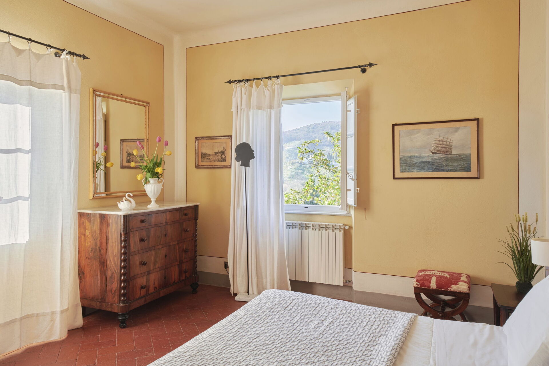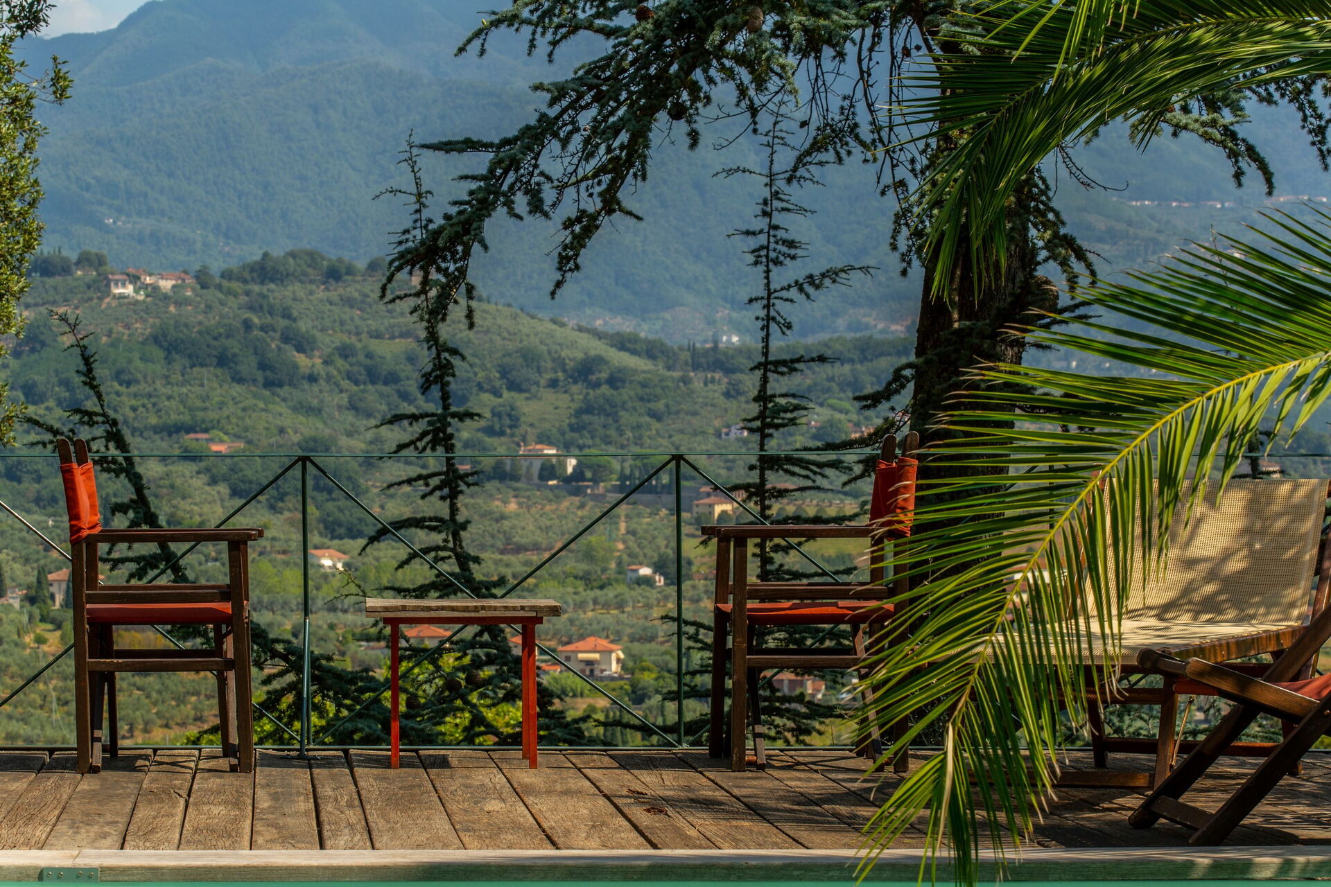 Villa Pedone is situated on a quiet and secluded hillside, surrounded by breathtaking views of olive groves and vineyards. Although you will feel far away from the city, Lucca is only 10 minutes away by car. It is an ideal location, as you will see on the map, the city of Lucca is positioned centrally in the Tuscan region. It is aprox. only 15 km from the sea side and 10km from the mountains. It is surrounded by all the main cities of Tuscany, which are easily reachable also by train or bus.