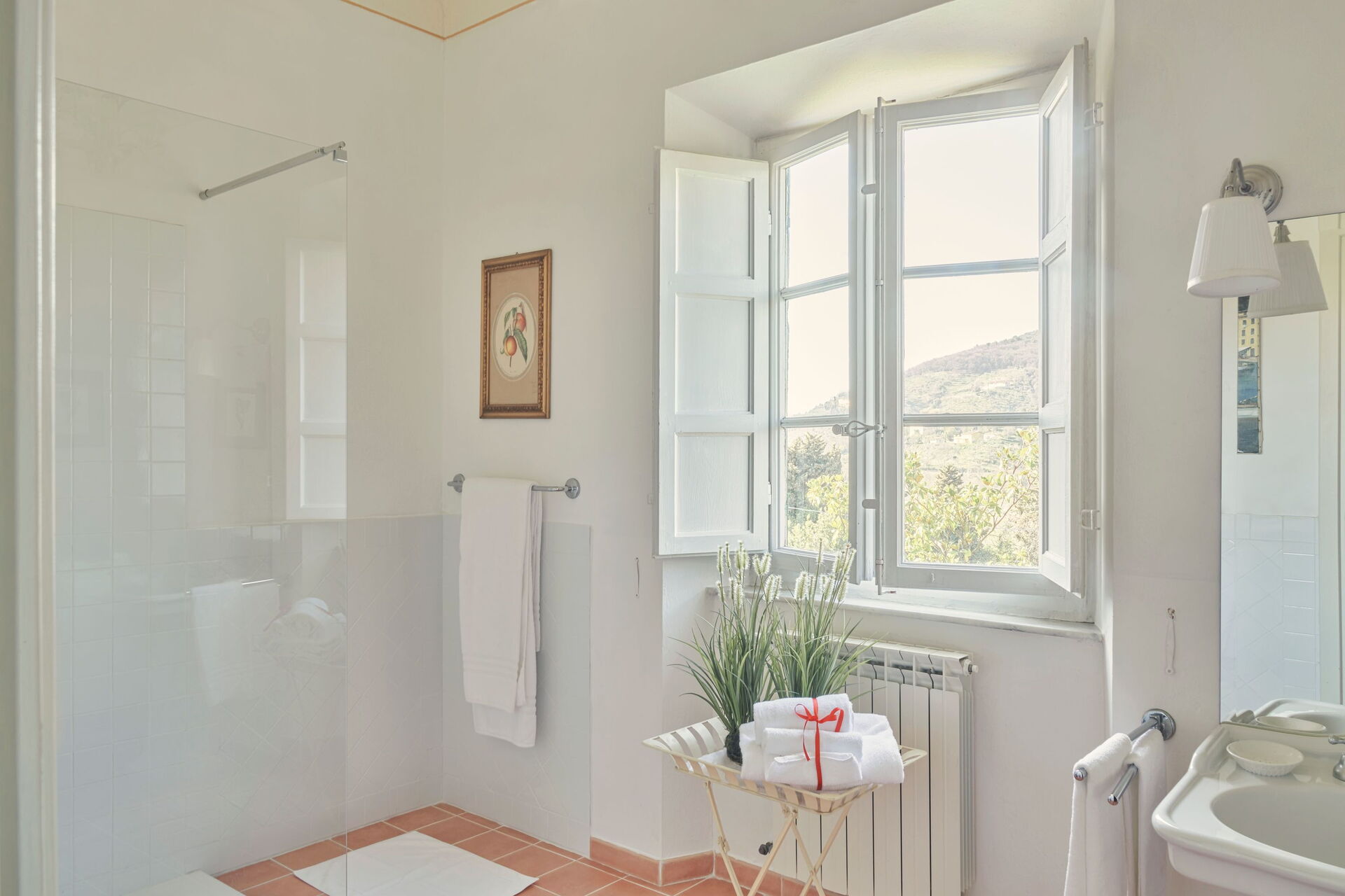 The villa is surrounded by ancient olive groves and vineyards. It is also an historic area where once all the noble families built their summer estates to escape the heat and show off their wealth. Although it might seem like an isolated area, the village center is only 2km away, where it is possible to find a minimarket and a supermarket at 3km.