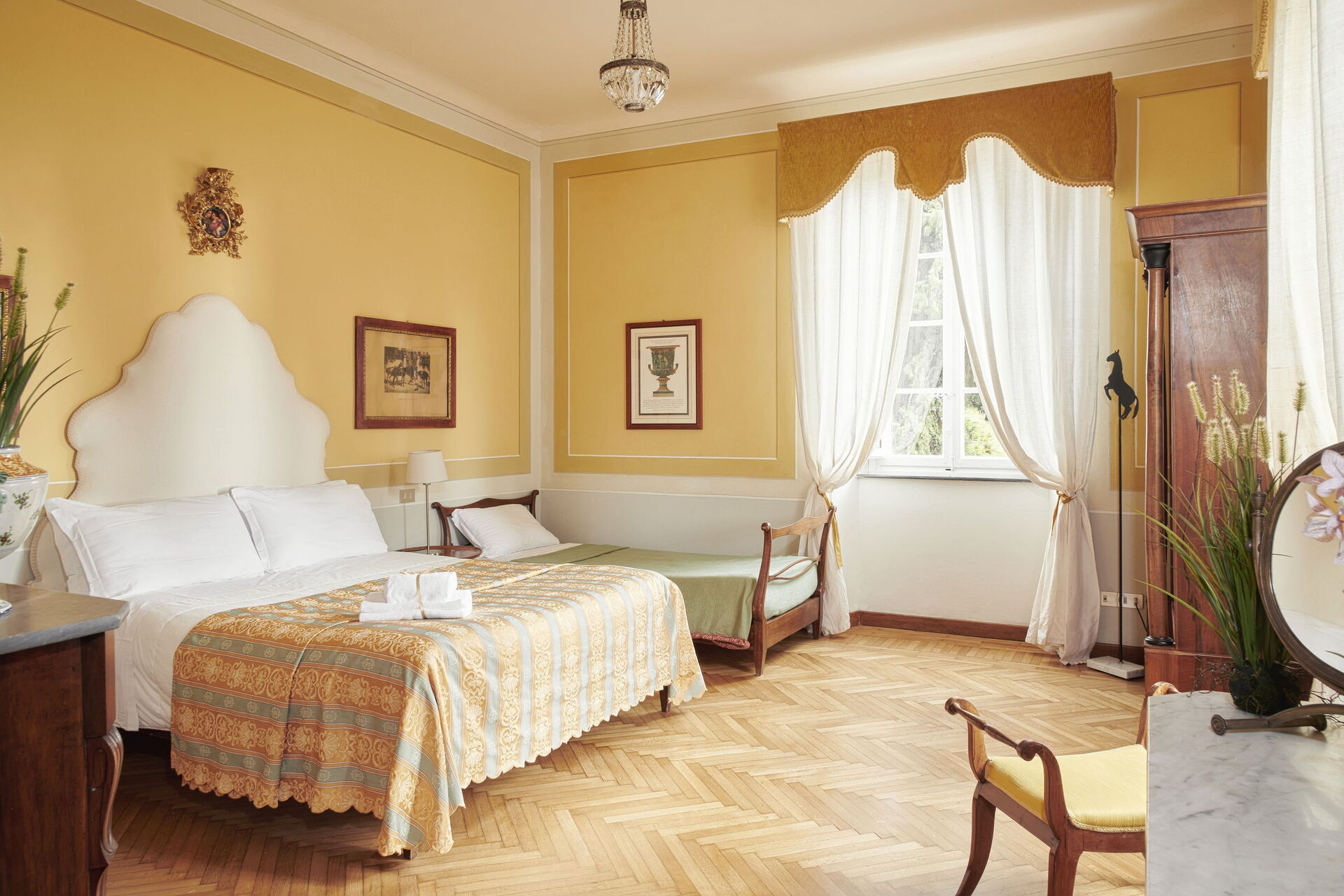 The villa is set in 6 acres and sleeps up to 12/14 people. It has been recently renovated in order to bring together modern comforts with the original architectural features and antique furnishings. It is fully furnished and surrounded by a private, Italian garden. Villa Pedone also offers a private swimming-pool, directly accessible from the house.