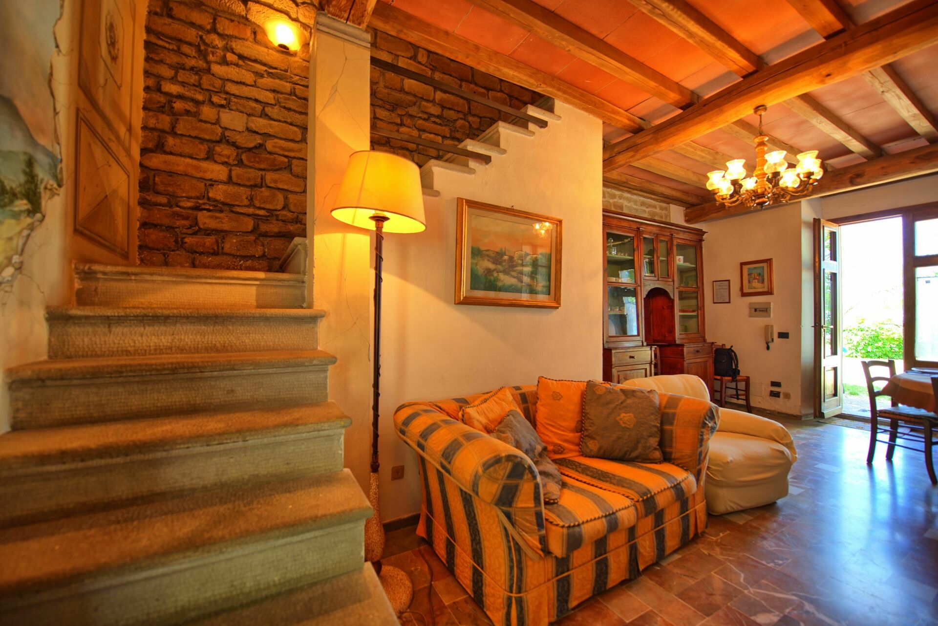 Wood-beam ceilings and antique-style furnishings enhance the character of this apartment.