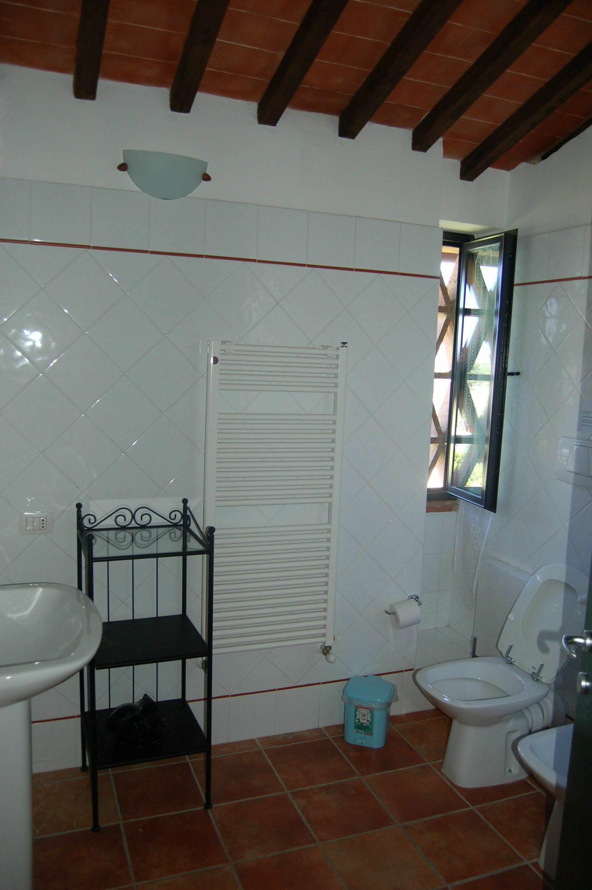 A corridor leads to the second bathroom with shower and to the second double bedroom, full of light. Also this rooms is sheltered by the terracotta bricks and enjoys a fascinating view of the valley with its secular olive trees.