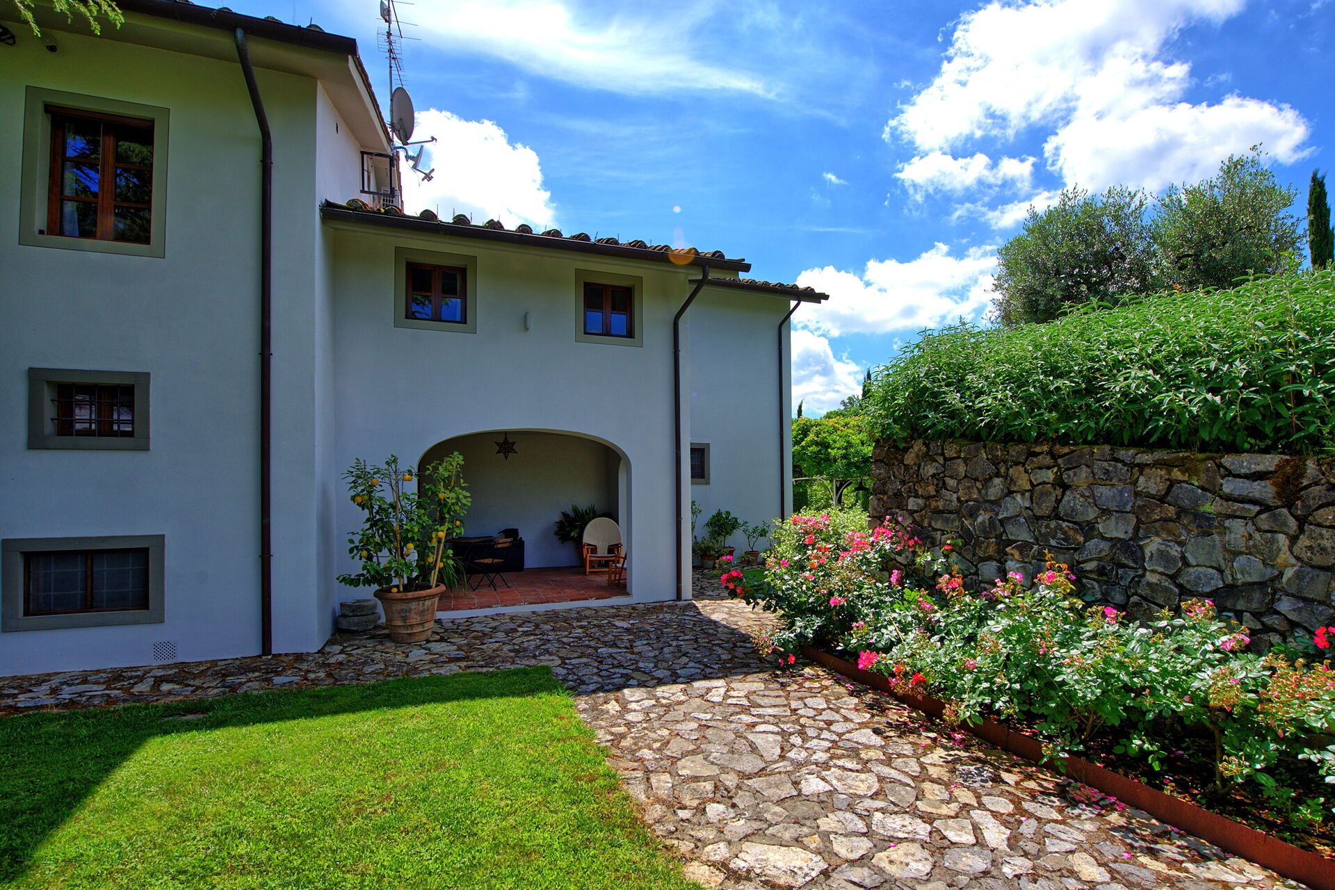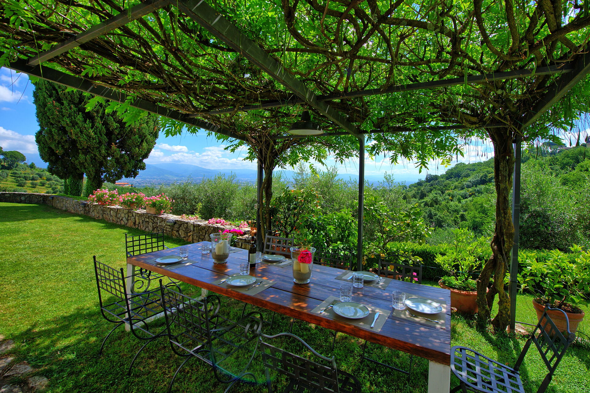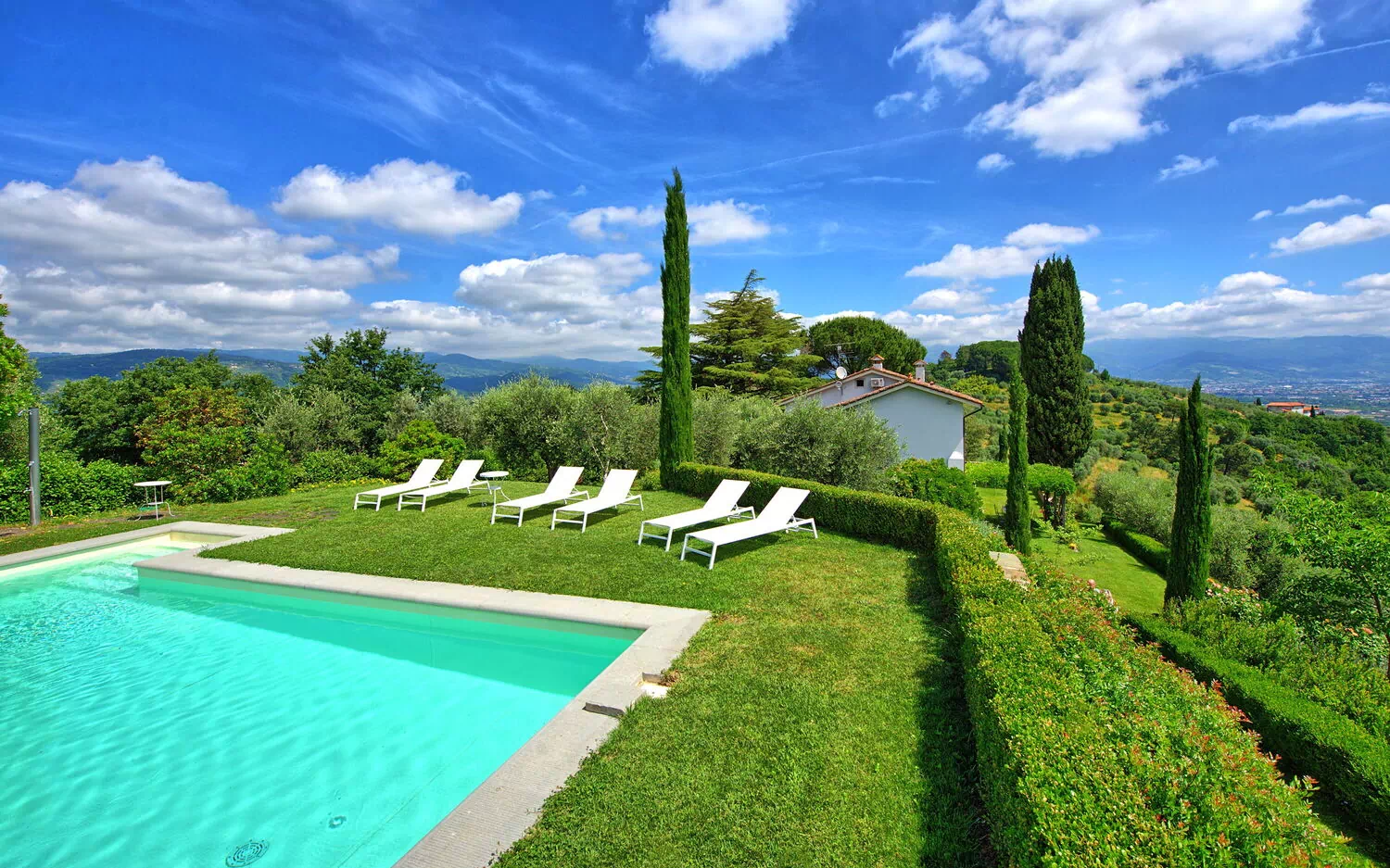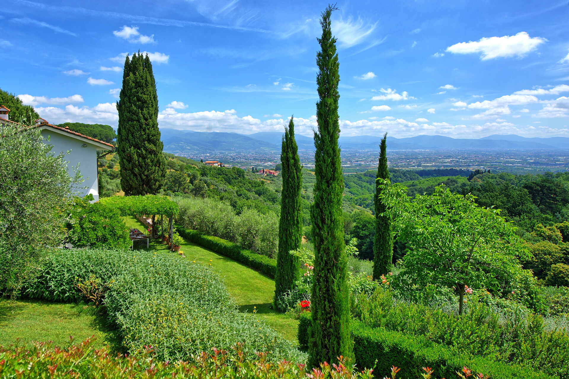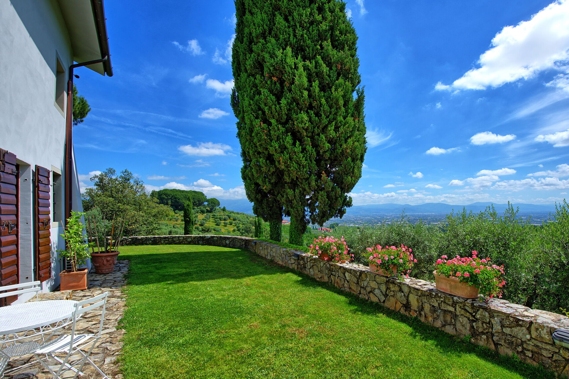 The garden of Villa Mami offers fantastic sweeping views of the valley below, from Pistoia to Florence. Strategically located, it is within easy reach of Tuscany’s main attractions like Florence, the Chianti Classico area, Pisa, Lucca, Volterra, Siena and the Tuscan coast (the nearby Versilia area offers large free access beaches and beach clubs). 7 km away from Villa Mami there is the town of Cantagrillo, where you can find all basic supplies.