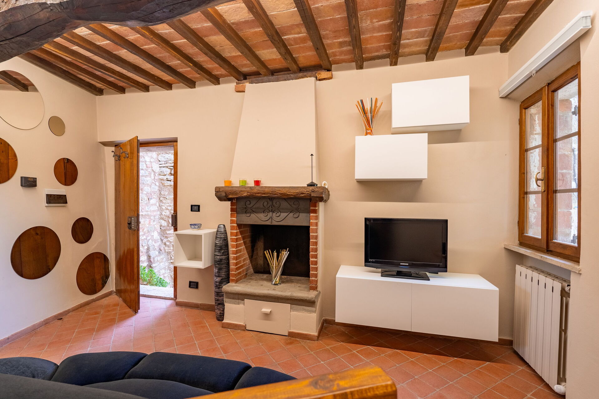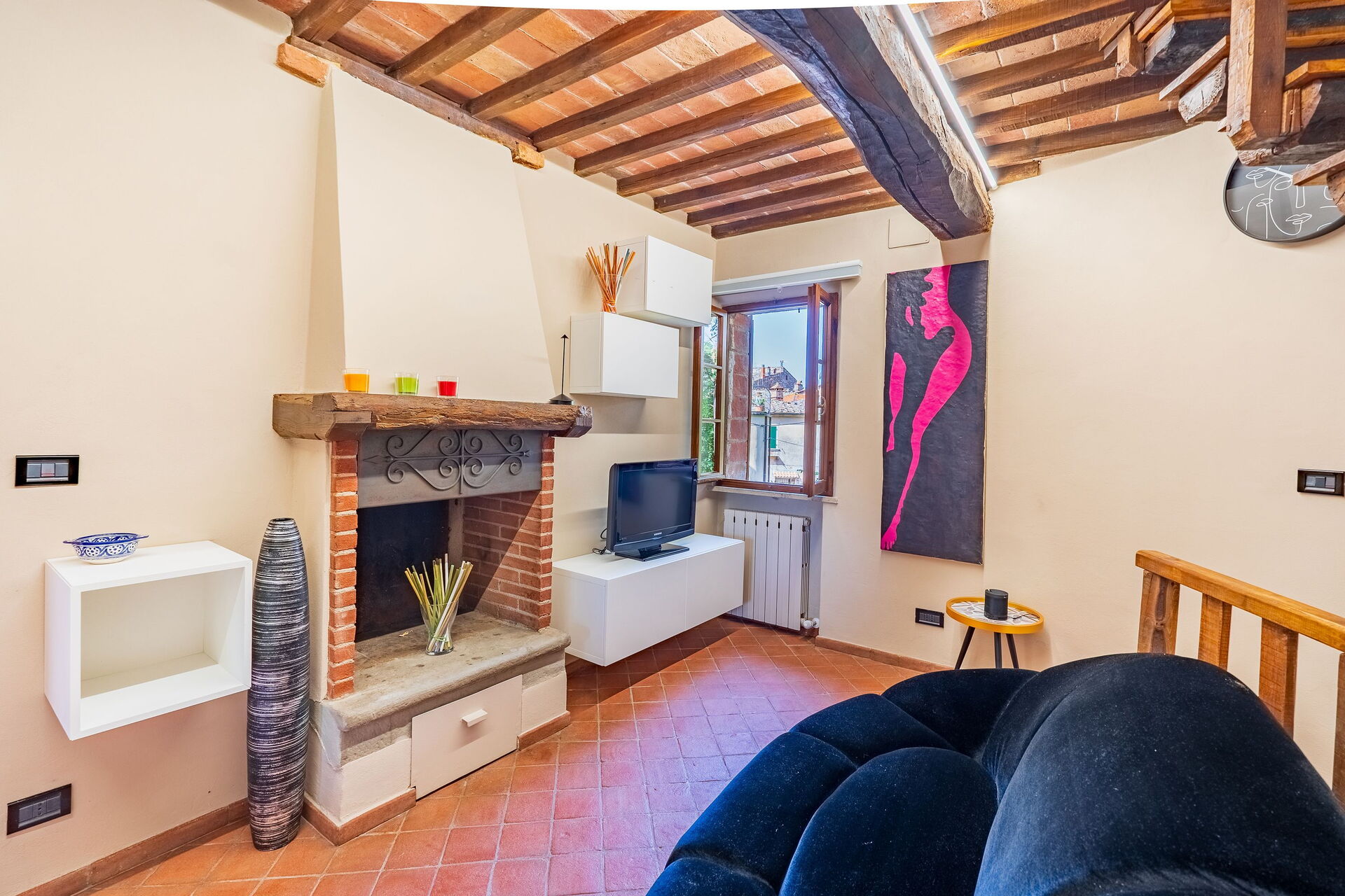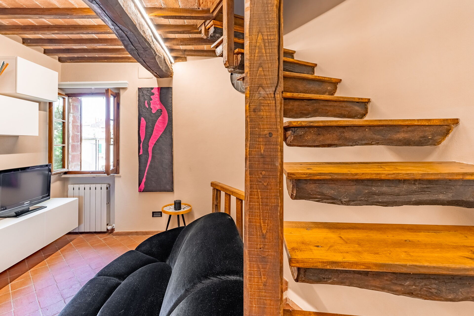 Each of the 3 levels has one room: the ground floor has a kitchen and dining area, the intermediate floor has a living room, and the top floor has the bedroom with bathroom. If you’re looking for a real experience in a Tuscan tower, this unique property is for you.