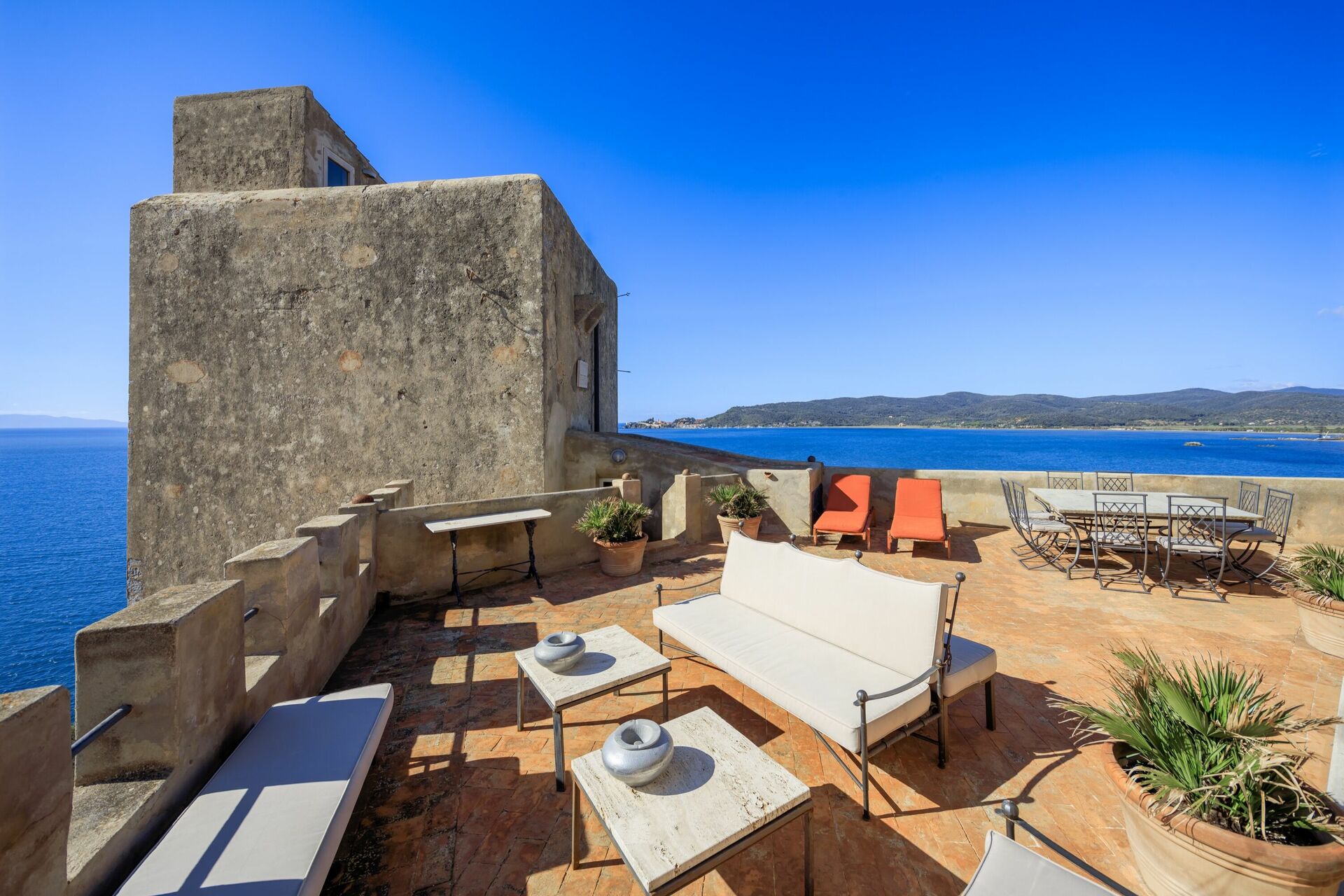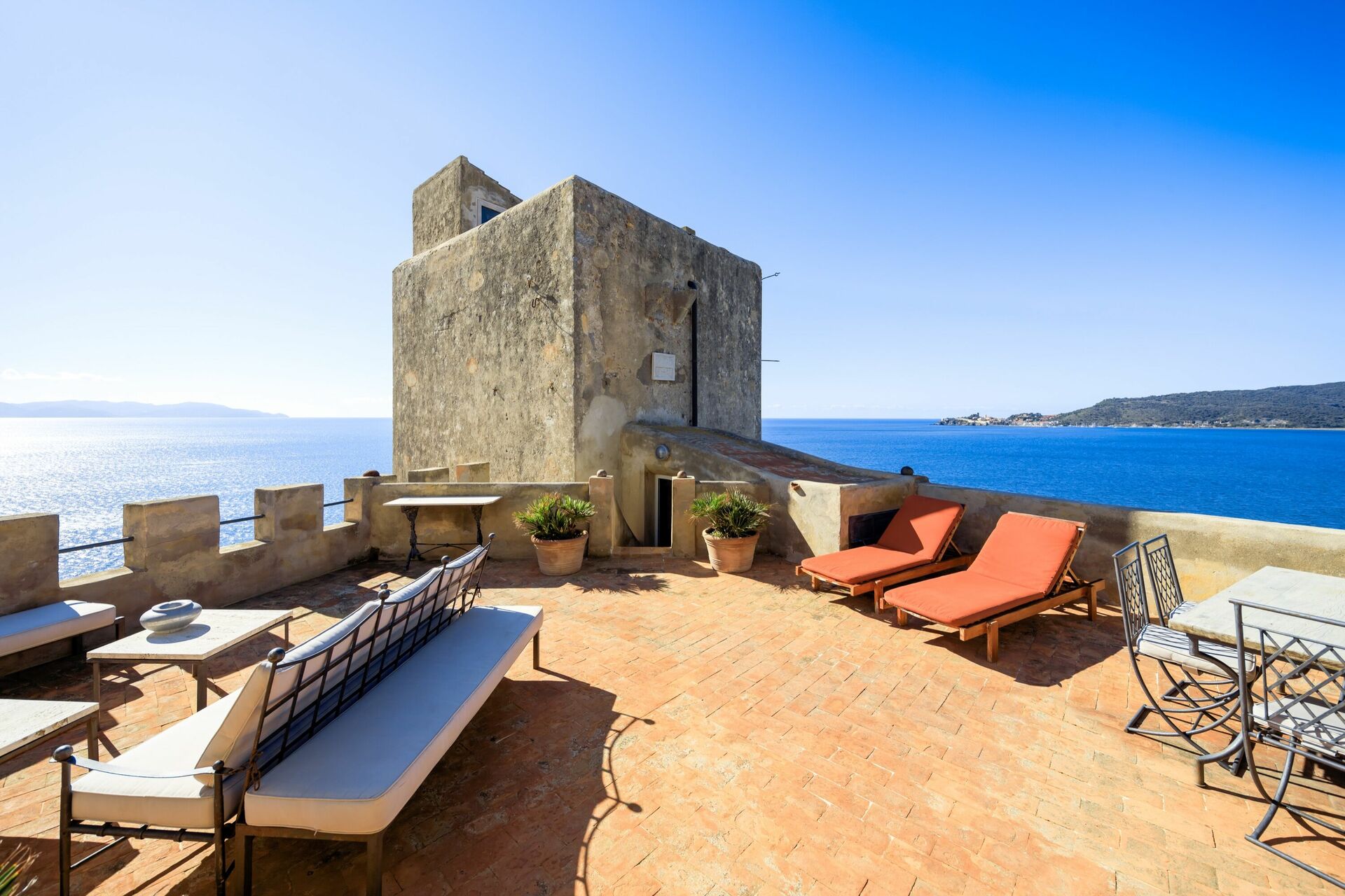 The tower is located a few meters away from the sea and has access to a few hundred meters of coast (cliff). The property is located in a position of absolute tranquility and enjoys a spectacular panoramic view from the Argentario to Talamone. The territory of Tuscany and specifically the area where Presidio is located offers all the natural, historical and typical food and wine characteristics that you can enjoy during your stay.
