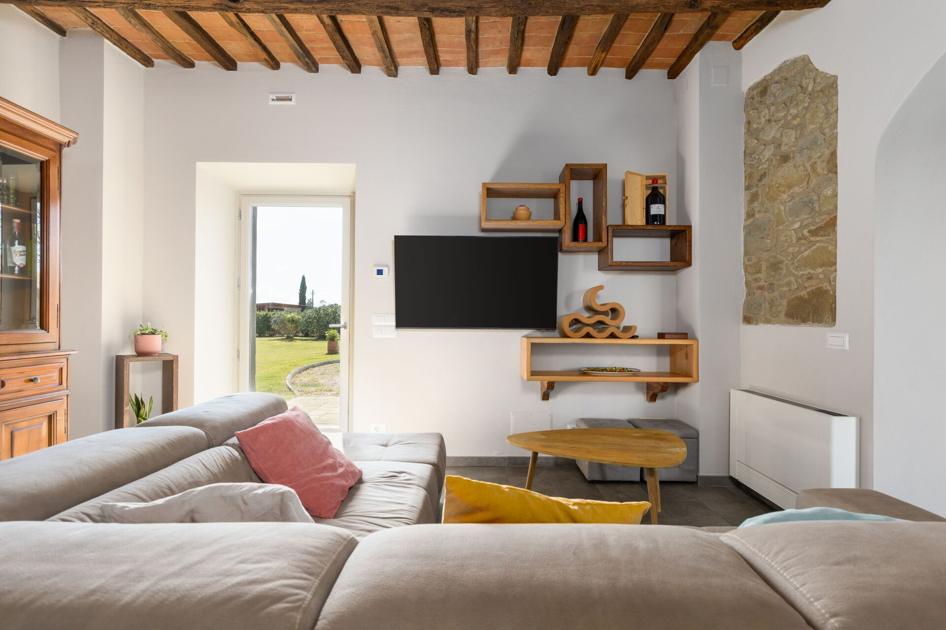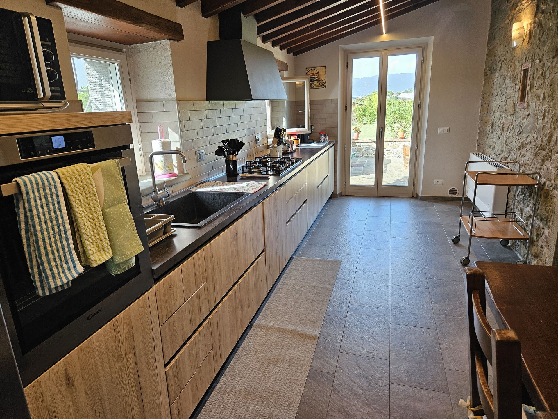 Newly renovated so everything is brand new. Clean rooms and great bathrooms. Excellent ktichen with everything you need to make great food. Nice outdoor area to have breakfast / lunch / dinner. Nice views from garden to Cortona that is only 10 minutes away.
