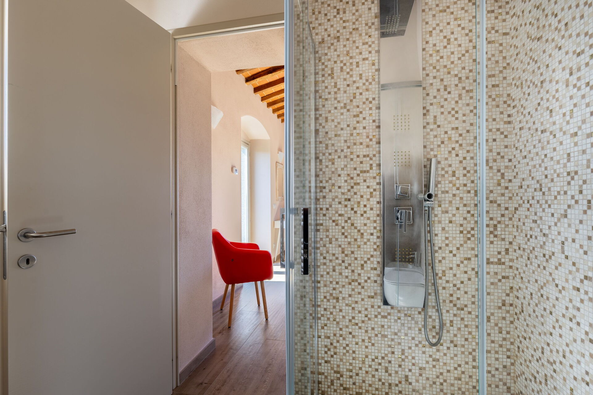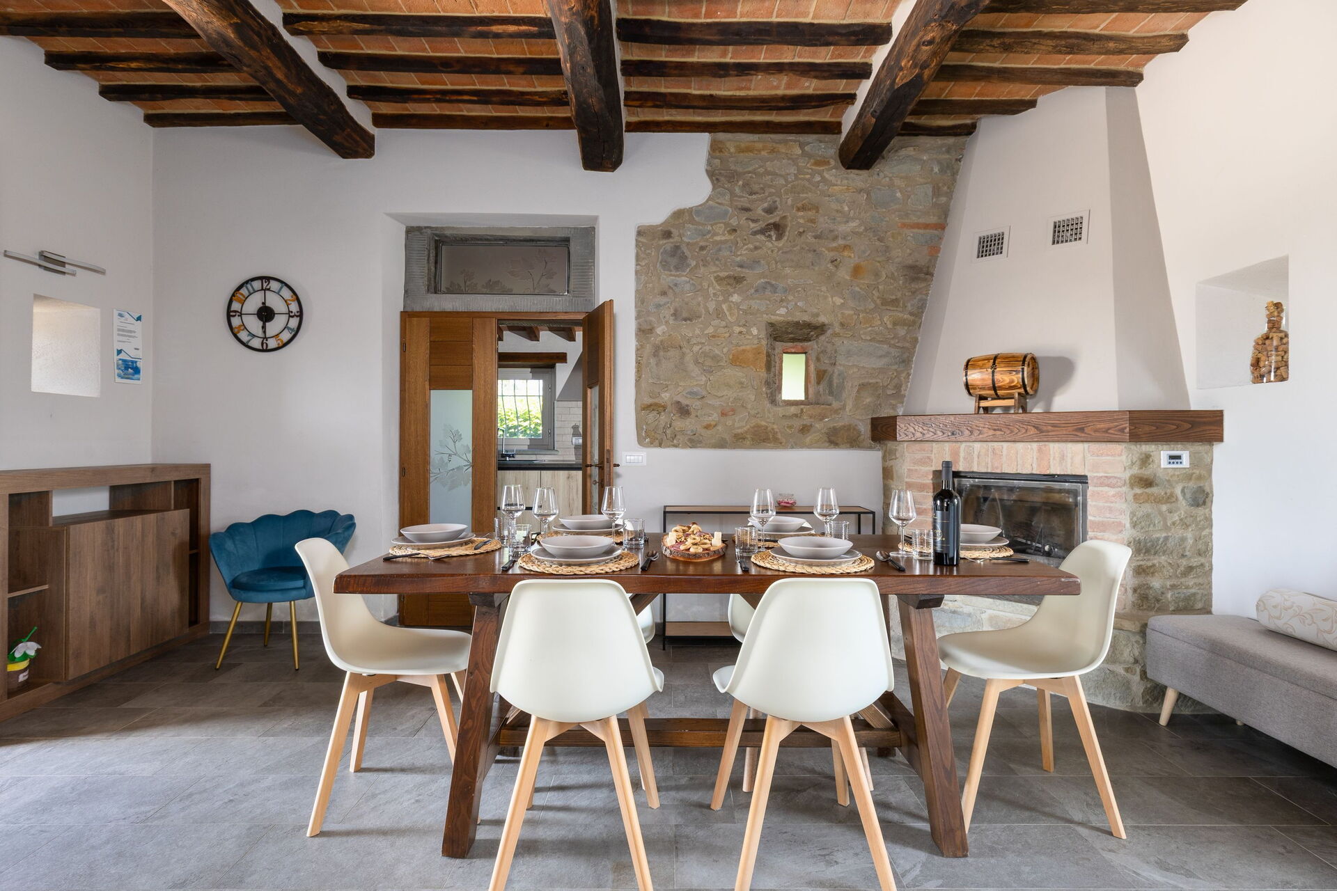 An amazing property, in a great location near to many wonderful Tucsan towns. The villa restrains its rustic exterior with well kept grounds and a good sized pool. It is very private and has an electric gated drive. The modern interior is finished to a very high standard, with masses of space, storage and equipment. The property representative was also excellent and looked after us very well from start to finish. You can tell the family are rightly very proud of the property and care for their guests. This was our third time in Tuscany and our favourite place to stay. Highly recommended!