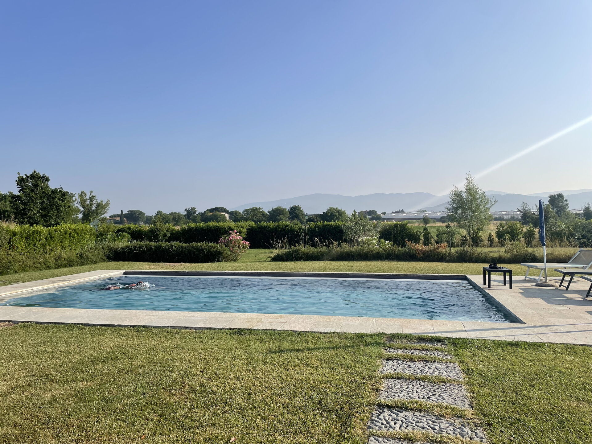 Wir waren Ostern mit unserer Familie hier (4 Kinder). Das Grundstück, Garten und Pool waren perfekt für uns! Das Haus war sehr gut ausgestattet, die Küche reichlich bestückt! Salz, Pfeffer, Öl, Seife … vieles war bereits vor Ort! Das Haus liegt ruhig, von Feldern umgeben. Die naheverlaufende Autostrada stört nicht wirklich!! Von der Villa aus kann man wunderbar tägliche Ausflüge in umliegende reizvolle Städte machen! Eine tolle Woche, Danke!!