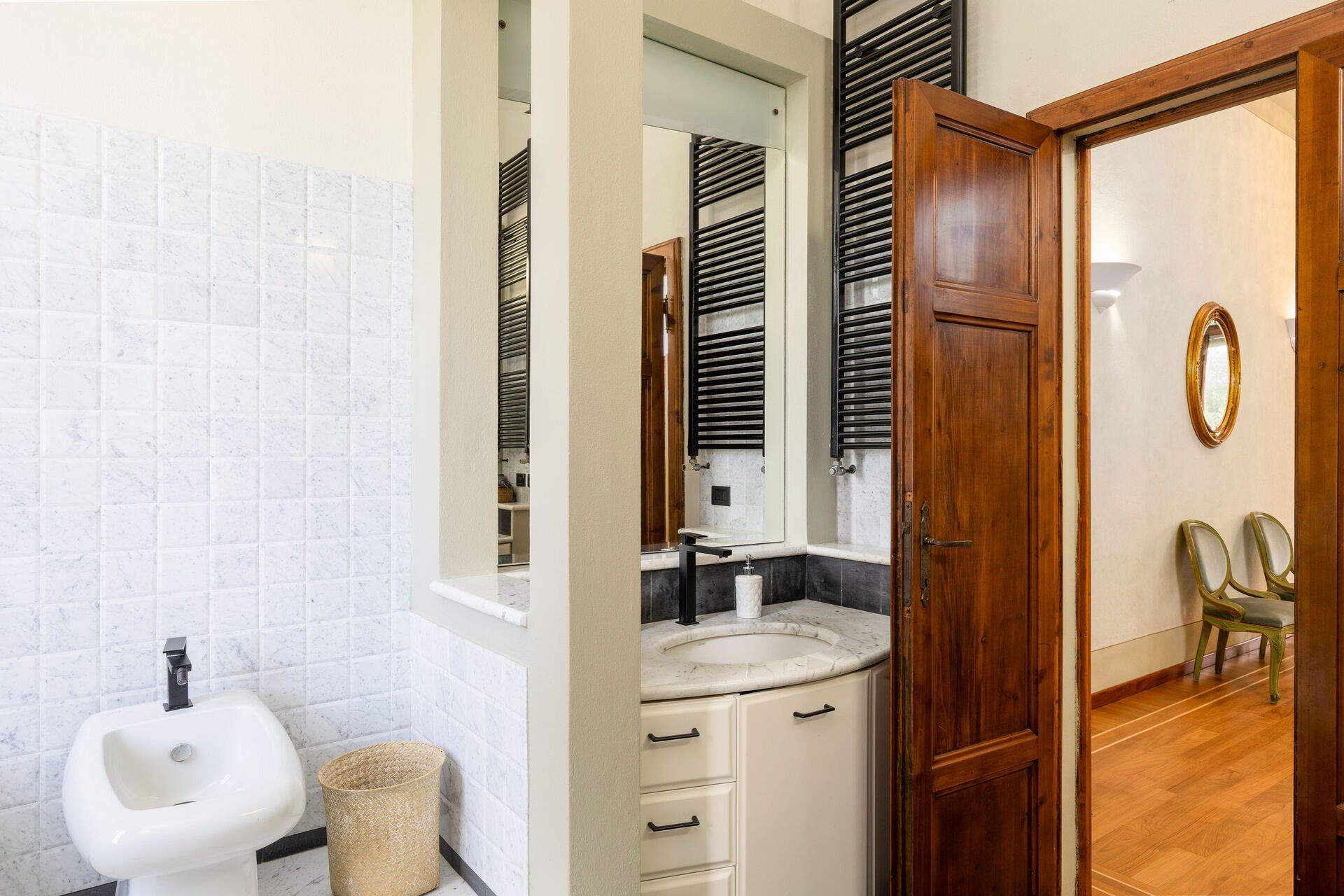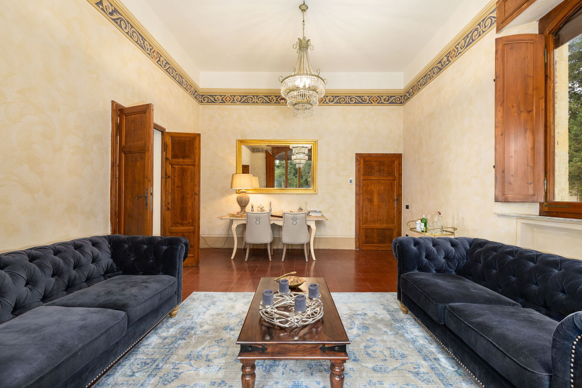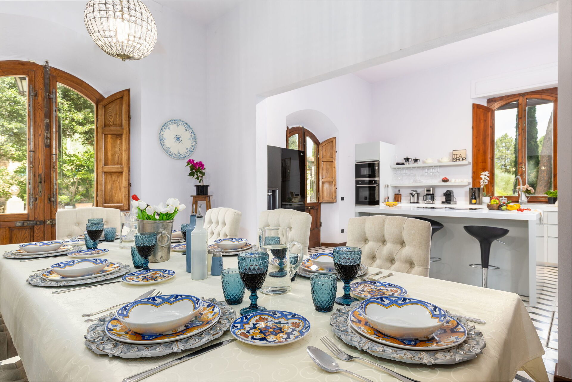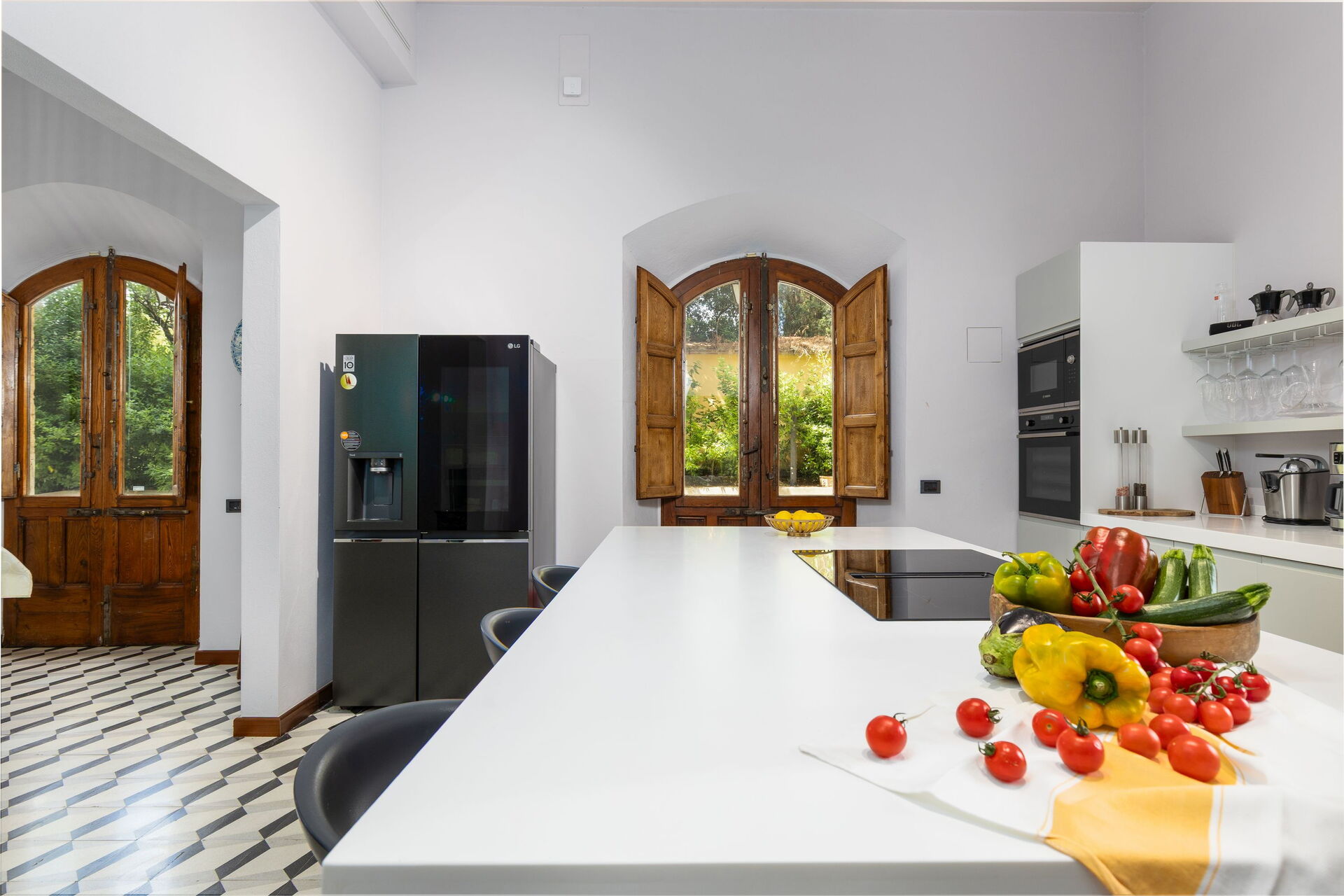 The villa has been skillfully renovated and transformed into a modern country house equipped with all amenities, while keeping the original architectural features in tact. The welcoming interiors are elegantly and tastefully furnished.