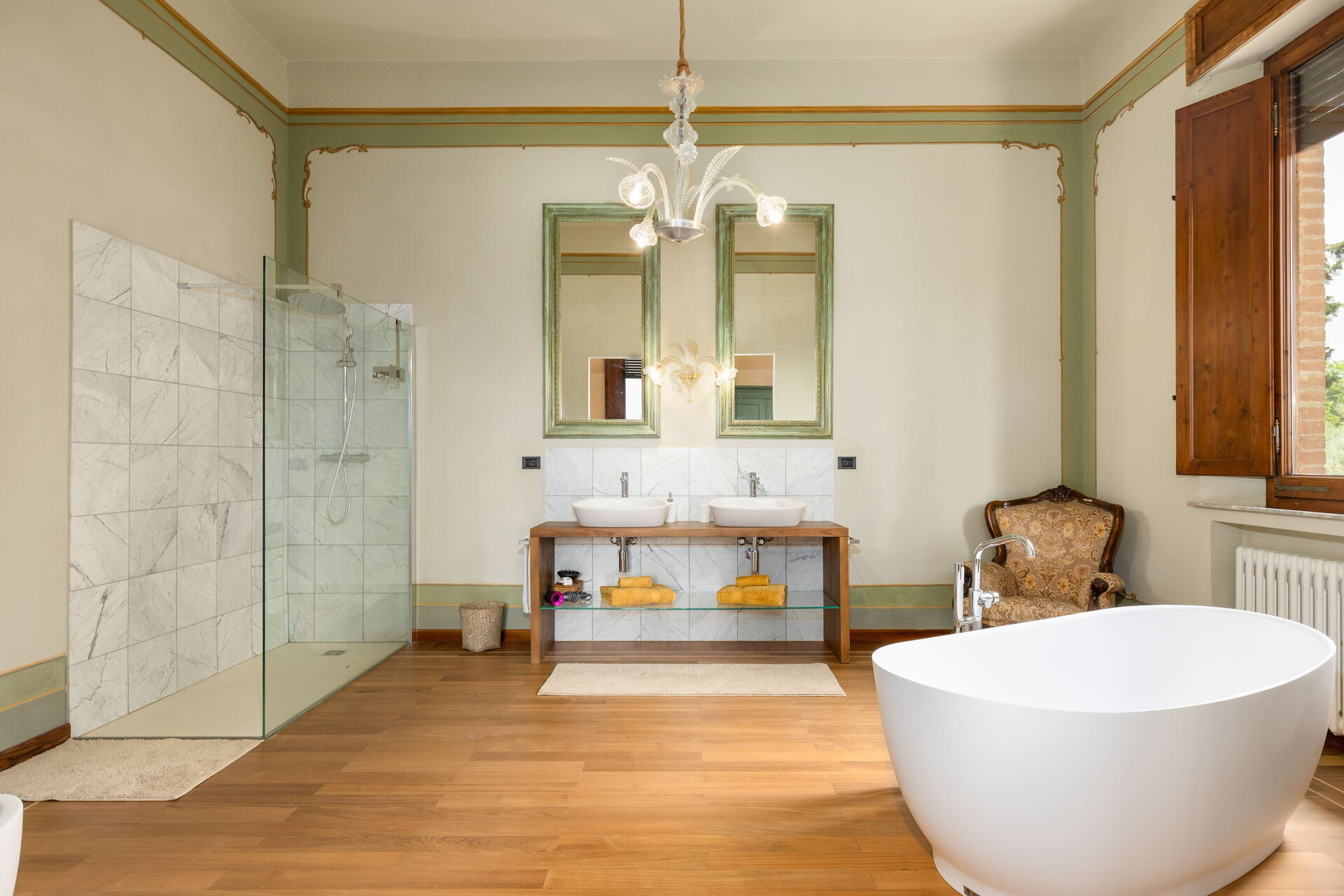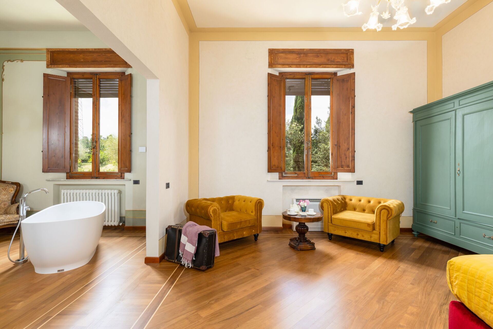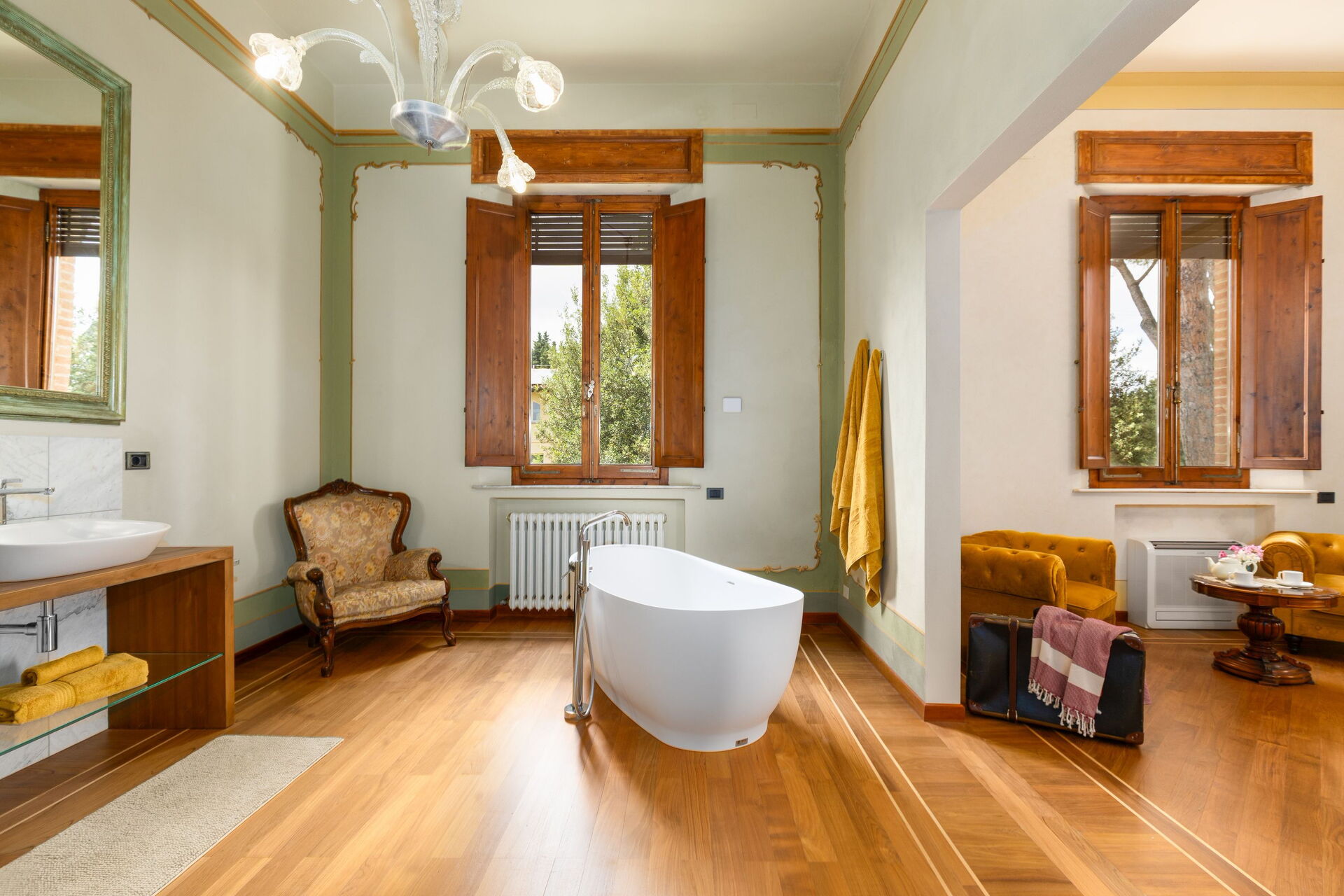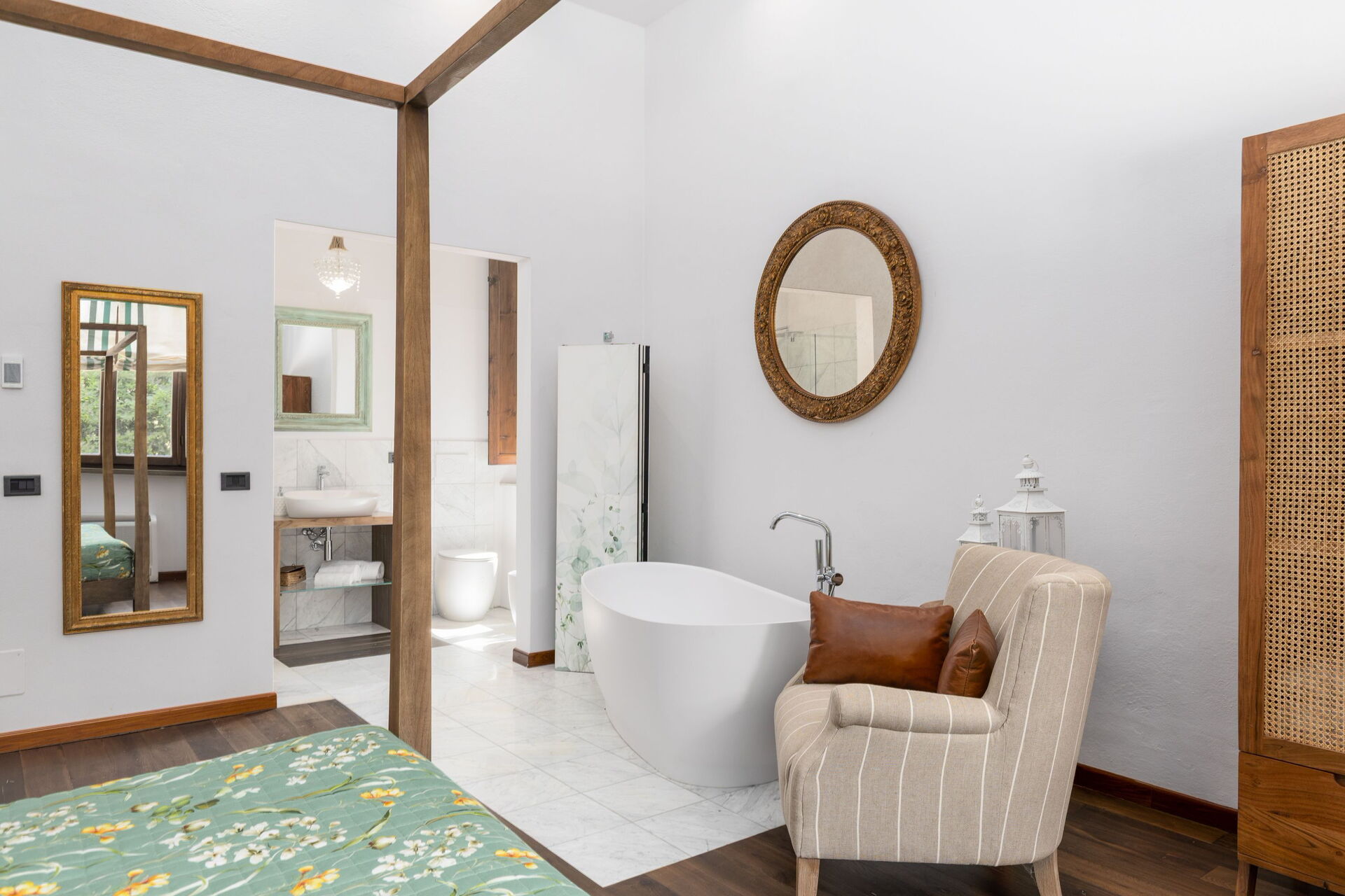 The villa has been skillfully renovated and transformed into a modern country house equipped with all amenities, while keeping the original architectural features in tact. The welcoming interiors are elegantly and tastefully furnished.