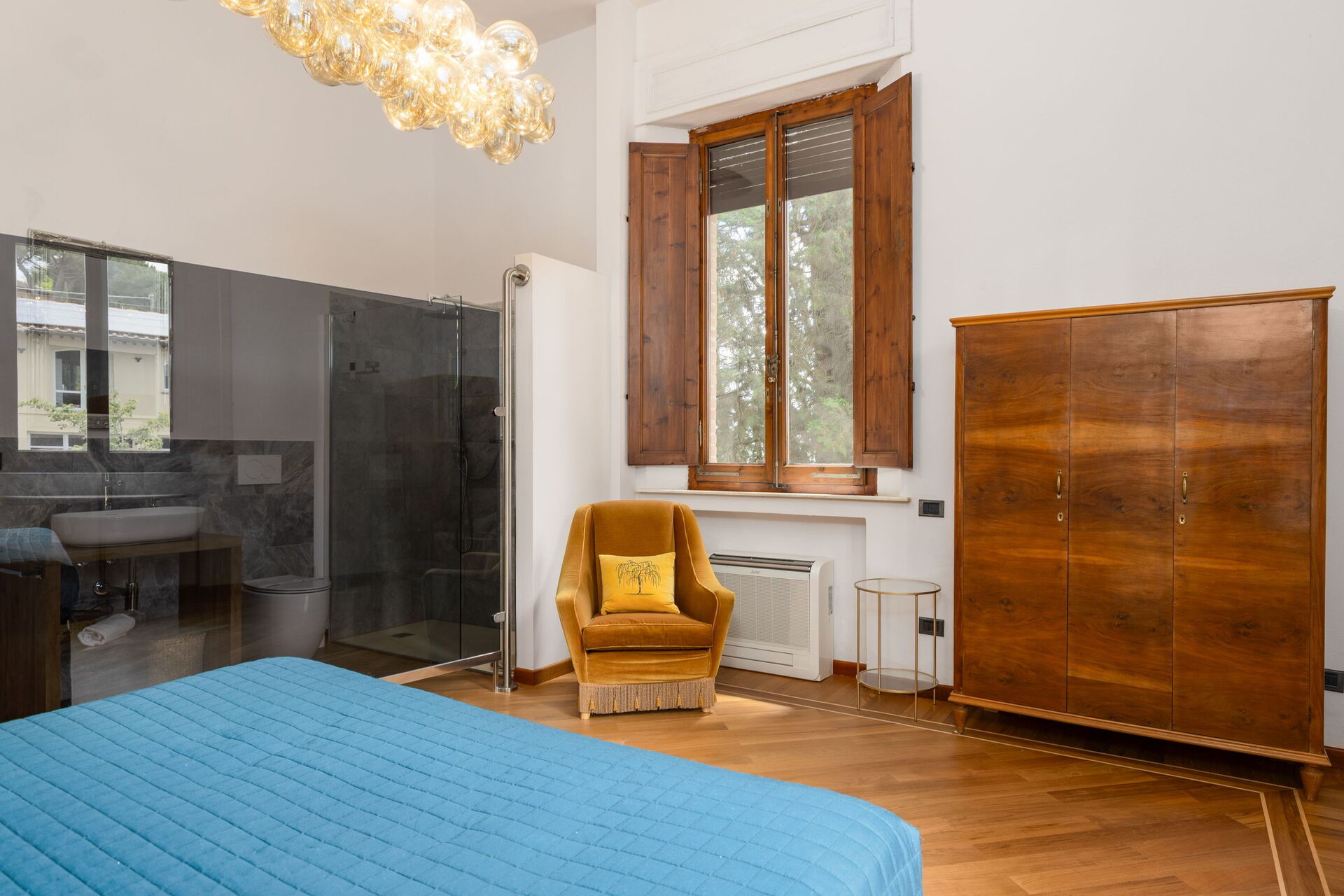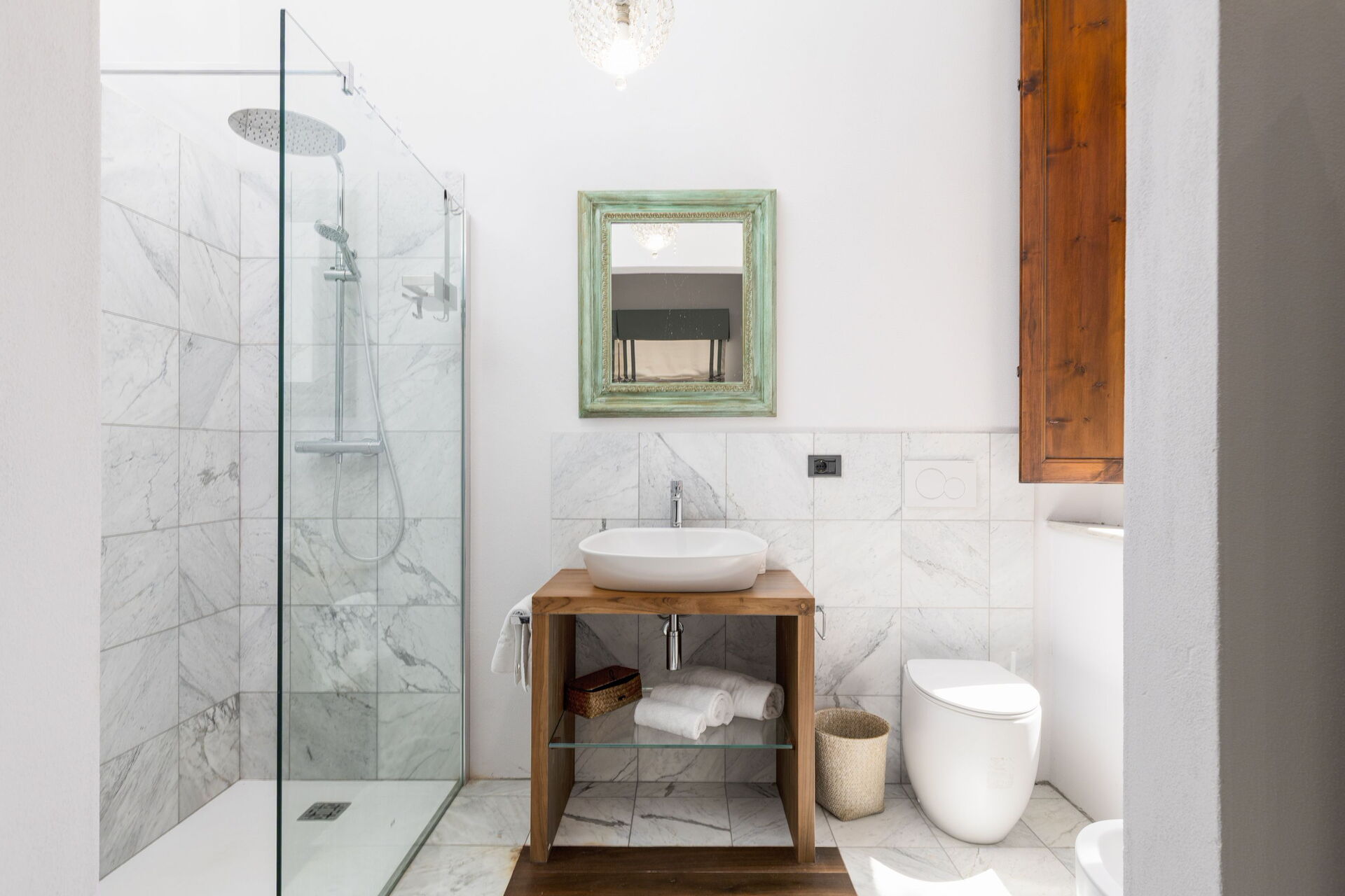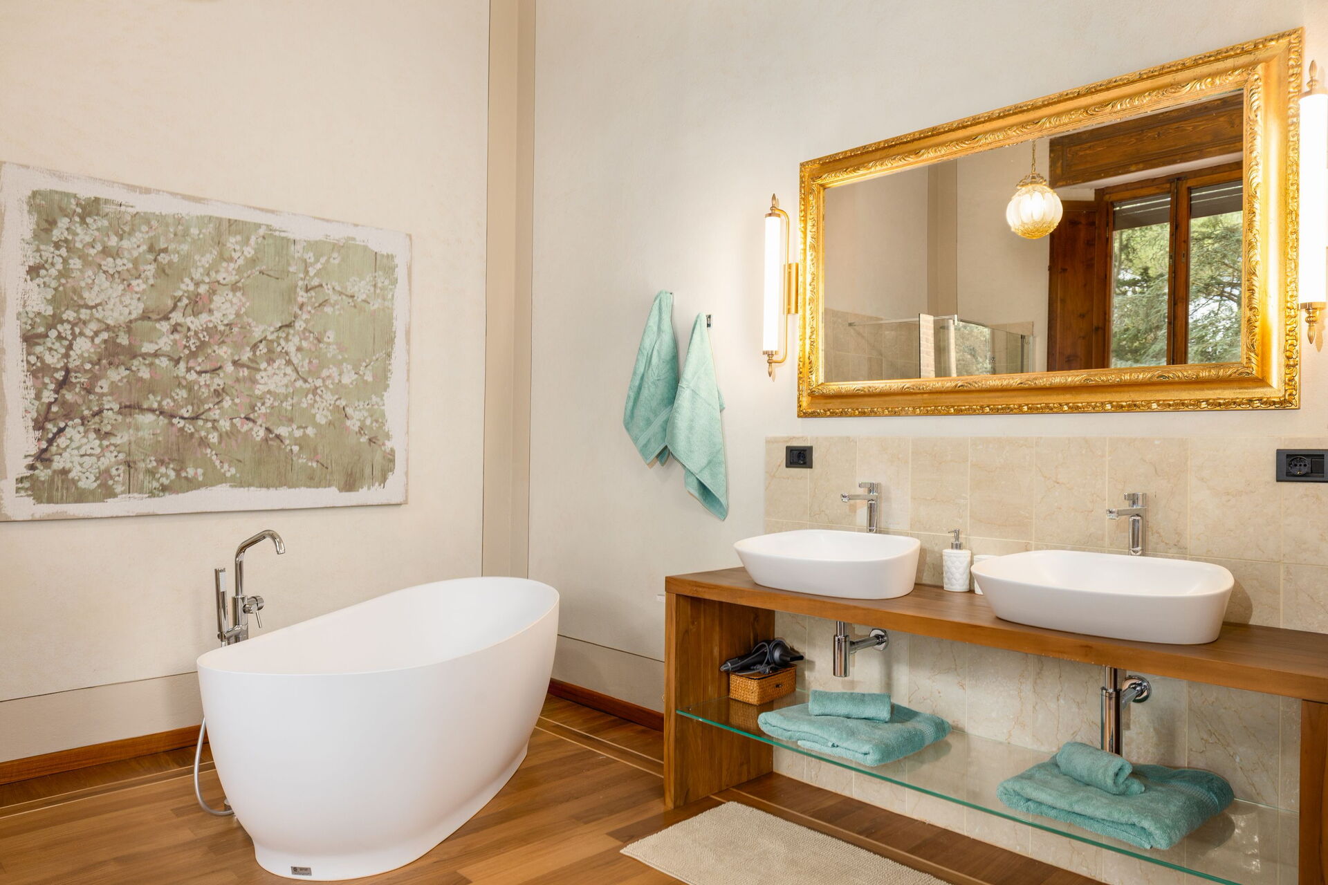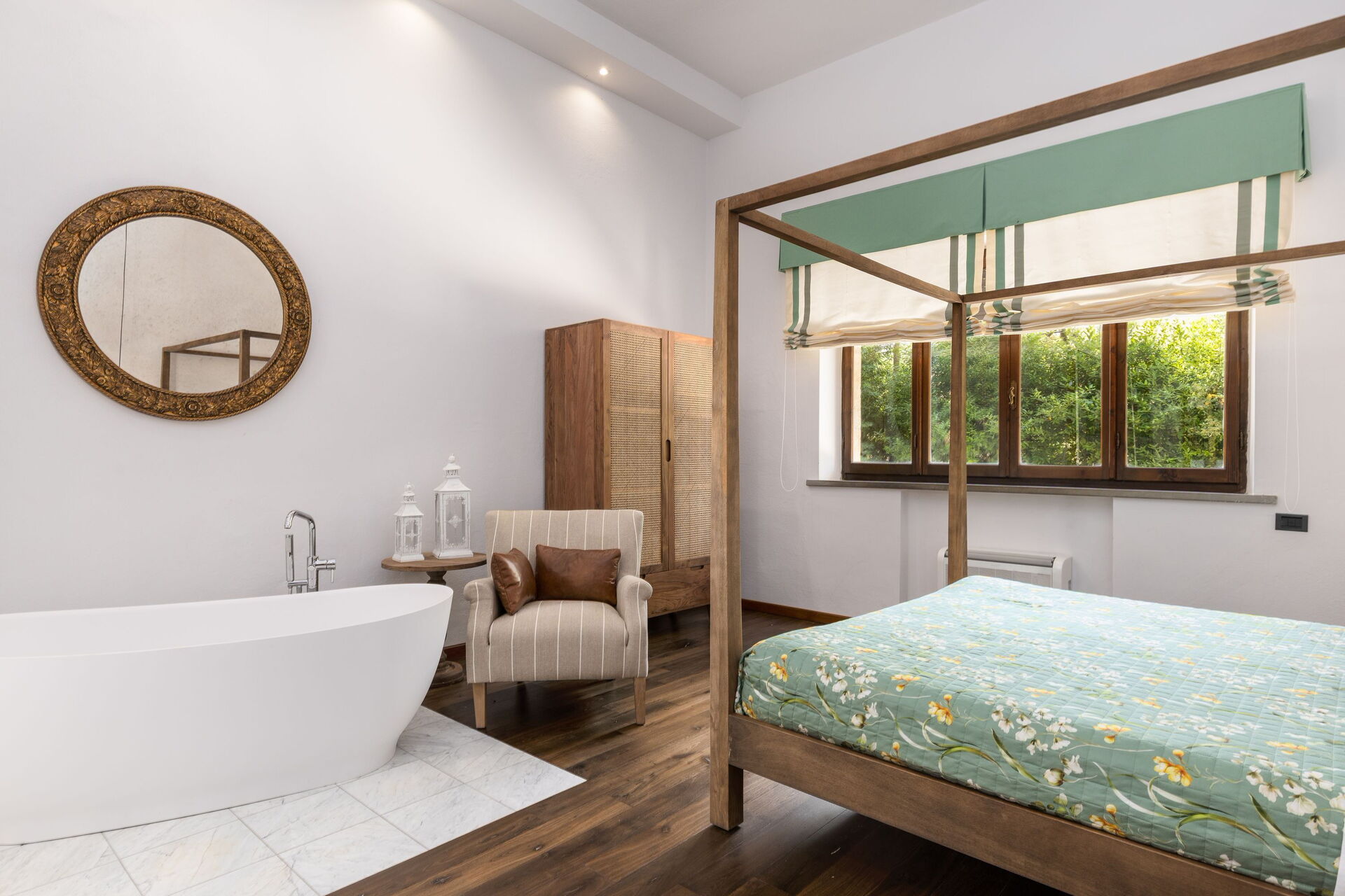 The villa has been skillfully renovated and transformed into a modern country house equipped with all amenities, while keeping the original architectural features in tact. The welcoming interiors are elegantly and tastefully furnished.