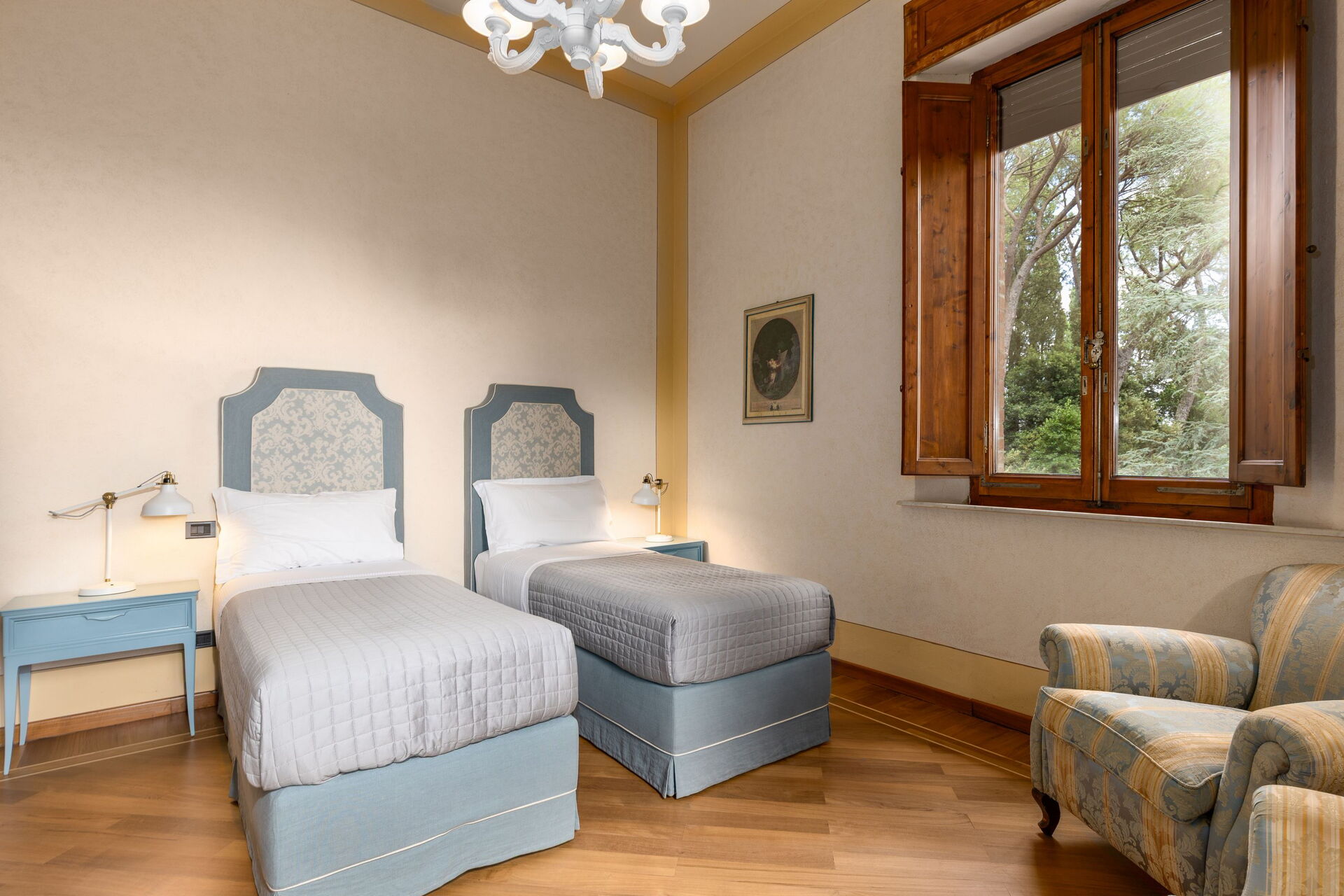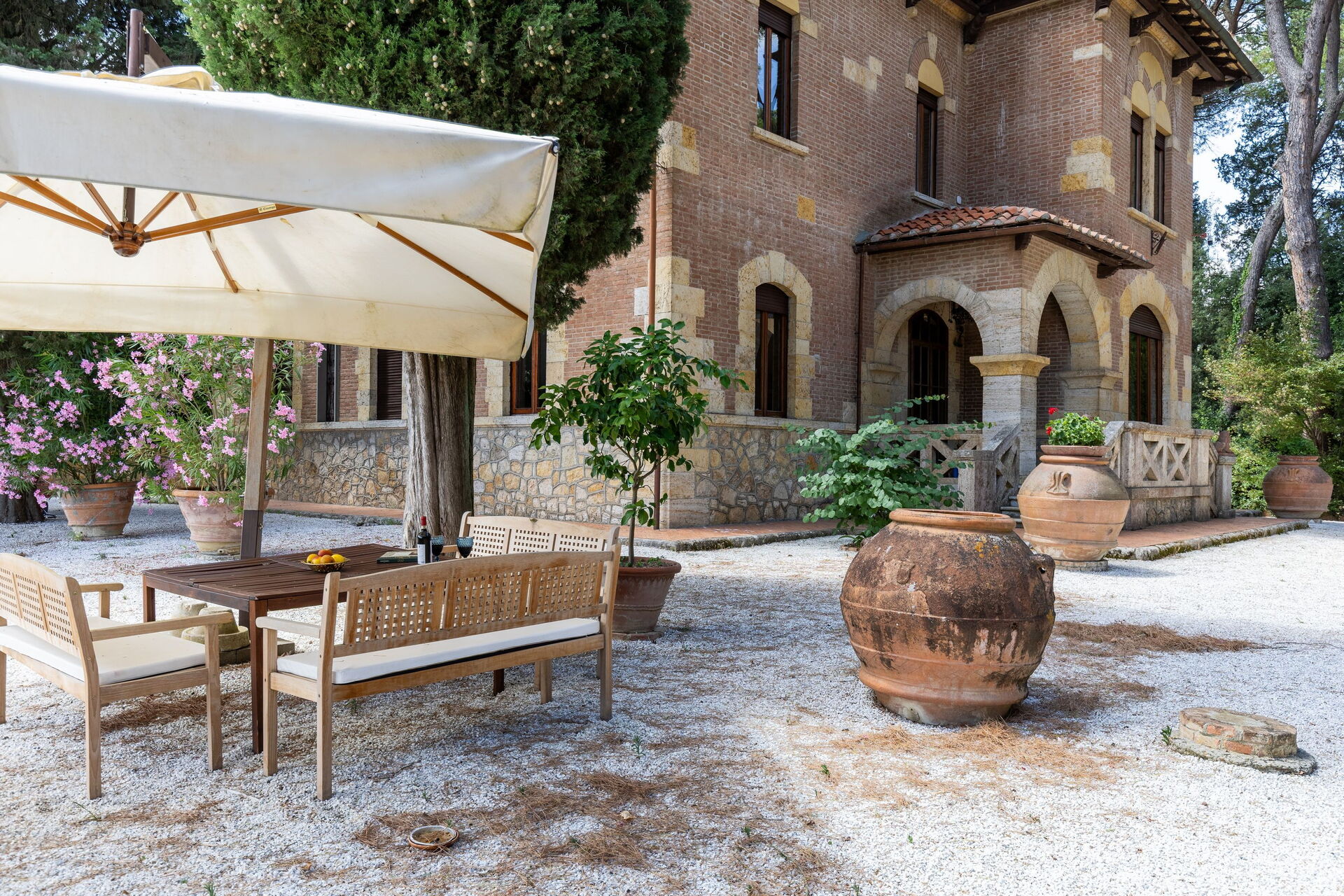 Villa Silvia is nestled among trees and plants in a well-tended garden. Here you can enjoy panoramic views of the surrounding hills and the town of Peccioli, which was elected “The Town of Italian towns” in 2024.