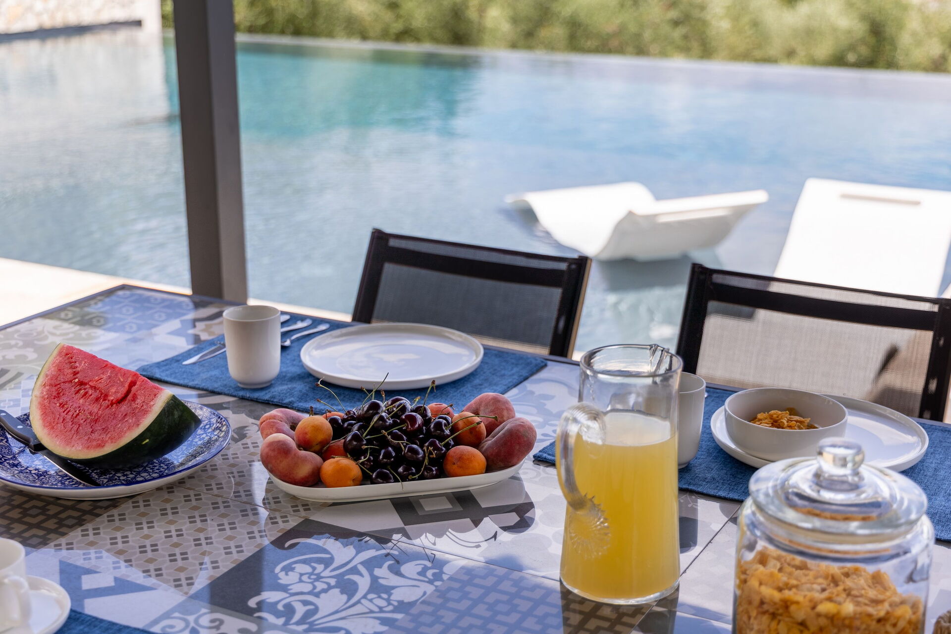 • private, saltwater infinity pool with whirlpool zone, chromotherapy waterfall and panoramic views (15 x 10 meters; minimum depth: 0,30 m; maximum depth 1,40 m)