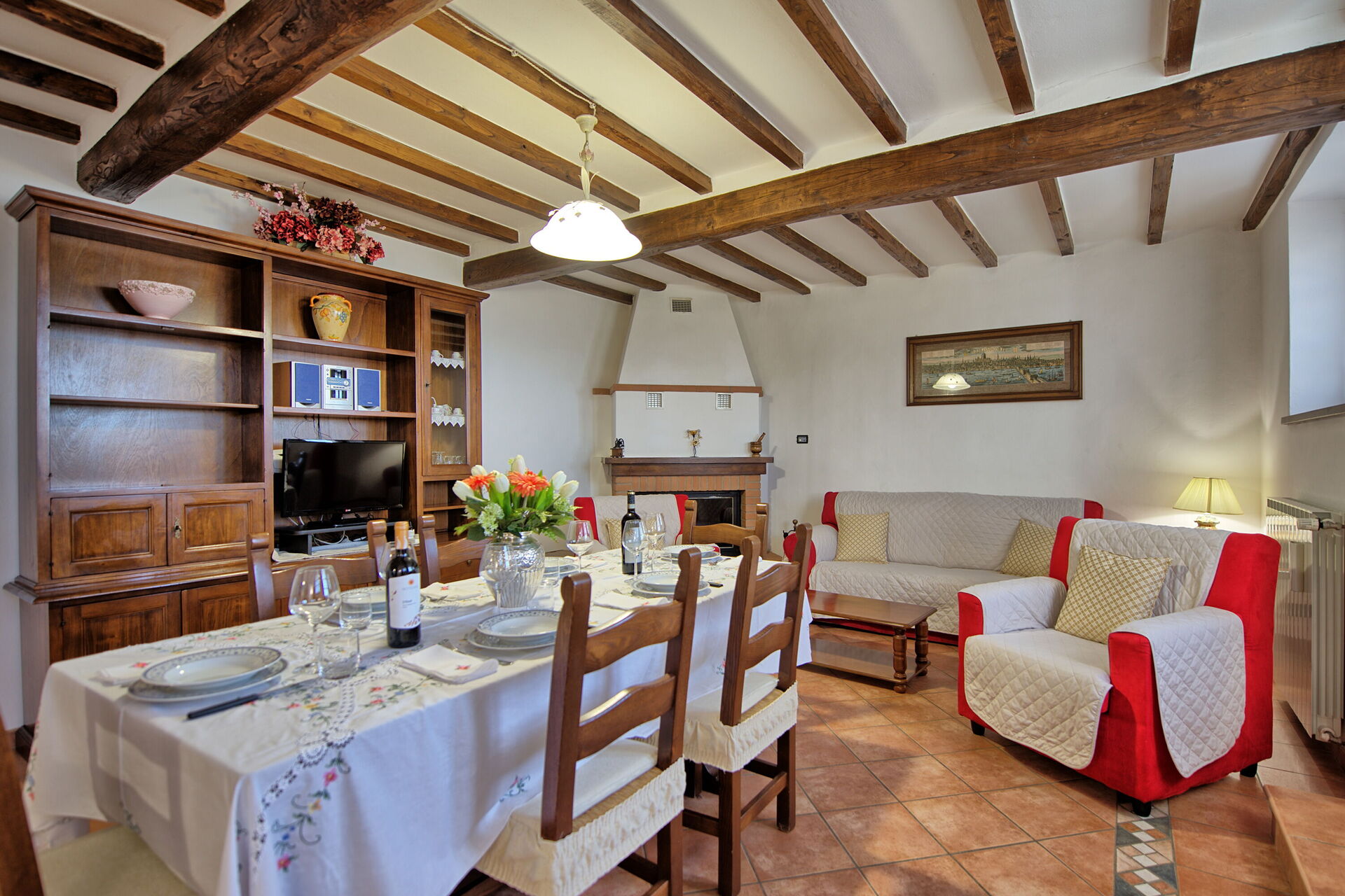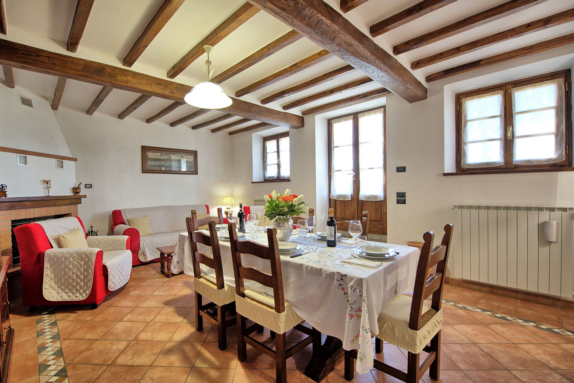 The villa offers comfortable interiors furnished in a rustic style and provide a private furnished outdoor area. A secondary road connecting the small villages on the hills surrounding Cortona passes nearby.