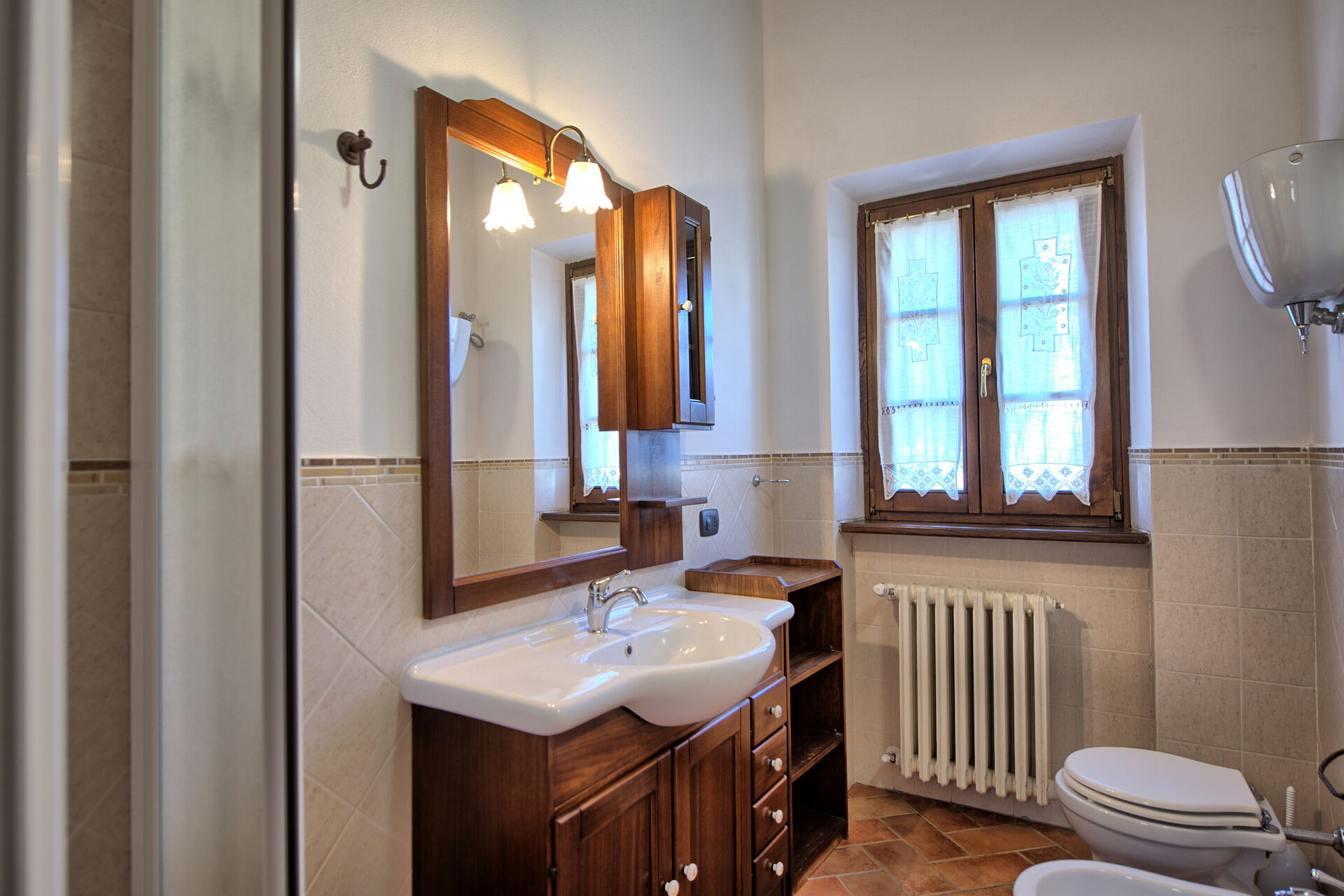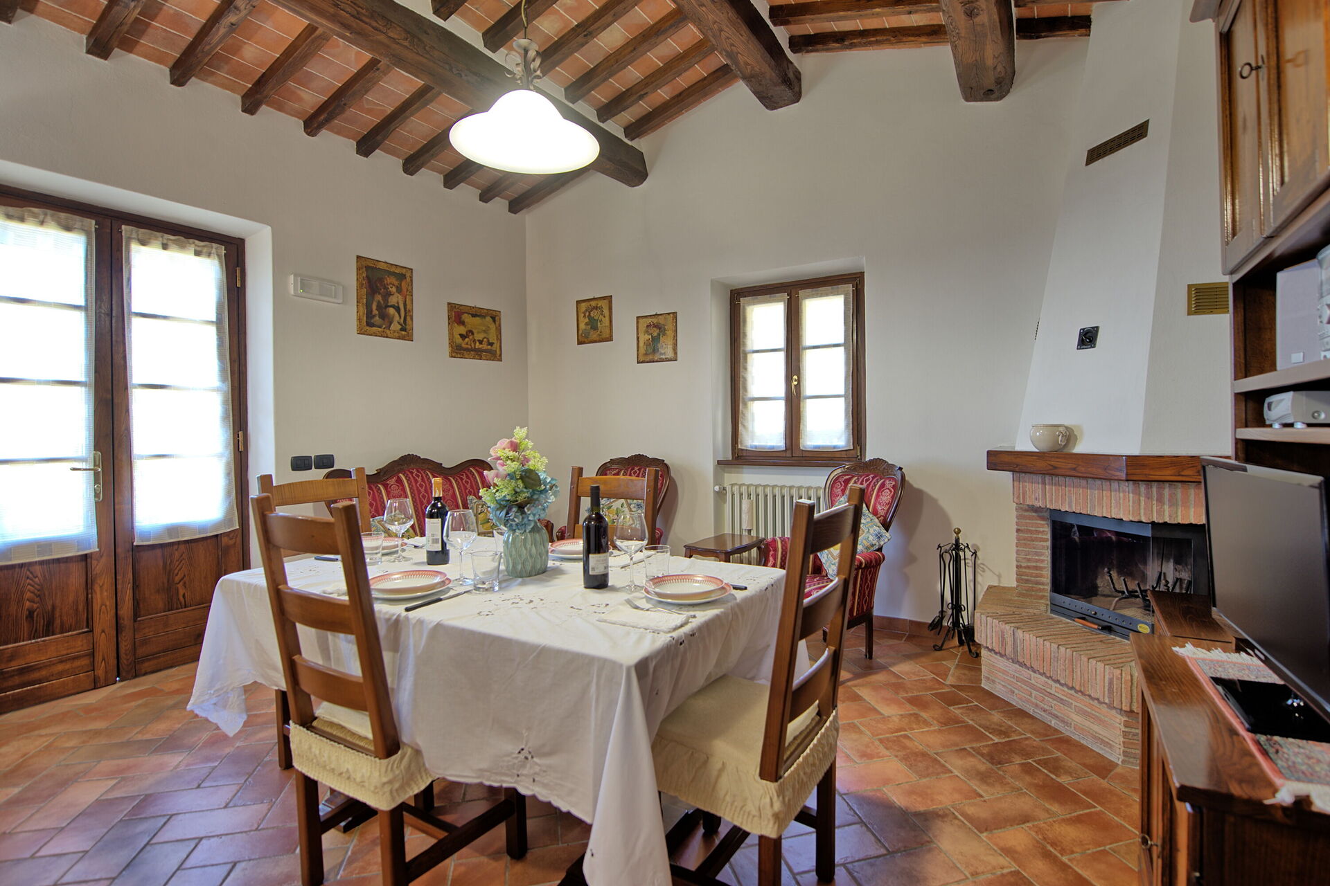 Distances: Portole with a food shops and a restaurant 500 m away, Cortona with all kinds of shops 9 km, Lake Trasimeno approx. 20 km away, Città di Castello 30 km away. Arezzo 35 km away.