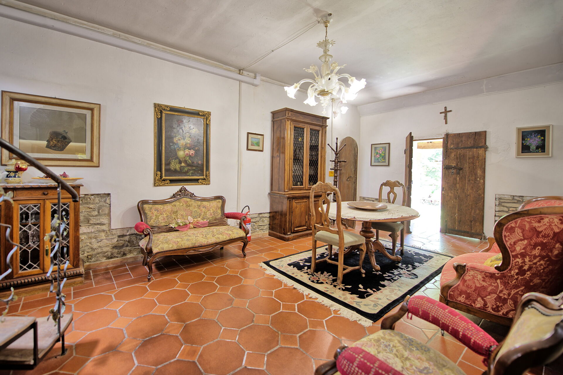 Ground floor: hall, dining area with adjoining kitchen (oven, dishwasher, washing machine, freezer, toaster, espresso coffee maker, american coffee machine), small bathroom with shower, large living room (TV, hi-fi and piano) with fireplace and a further dining area.